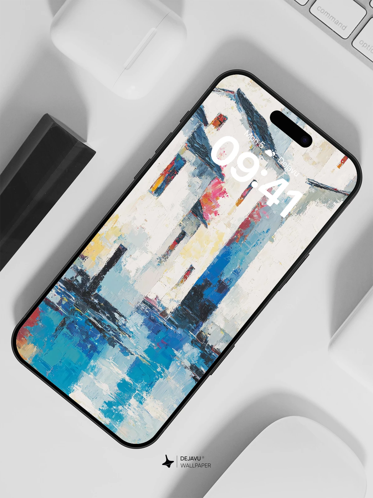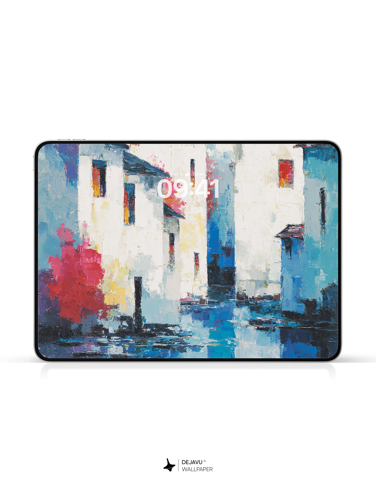 This captivating artwork evokes the quiet charm of a Mediterranean waterside town, rendered in expressive, impressionistic brushwork reminiscent of modernist landscape painting. The white-washed buildings glow against a cool blue sky, mirrored in shimmering water that reflects bursts of red and orange foliage—creating a dreamy, poetic atmosphere. Ideal as an 8K wallpaper for iPhone, Android, or tablets, it brings serene elegance to your device’s screen, transforming everyday moments into visual poetry.