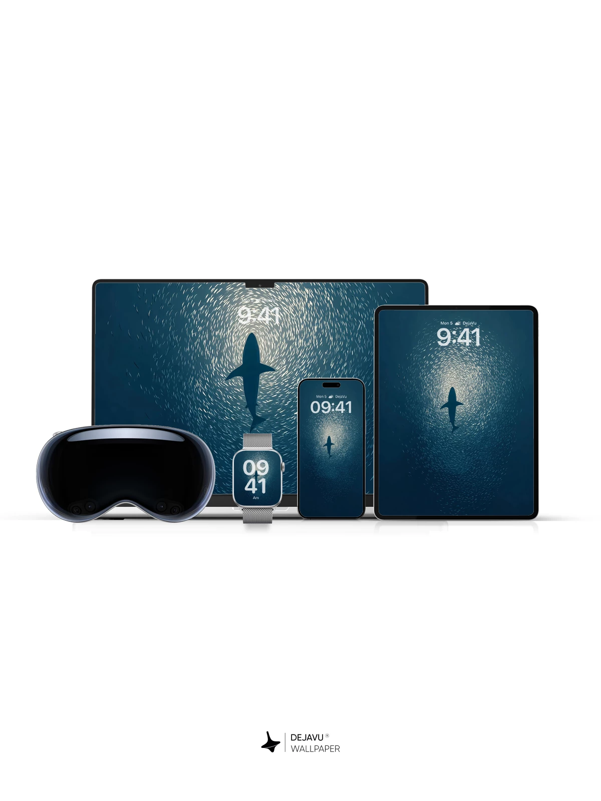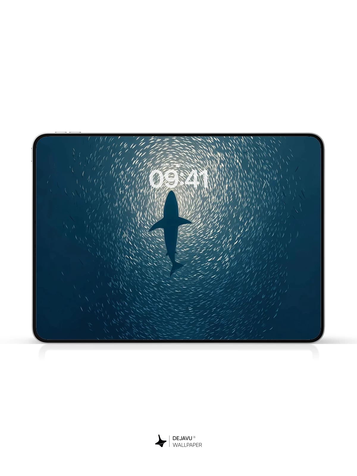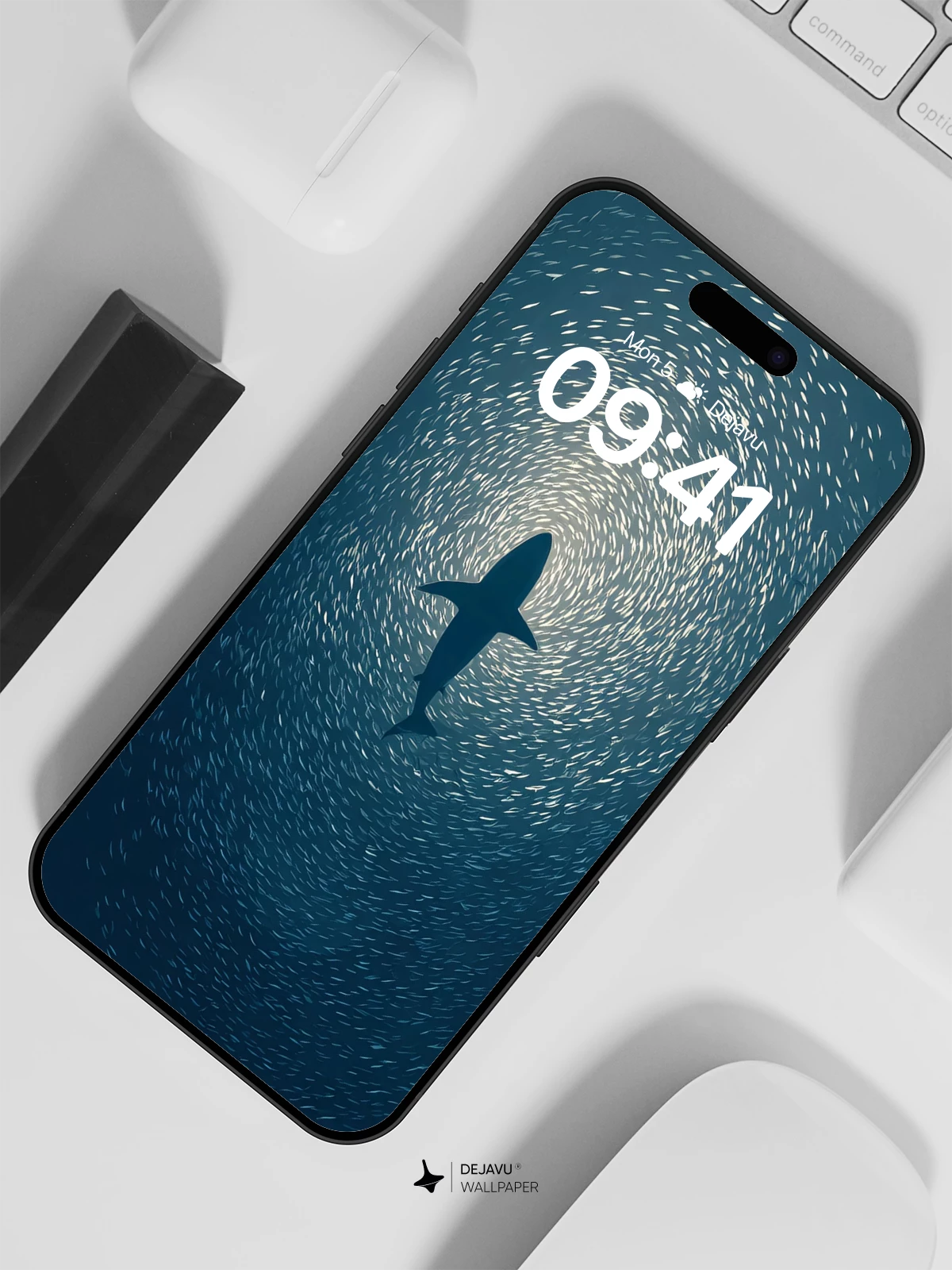 This 8K wallpaper features a shark cutting through a mesmerizing bait ball formation in the ocean. The deep blue tones and dynamic composition evoke the thrill of underwater exploration. Ideal for iPhone, Android, and tablets, it brings the wild elegance of the sea to your device.