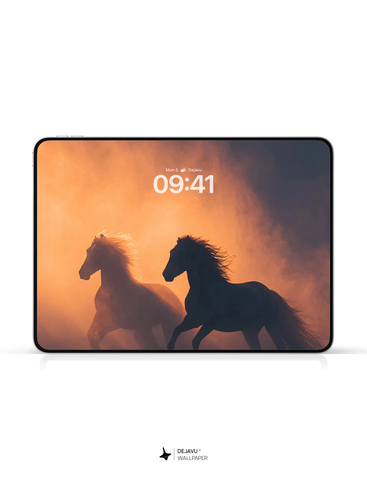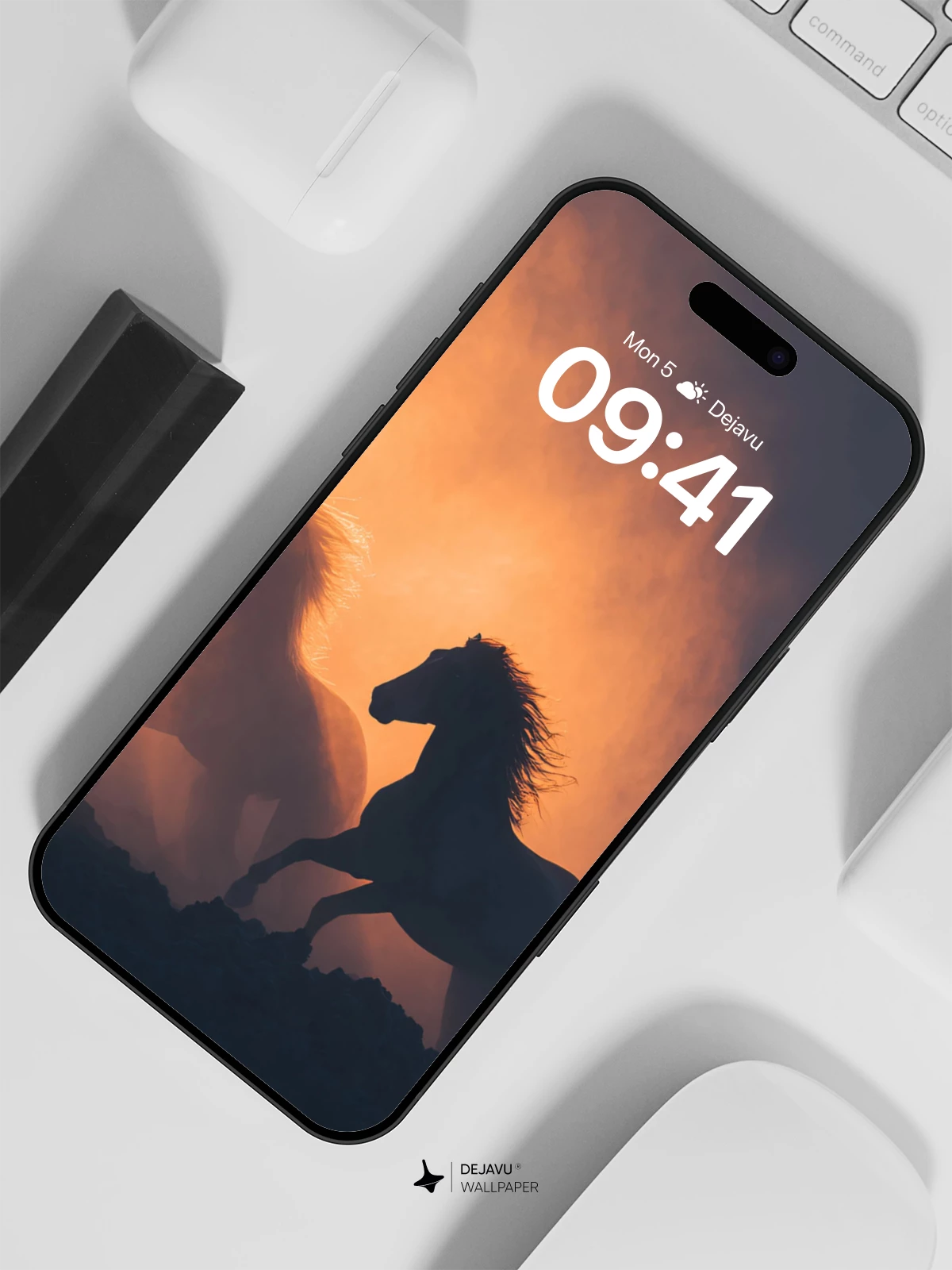 Captured in breathtaking detail, this 8K wallpaper features two wild horses running across a rugged terrain, silhouetted against a radiant sunset that ignites the dust into a golden haze. The interplay of light, shadow, and motion evokes freedom, power, and the untamed spirit of nature. Perfect for iPhone, Android, and tablet screens, this image transforms your device with its cinematic depth and emotional resonance, making it ideal for those who appreciate raw beauty and dynamic visuals.