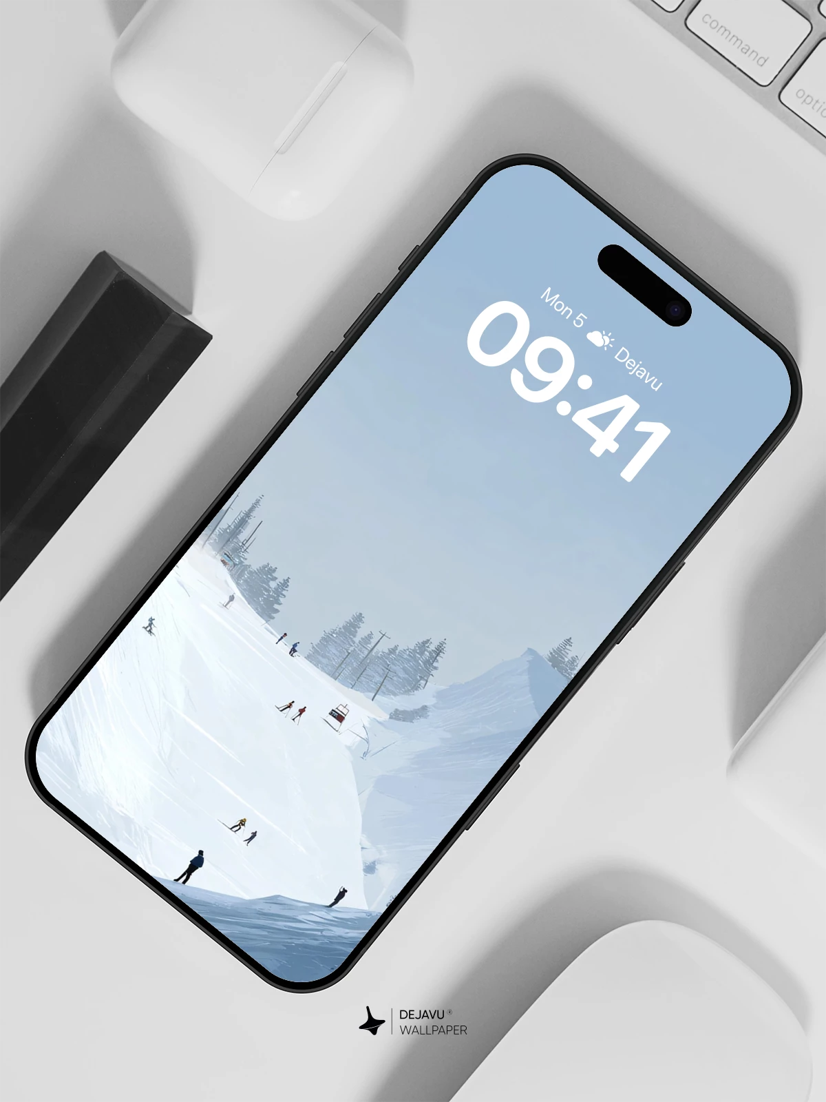 This stunning 8K wallpaper captures the quiet majesty of a snowy mountain slope alive with skiers carving through untouched powder. Framed by evergreen trees dusted in frost and bathed in soft daylight, the scene evokes a sense of peaceful adventure and timeless beauty. Ideal for iPhone, Android, or tablet devices, this high-resolution image brings the crisp serenity of a winter alpine landscape to your screen, transforming your device into a window to nature’s stillness.