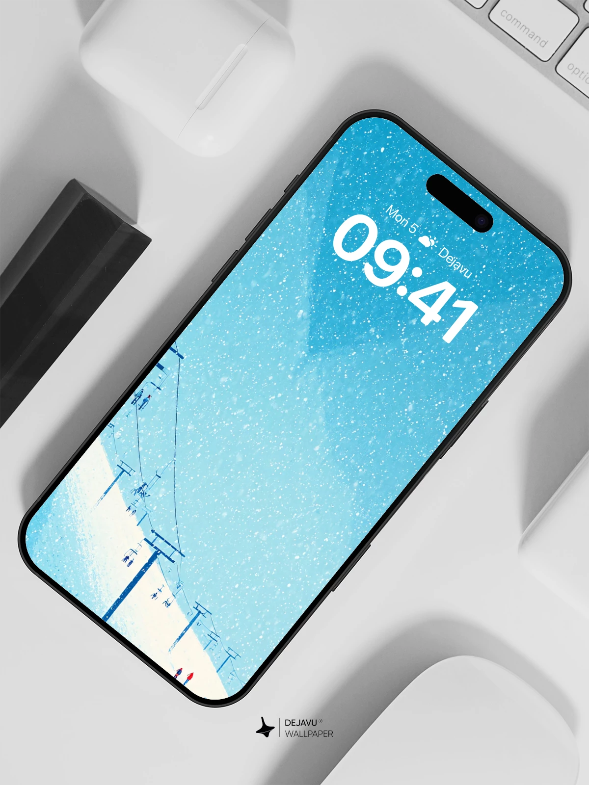 This stunning 8K wallpaper captures the tranquil beauty of a snowy mountain landscape, where skiers glide down gentle slopes beneath a soft, snow-filled sky. Inspired by minimalist winter art, the design blends clean lines and cool blues to evoke peace and solitude. Ideal for iPhone, Android, and tablet screens, it brings a touch of alpine serenity to your device’s home screen.
