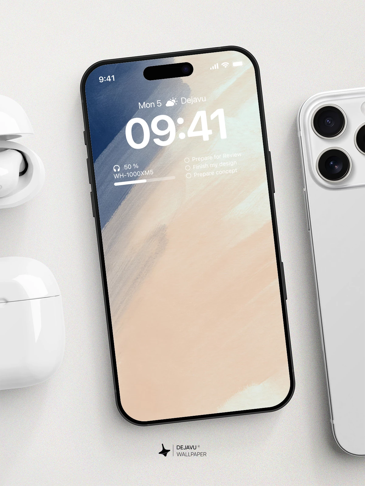 This abstract wallpaper brings a sense of calm with its fluid brushstrokes blending navy blue and warm peach hues. The gentle texture and minimalist design suit modern devices like iPhone, Android, and tablets, offering a serene backdrop that feels both artistic and functional.