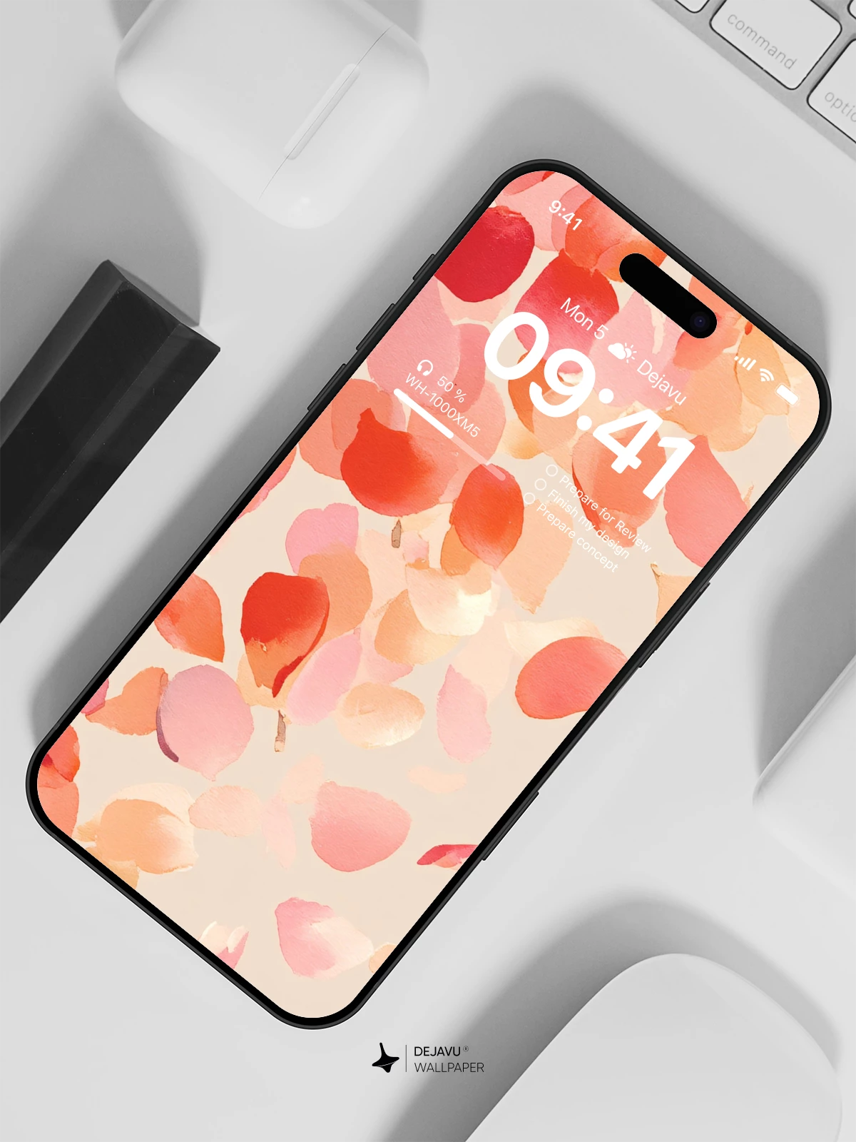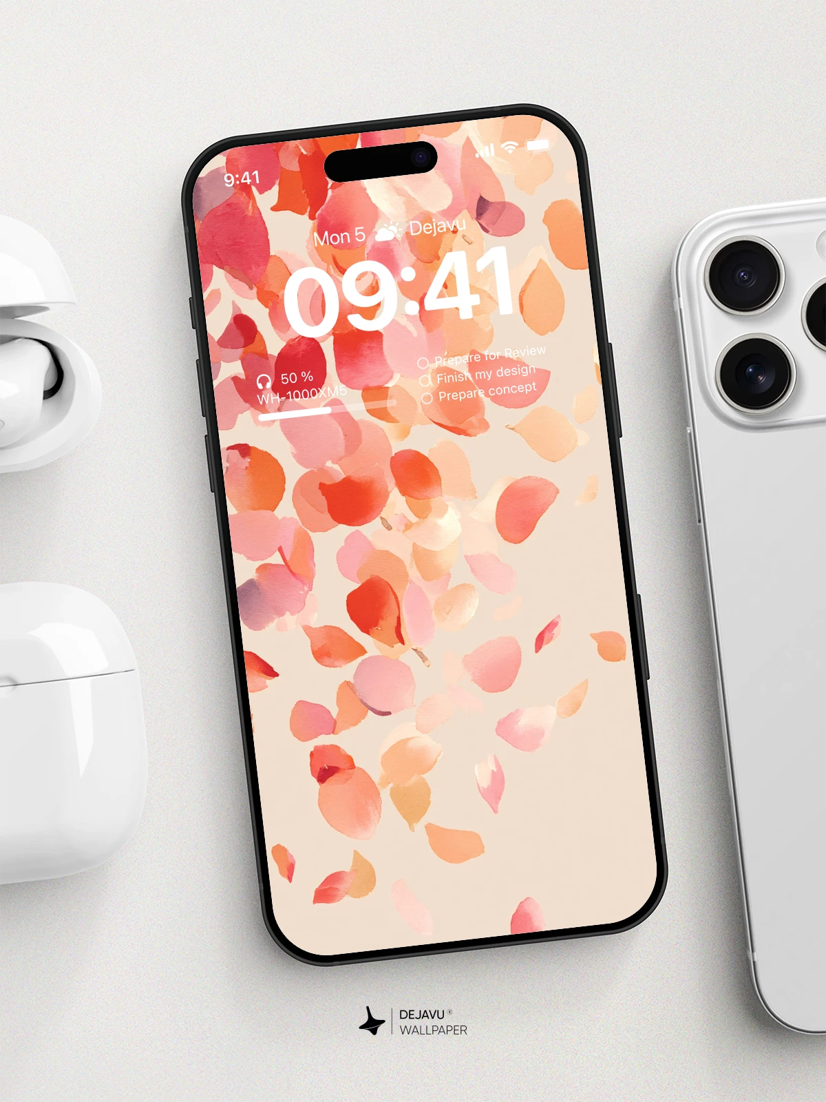 This 8K wallpaper features a delicate array of floating petals in soft reds, pinks, and oranges against a muted beige background. The painterly texture and gentle composition create a calming, romantic mood. Ideal for iPhone, Android, and tablet screens looking for a clean, artistic aesthetic.