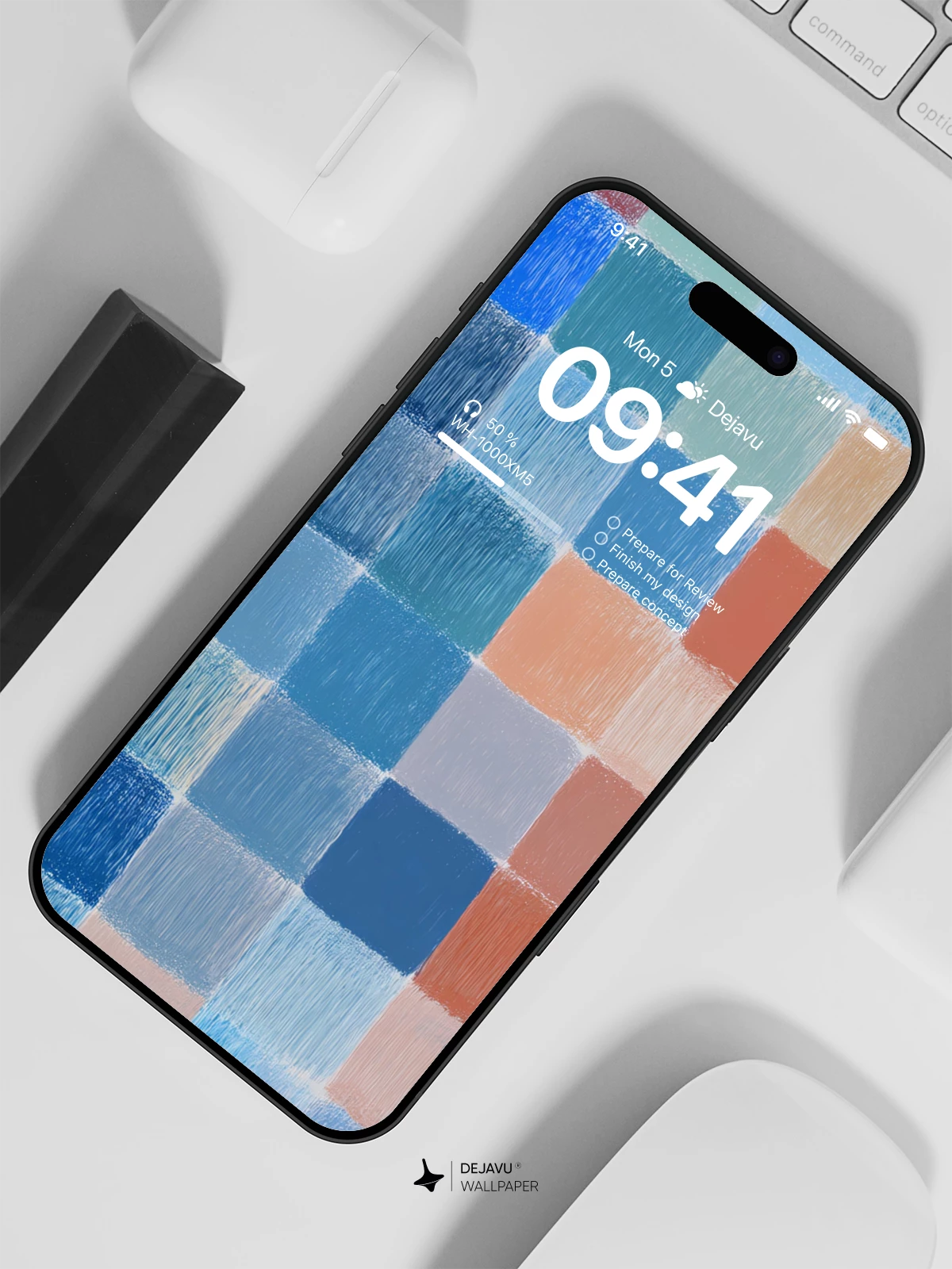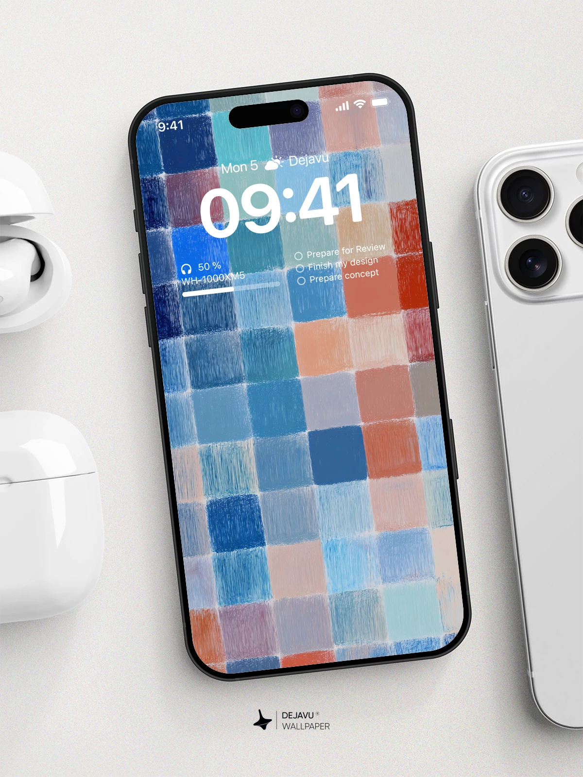 This abstract wallpaper features a soft, painterly grid in cool and warm tones. The gentle brushstroke texture brings a handcrafted feel, balancing structure with organic warmth. Ideal for iPhone, Android, and tablets seeking a refined, understated aesthetic.