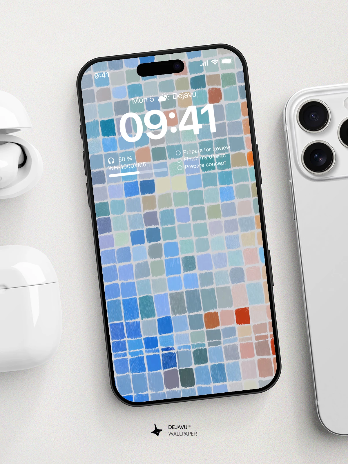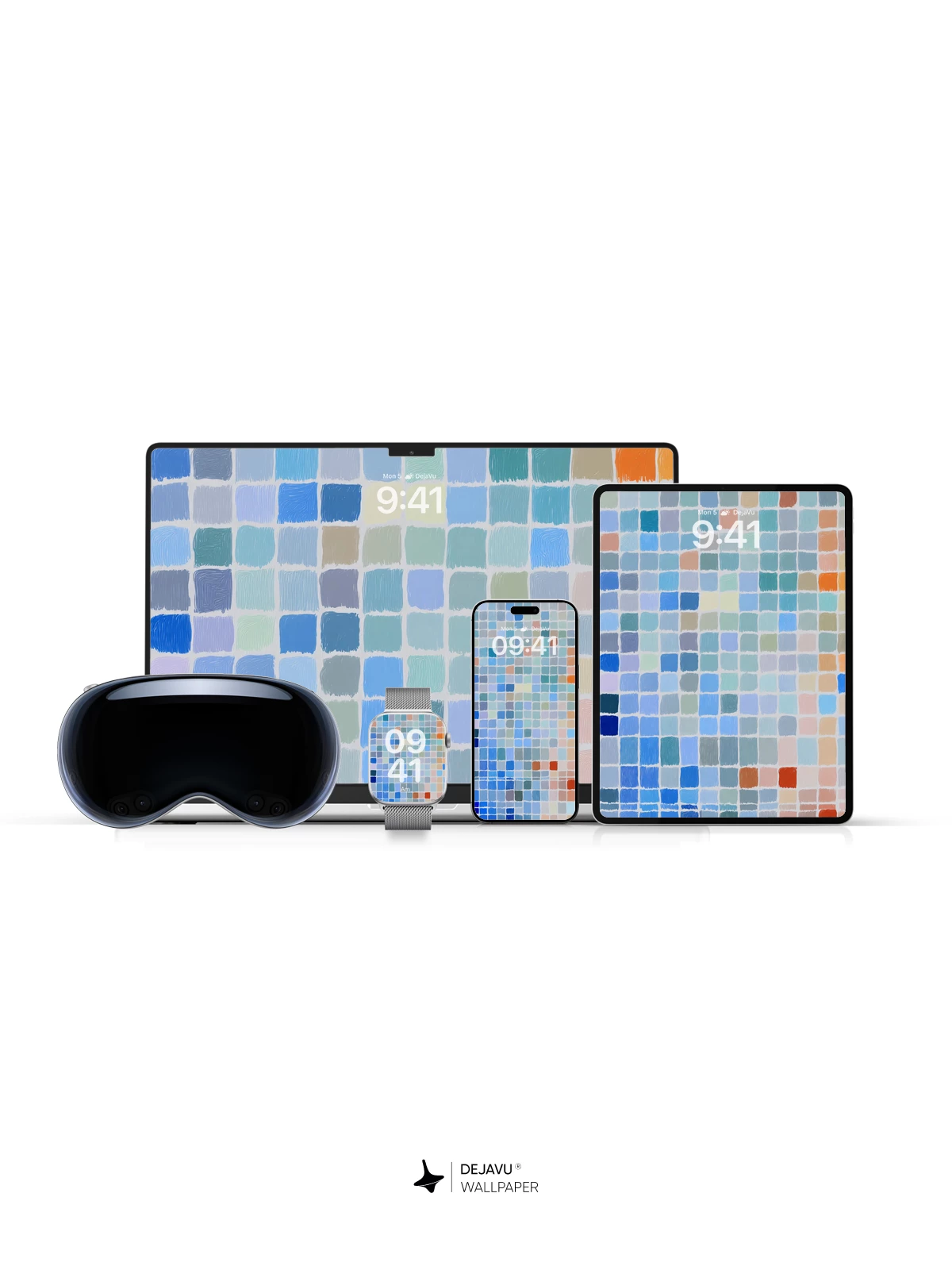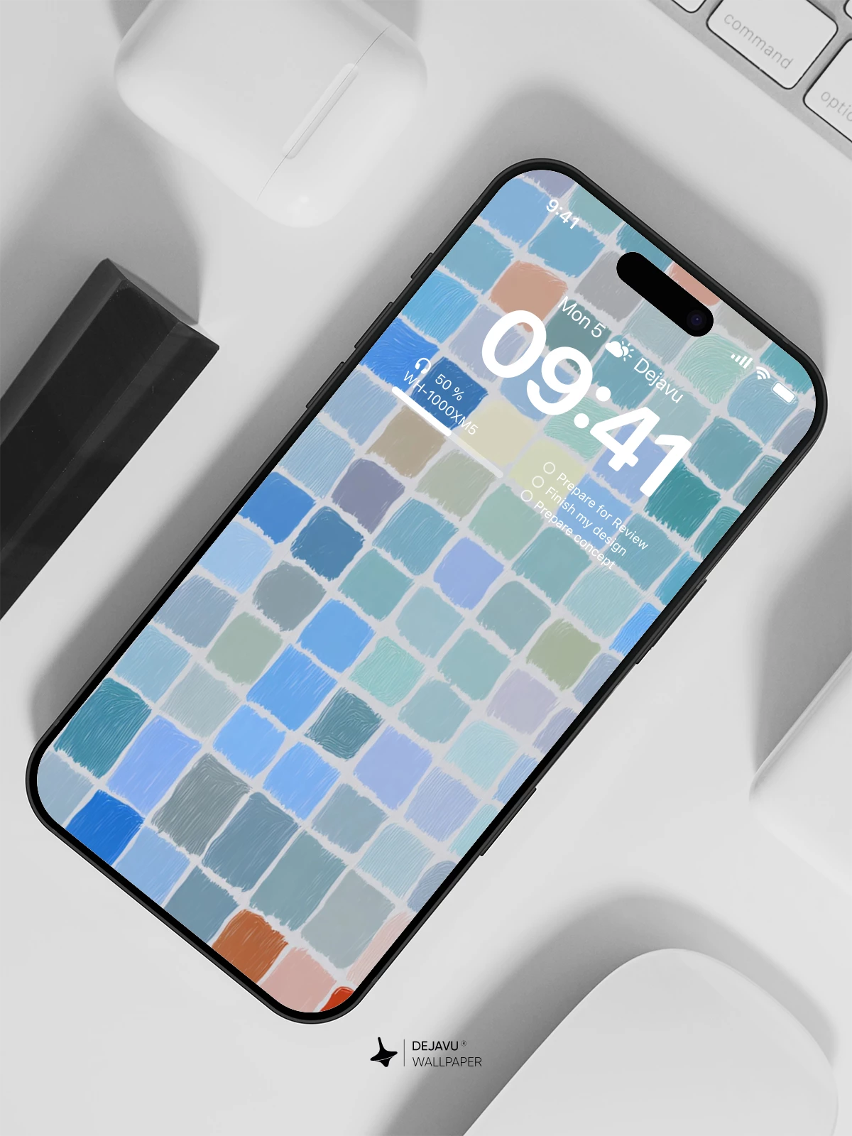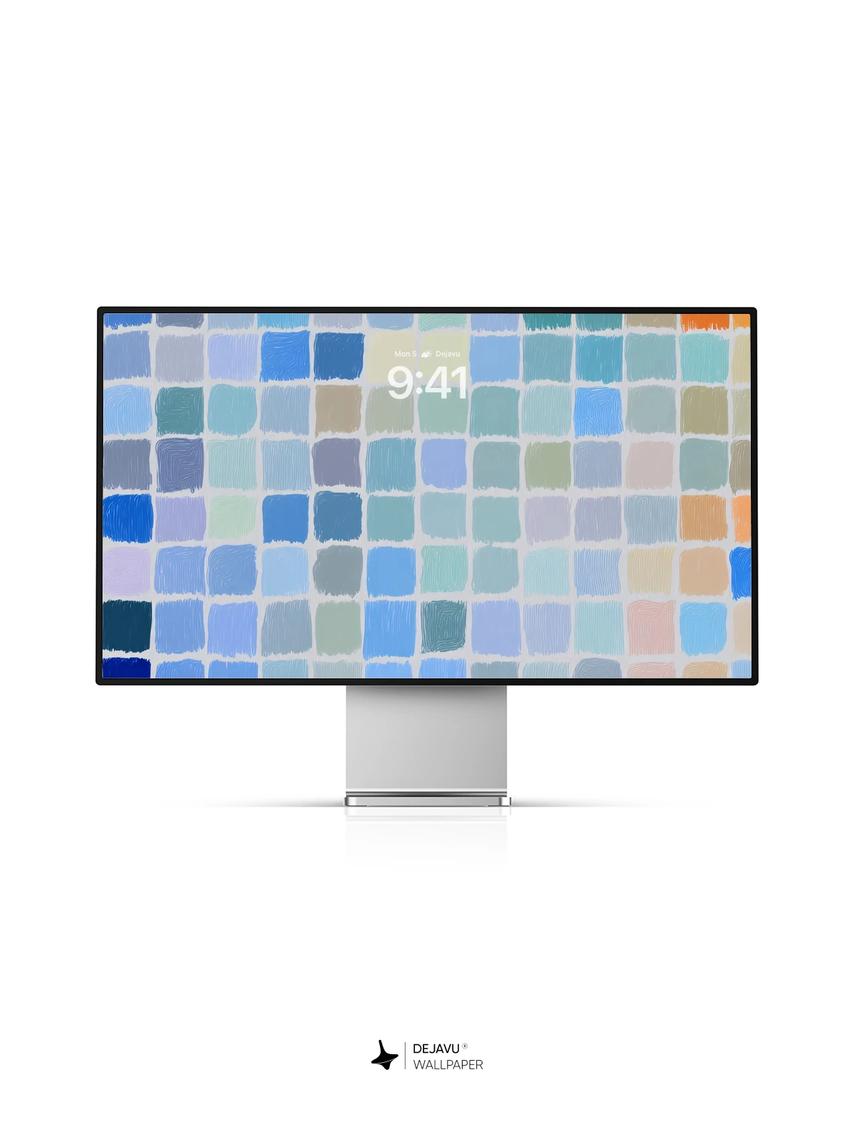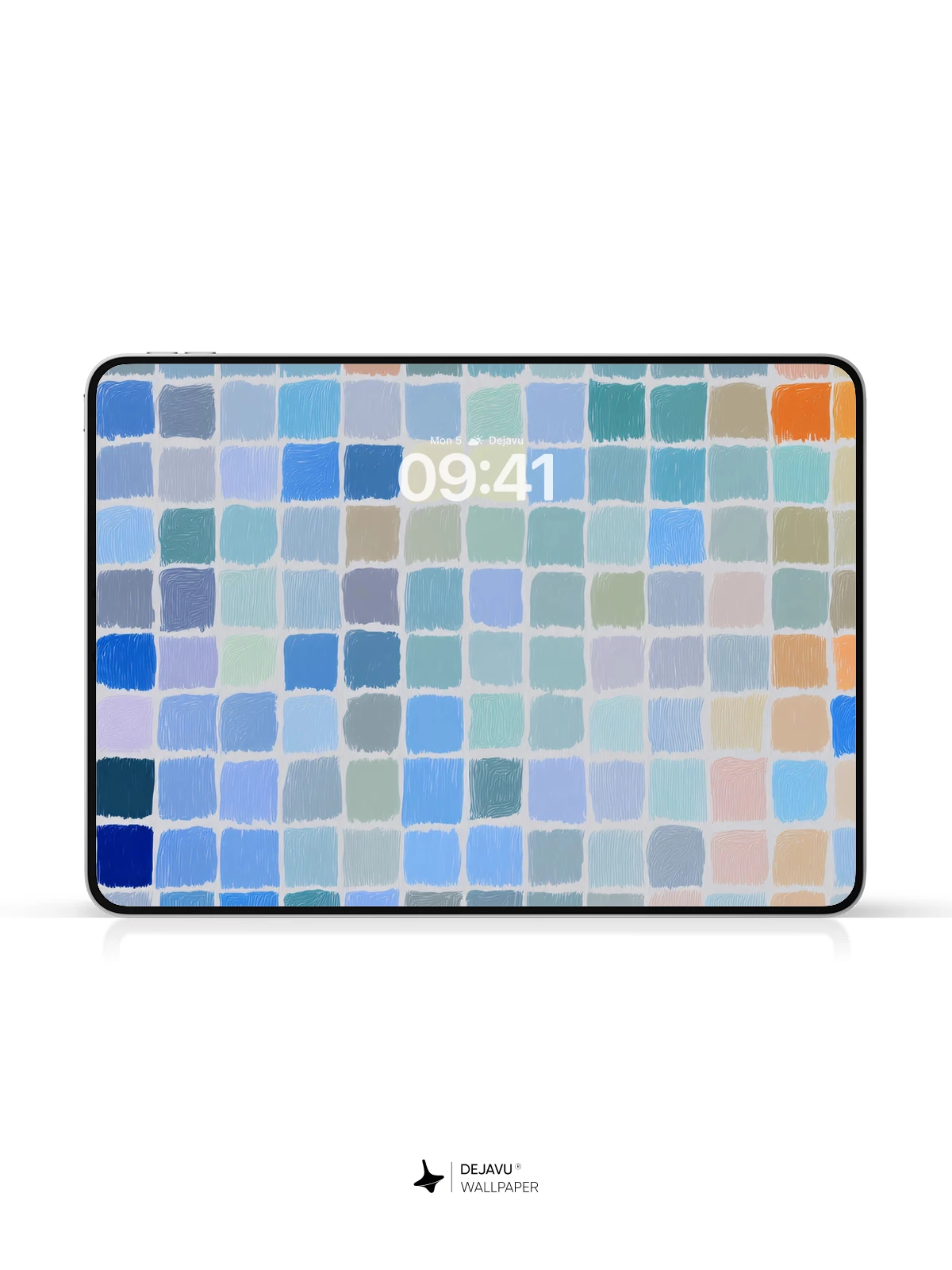 This wallpaper features a calming mosaic of soft blue and pastel squares, creating a serene and stylish backdrop. The subtle texture and balanced color palette make it a versatile choice for any device, from iPhone to Android and tablets. Its minimalist design adds a touch of elegance without overwhelming the screen.