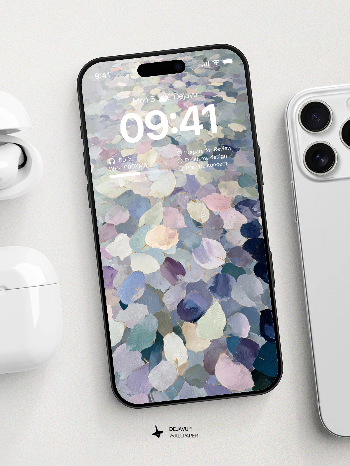 This design features a textured, impressionistic pattern of rounded stones in muted tones of blue, purple, and cream. The visible brushstrokes create a gentle, hand-painted feel that adds depth without overwhelming your device’s interface. Perfect for iPhone, Android, and tablets seeking a calm, artistic background.