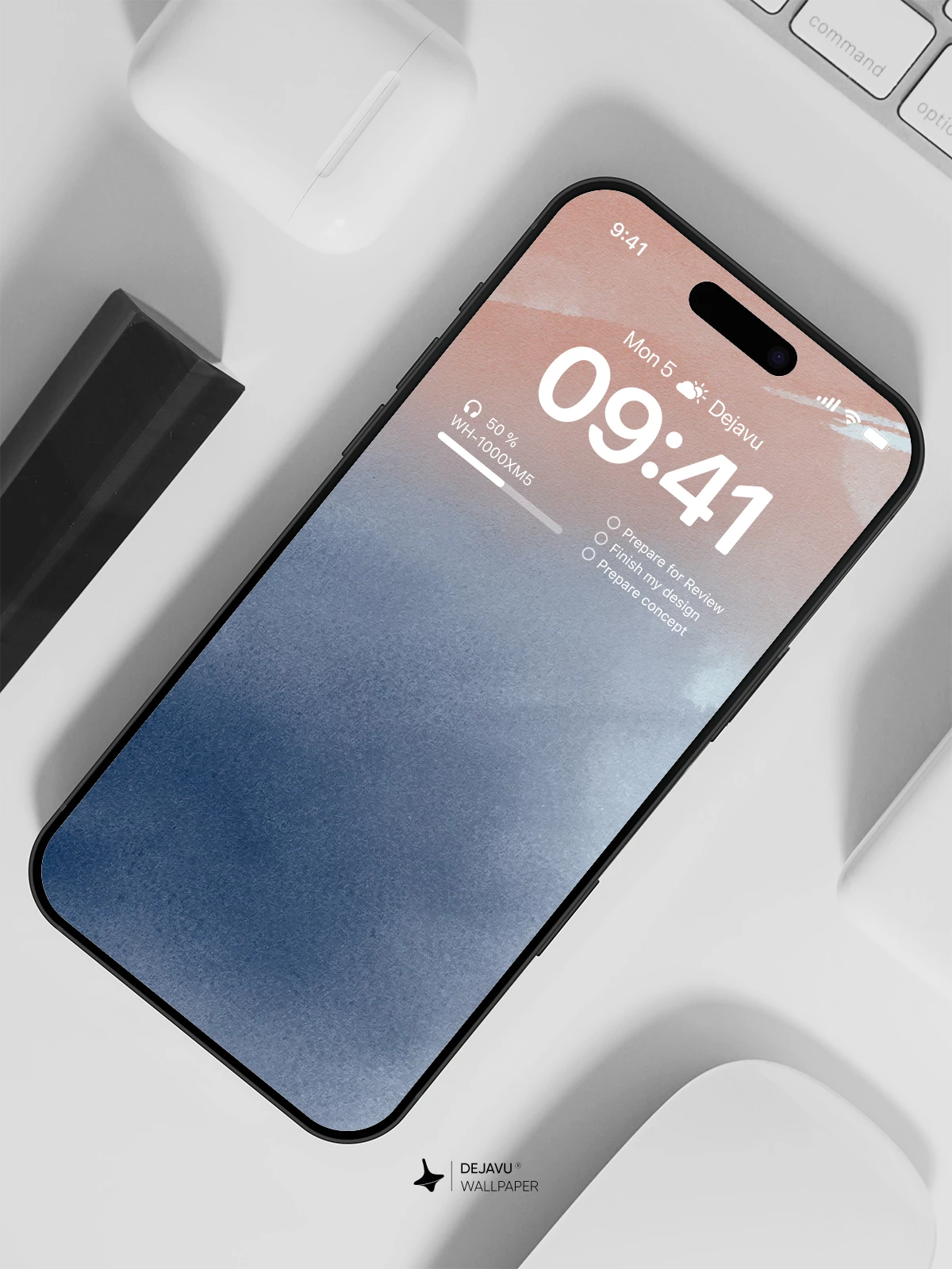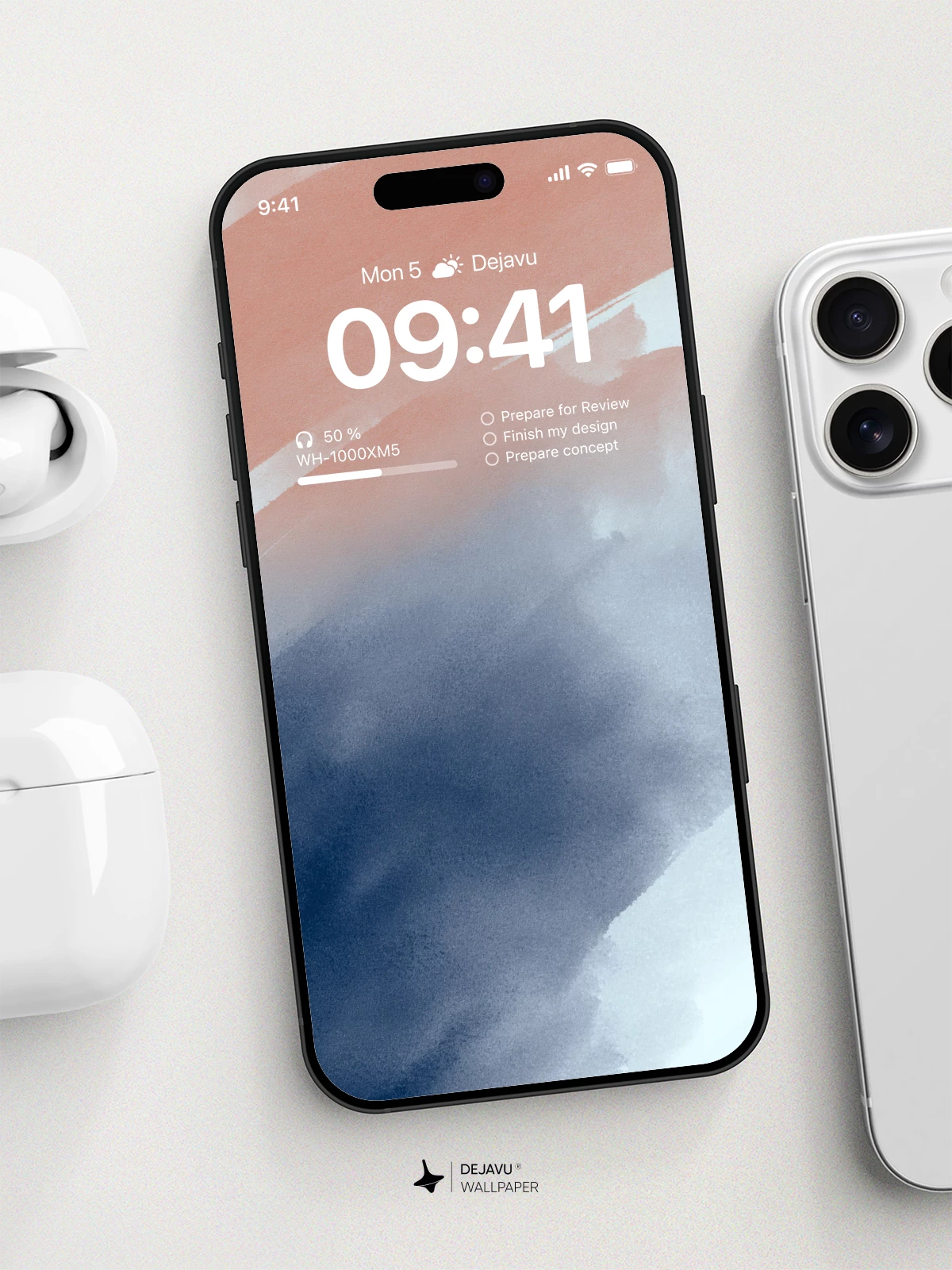 This abstract wallpaper features a soothing mix of pastel peach, muted gray, and rich navy blue, creating a calming yet visually striking effect. The soft brushstroke textures give it a hand-painted feel, perfect for personalizing your iPhone, Android, or tablet with a touch of artistic elegance.