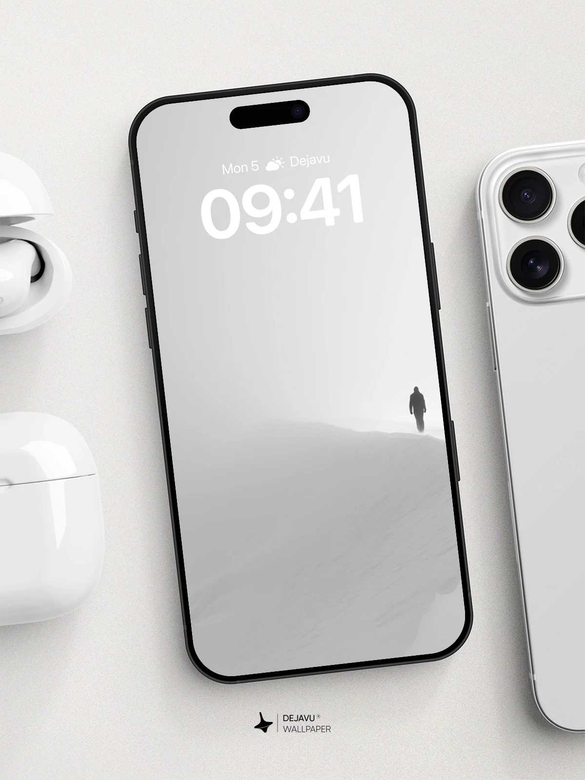 In this hauntingly beautiful winter scene, a solitary figure trudges across a snow-covered ridge swallowed by dense fog, creating a powerful sense of isolation and introspection. The monochrome palette and expansive negative space evoke a poetic stillness, reminiscent of minimalist landscape photography. Ideal as an 8K wallpaper for iPhone, Android, or any mobile device, this image brings quiet contemplation to your screen with its timeless, atmospheric design.