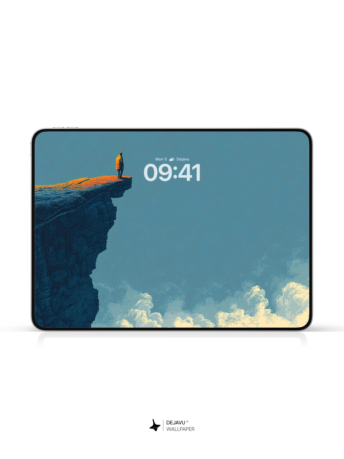 A solitary figure silhouetted on a rugged cliff edge gazes into an endless sky, where clouds drift like dreams beneath a serene blue expanse. This breathtaking 8K wallpaper blends realism with poetic emotion, capturing a moment of quiet reflection and human insignificance against nature’s majesty. Ideal for iPhone, Android, and tablets, it transforms your device into a portal to tranquility and inspiration.