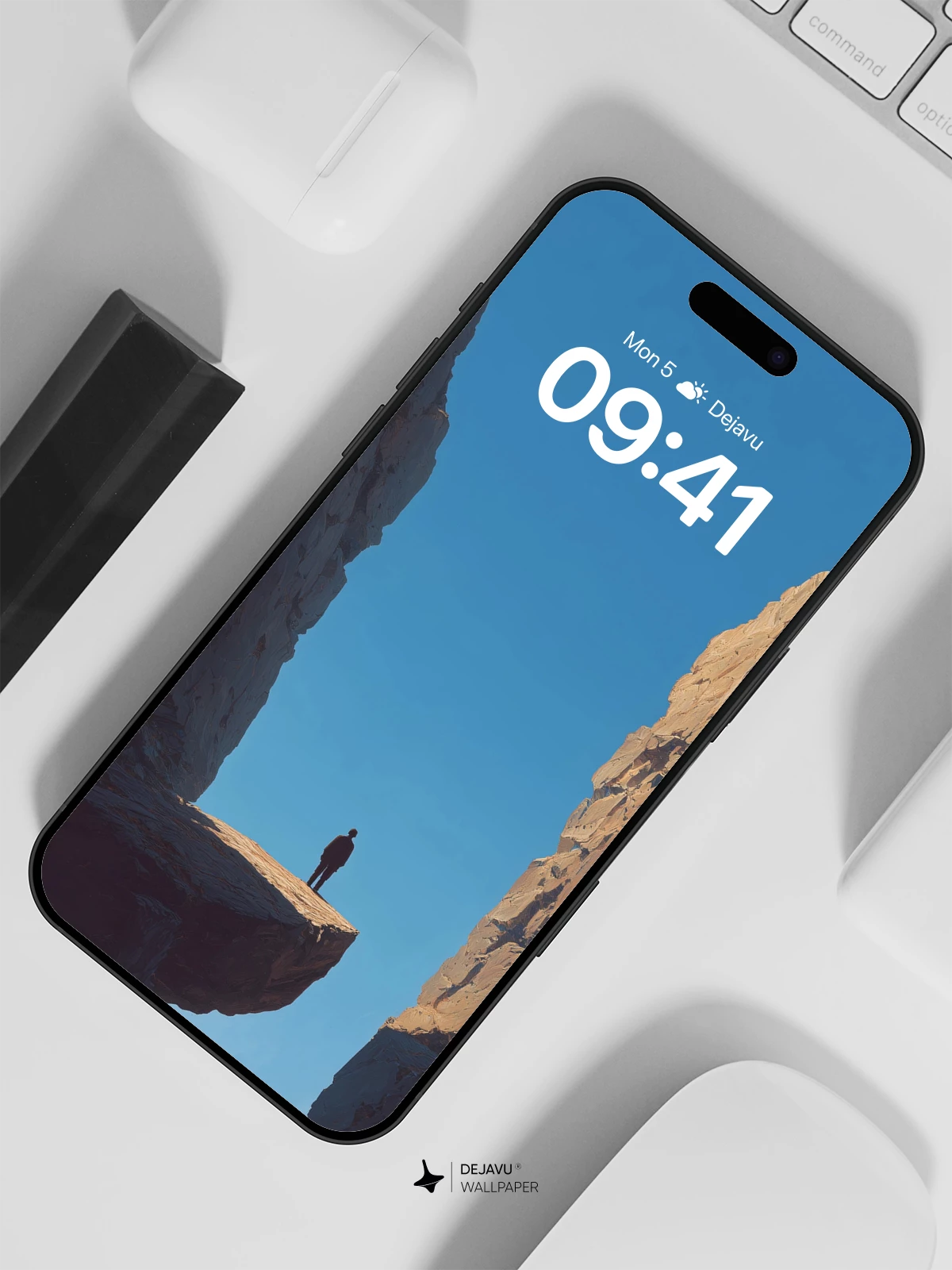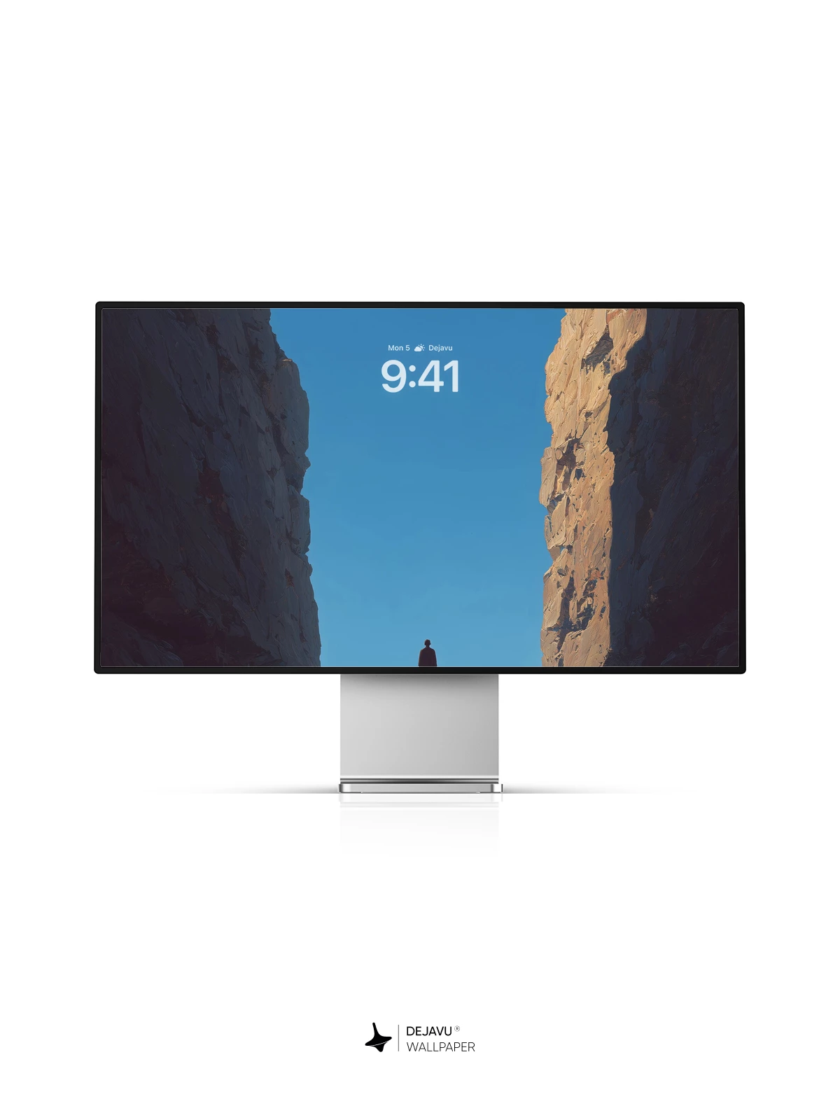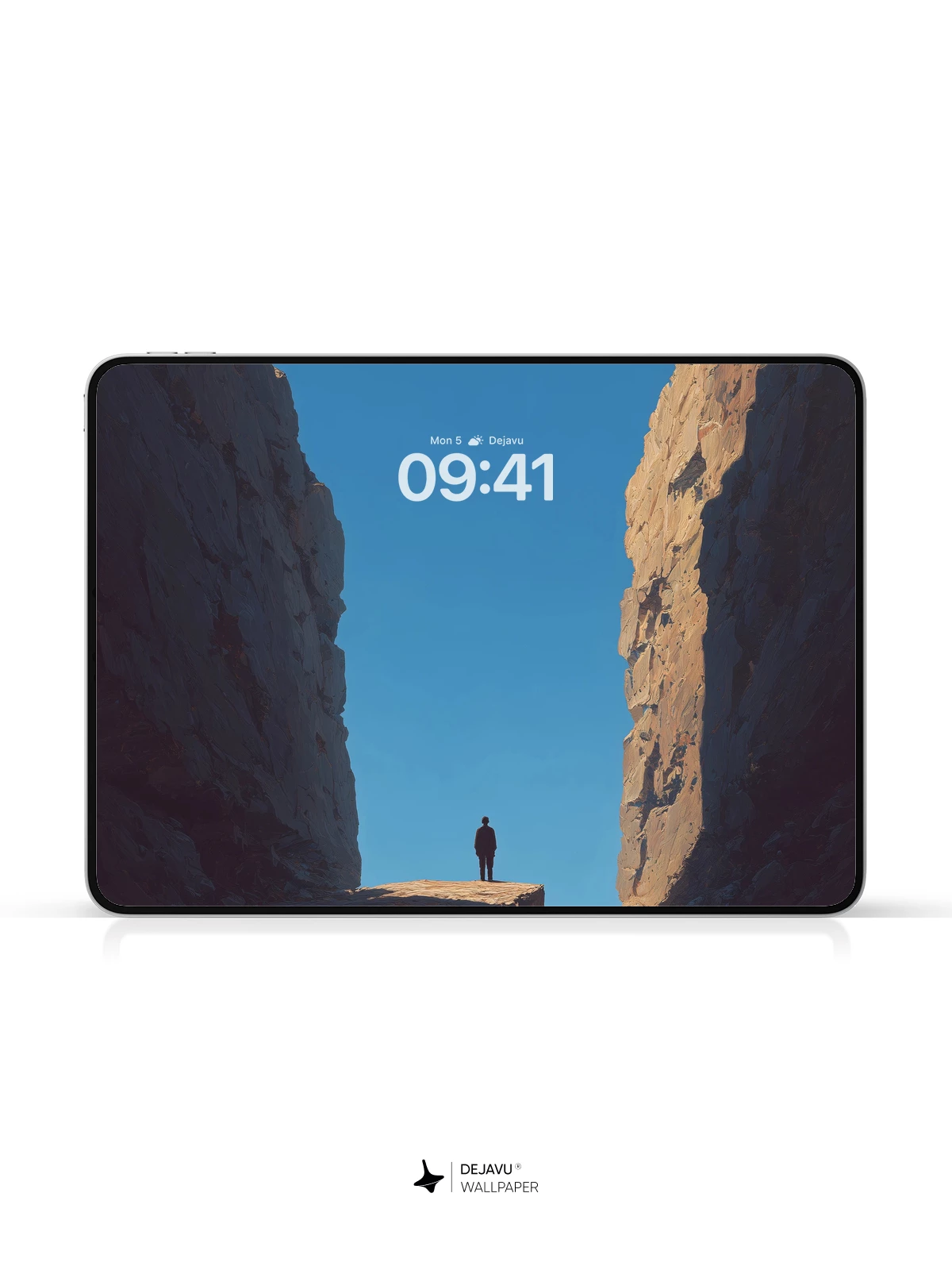 This breathtaking 8K wallpaper captures a solitary figure standing at the edge of a suspended rock platform, framed by massive canyon walls reaching toward a clear blue sky. The composition evokes a profound sense of isolation and human fragility against nature’s grandeur. Ideal for iPhone, Android, and tablets, this image blends natural drama with minimalist framing to inspire contemplation. Its cinematic depth and high-definition clarity make it a striking choice for any device screen.