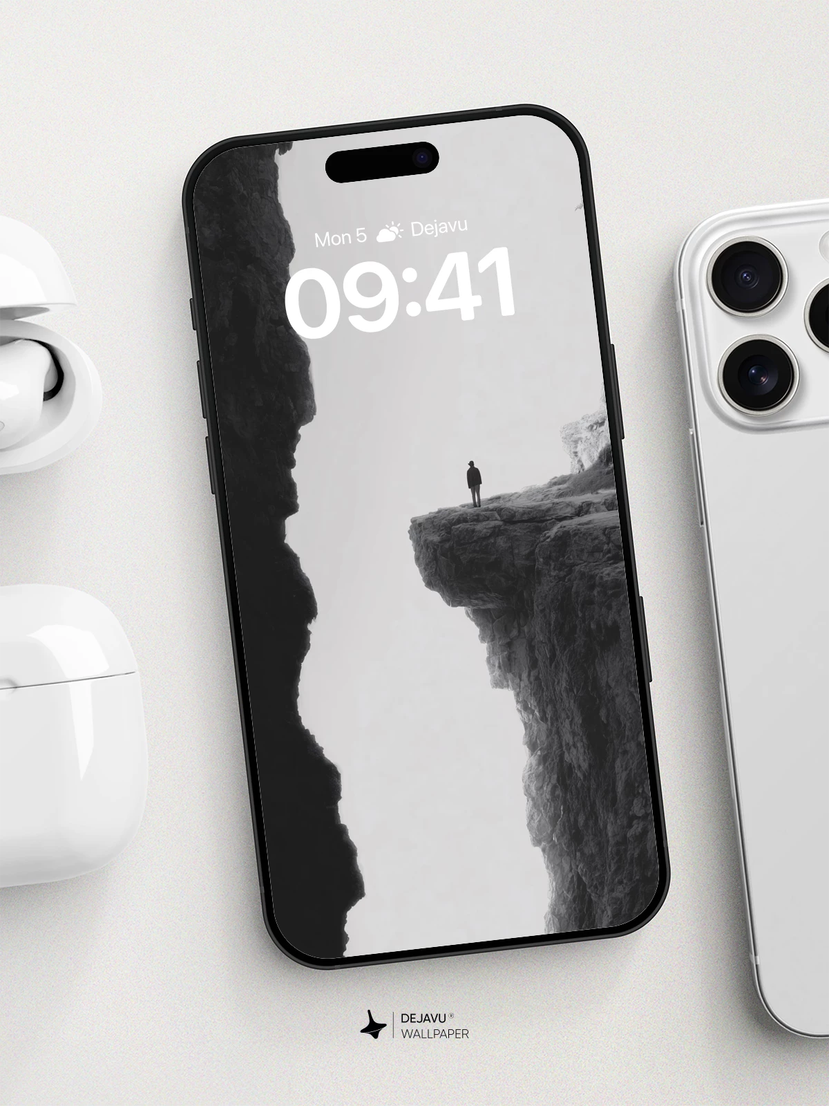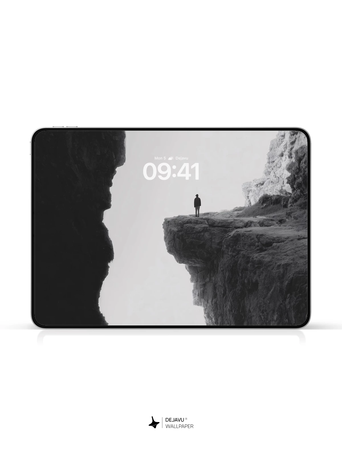 This striking 8K wallpaper features a solitary figure silhouetted against a vast, open sky, standing at the edge of a jagged cliff that stretches into darkness. The stark contrast and minimalist composition evoke a profound sense of isolation and introspection, making it ideal for iPhone, Android, and tablet screens. With its high-resolution detail and moody atmosphere, it transforms any device into a portal to quiet contemplation.