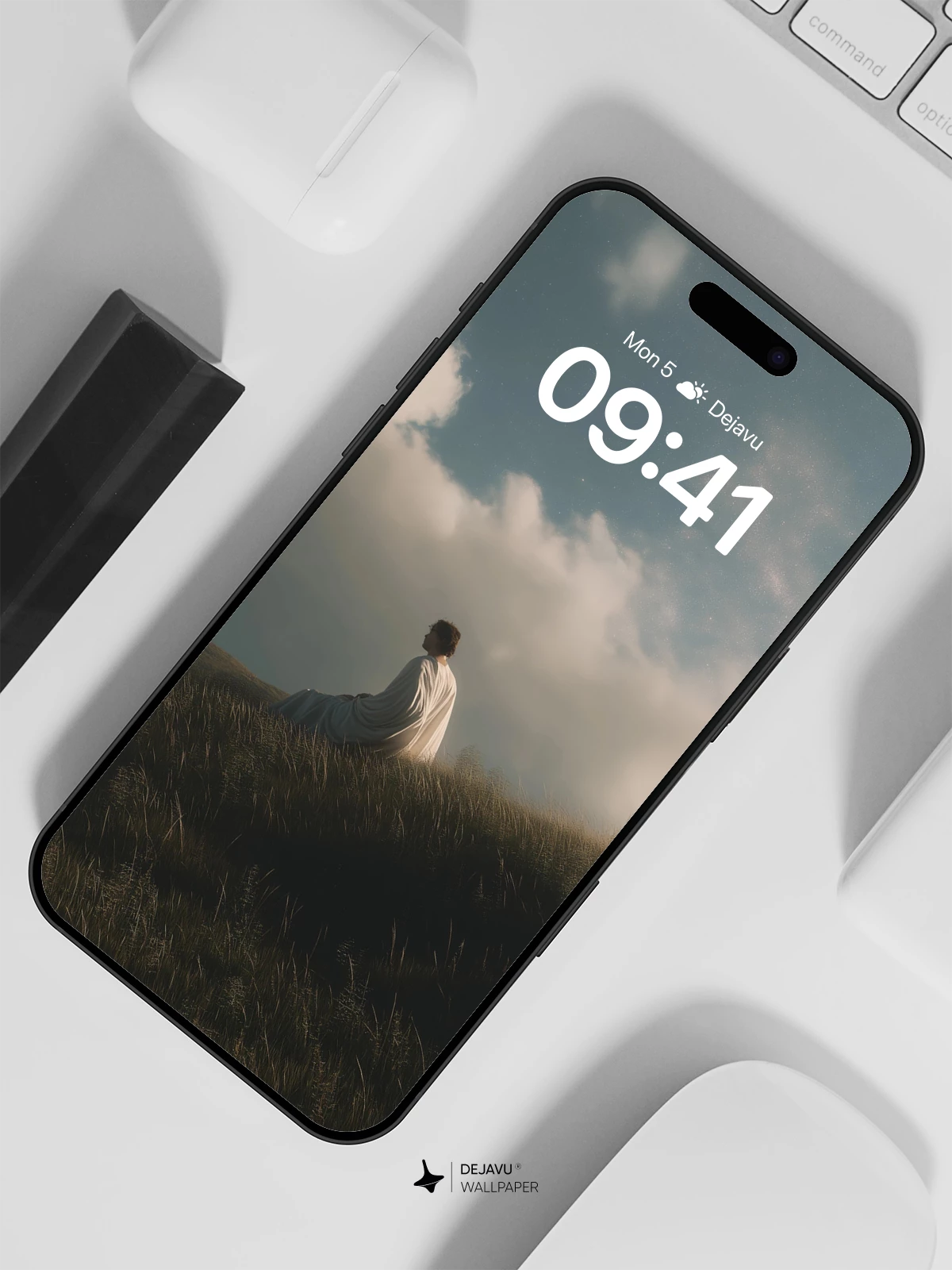 This evocative 8K wallpaper captures a solitary figure draped in white, seated on a sunlit hillside beneath an expansive sky filled with drifting clouds. The scene radiates tranquility and introspection, blending natural beauty with a sense of spiritual stillness. Ideal for iPhone, Android, and tablet screens, this high-resolution image transforms your device into a portal of calm and reflection. Inspired by cinematic minimalism and poetic landscapes, it invites quiet moments of mindfulness in everyday life.