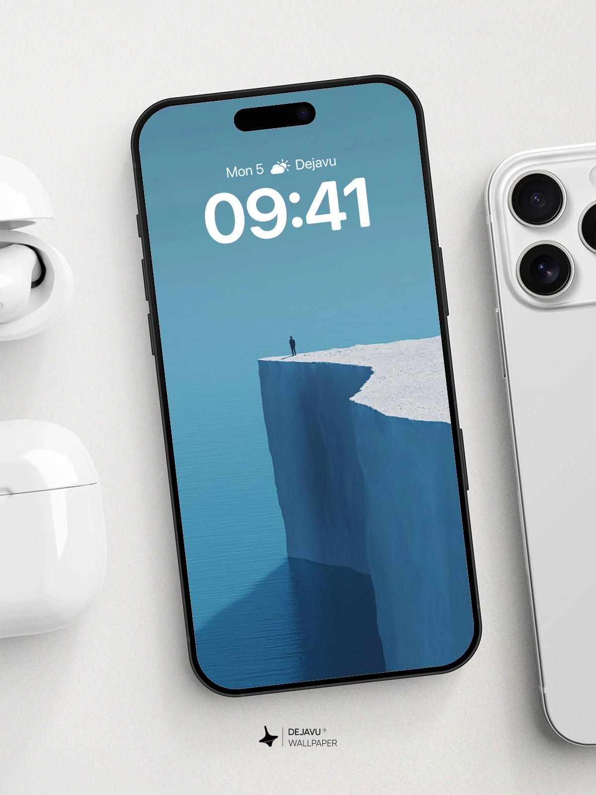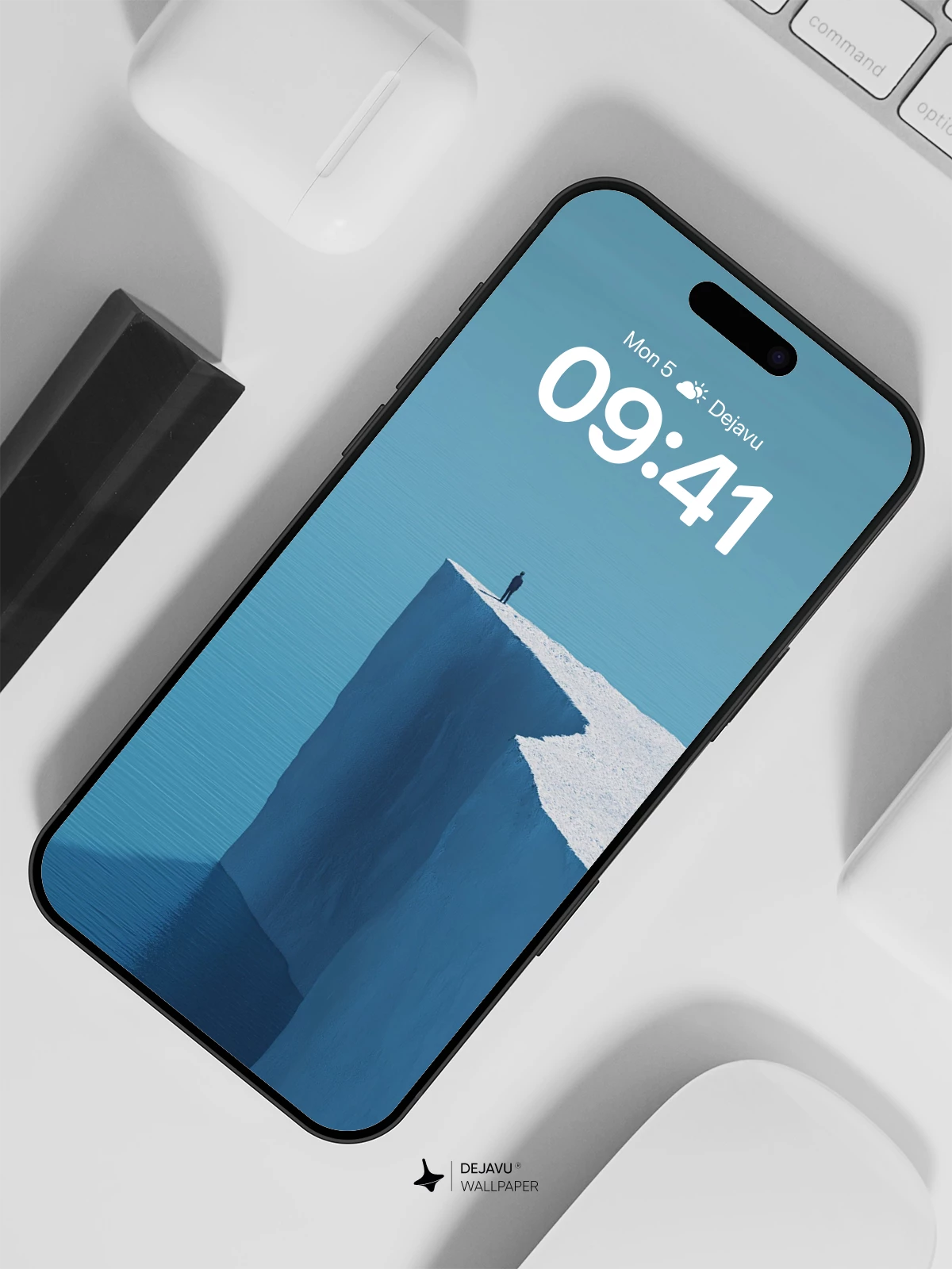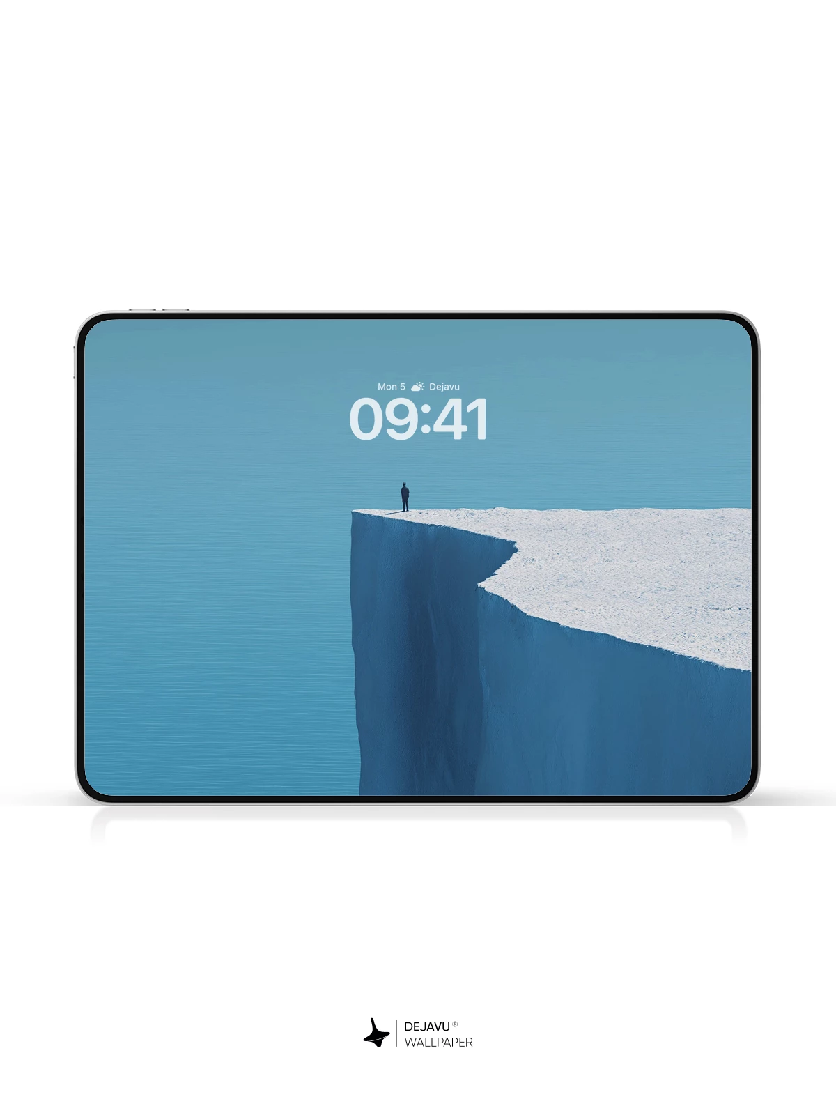 This breathtaking 8K wallpaper captures a solitary figure perched on the edge of a colossal ice cliff, overlooking an endless expanse of calm blue water and sky. The minimalist composition emphasizes scale, solitude, and the quiet majesty of nature. With its clean lines, cool tones, and dramatic perspective, it’s ideal for iPhone, Android, or tablet screens seeking a moment of visual serenity. A poetic tribute to human insignificance against the sublime.