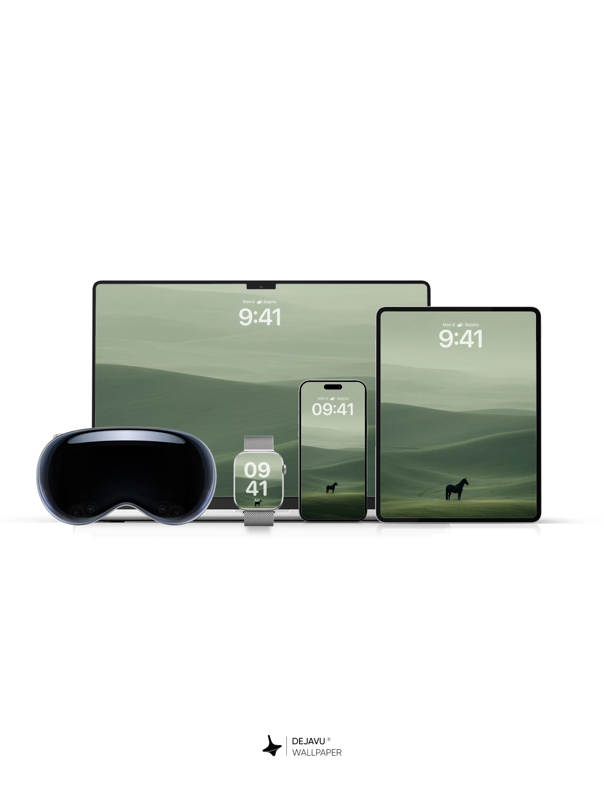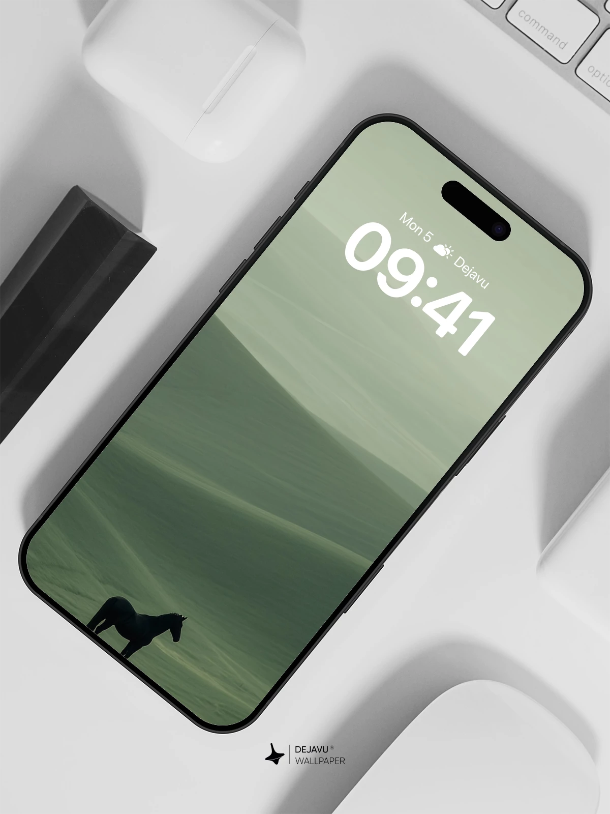 This evocative 8K wallpaper features a solitary black horse standing on rolling hills shrouded in mist, creating a powerful sense of quiet contemplation and timeless peace. The muted greens and gentle gradients evoke a dreamlike stillness, ideal for iPhone, Android, or tablet screens. Inspired by minimalist landscape photography with a poetic touch, it transforms any device into a portal to calm and nature.