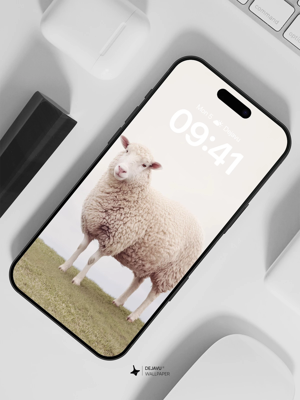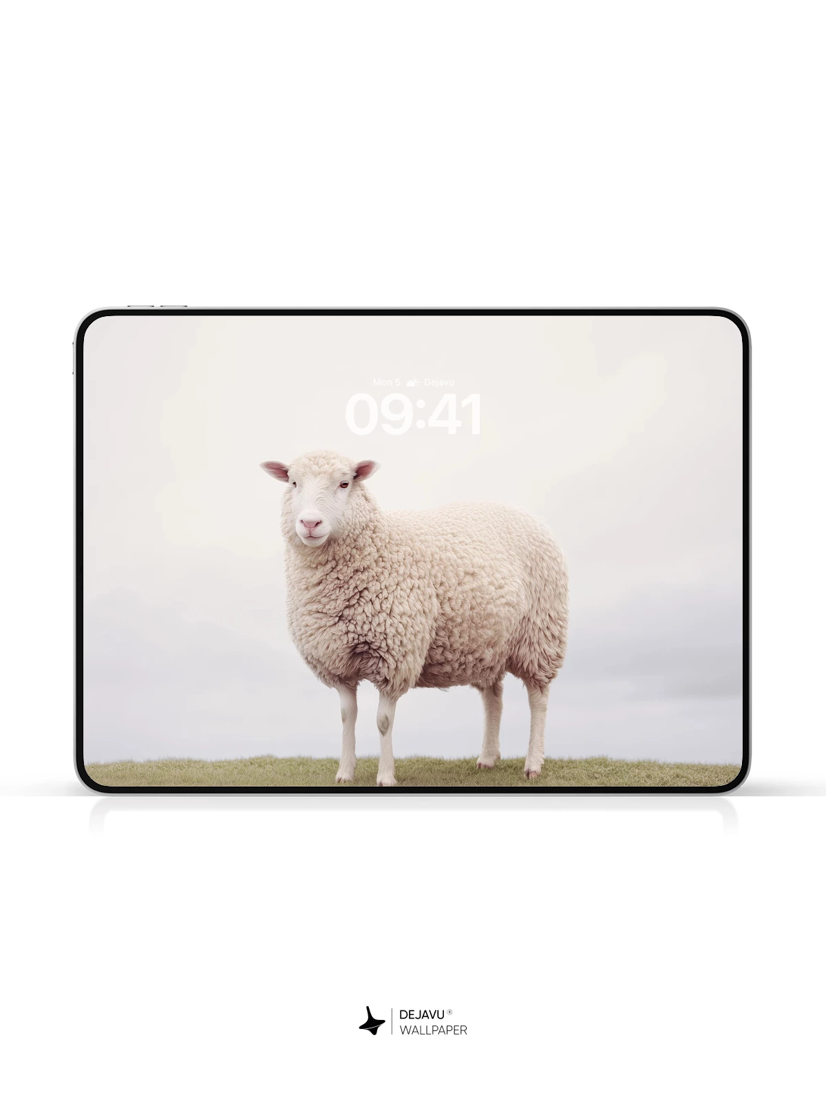 This tranquil image captures a solitary sheep standing proudly on a gently sloping hill, framed by an expansive, muted sky. The minimalist composition evokes a sense of calm and timeless solitude, making it ideal as an 8K wallpaper for iPhone, Android, and tablets. With its natural textures and soothing palette, this high-resolution artwork brings quiet beauty to any mobile device screen.