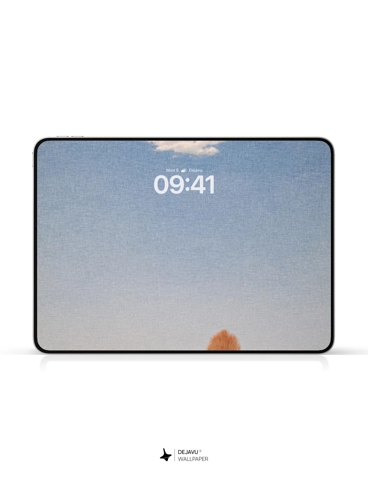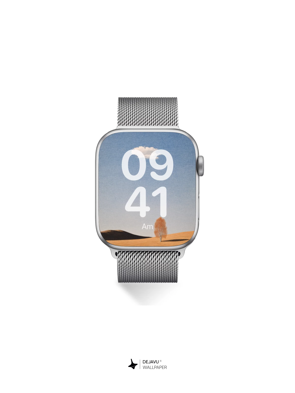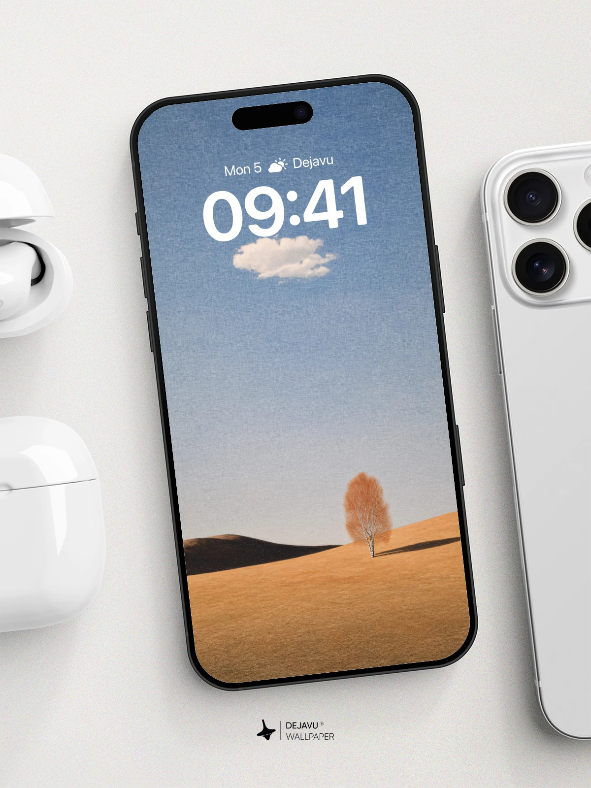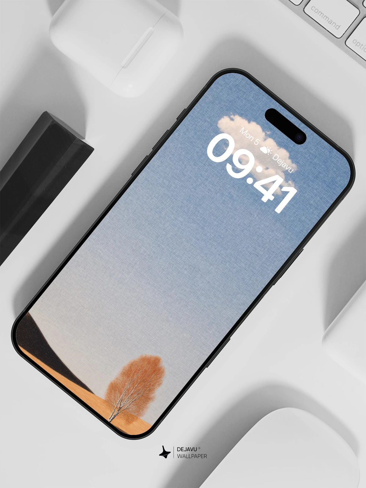 The image features a solitary tree in a desert landscape, bathed in warm light against a clear blue sky. Its minimalist composition offers a calming visual escape, perfect for iPhone, Android, and tablet screens.