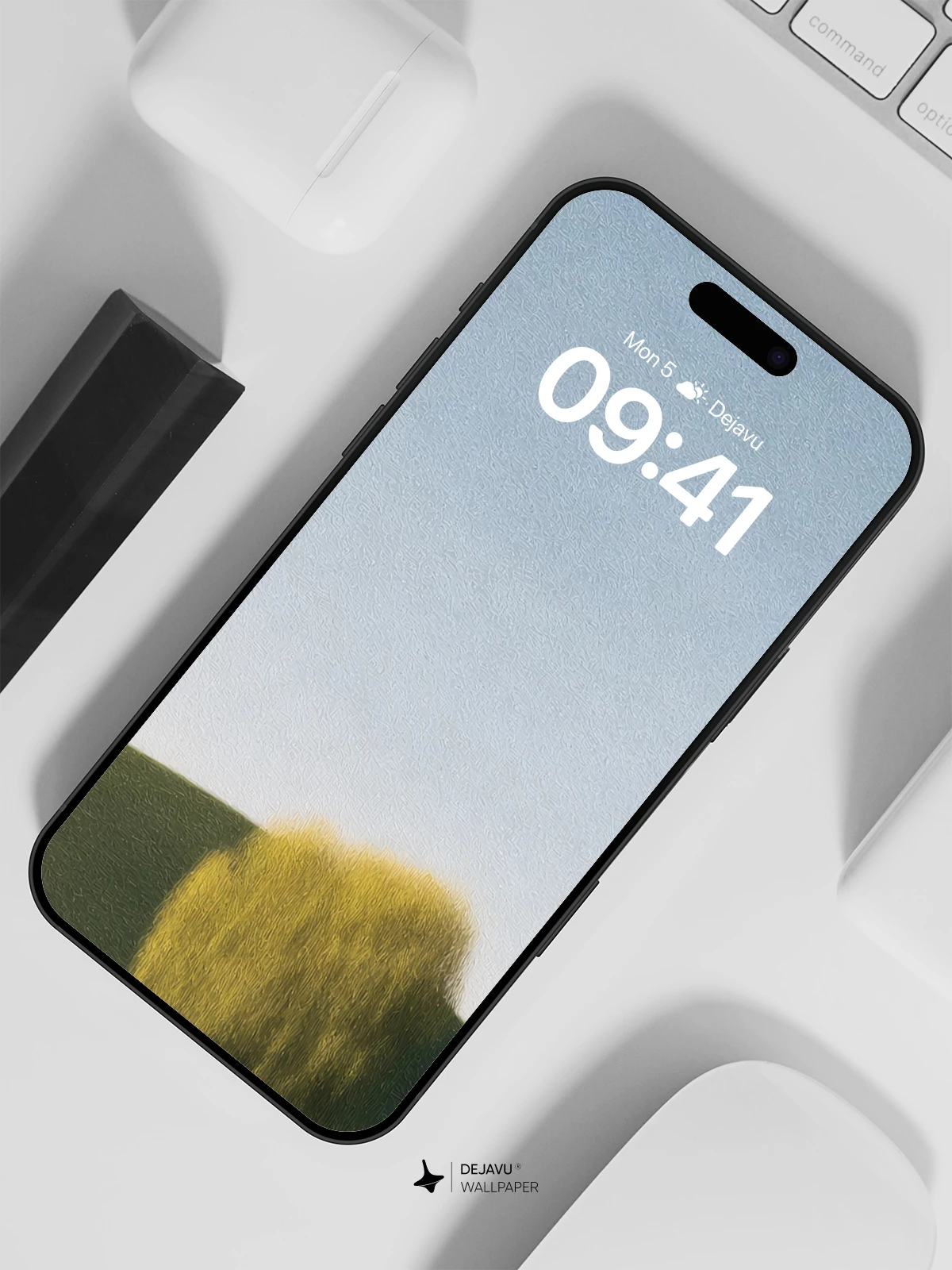 This striking 8K wallpaper captures a moment of quiet contemplation in a surreal landscape: a solitary figure approaches a radiant, golden tree atop a gentle green hill, beneath an expansive blue sky. The composition, reminiscent of minimalist art with poetic depth, emphasizes balance, scale, and emotional resonance. Ideal for iPhone, Android, and tablet screens, it brings a sense of calm and timeless elegance to your device’s home screen.