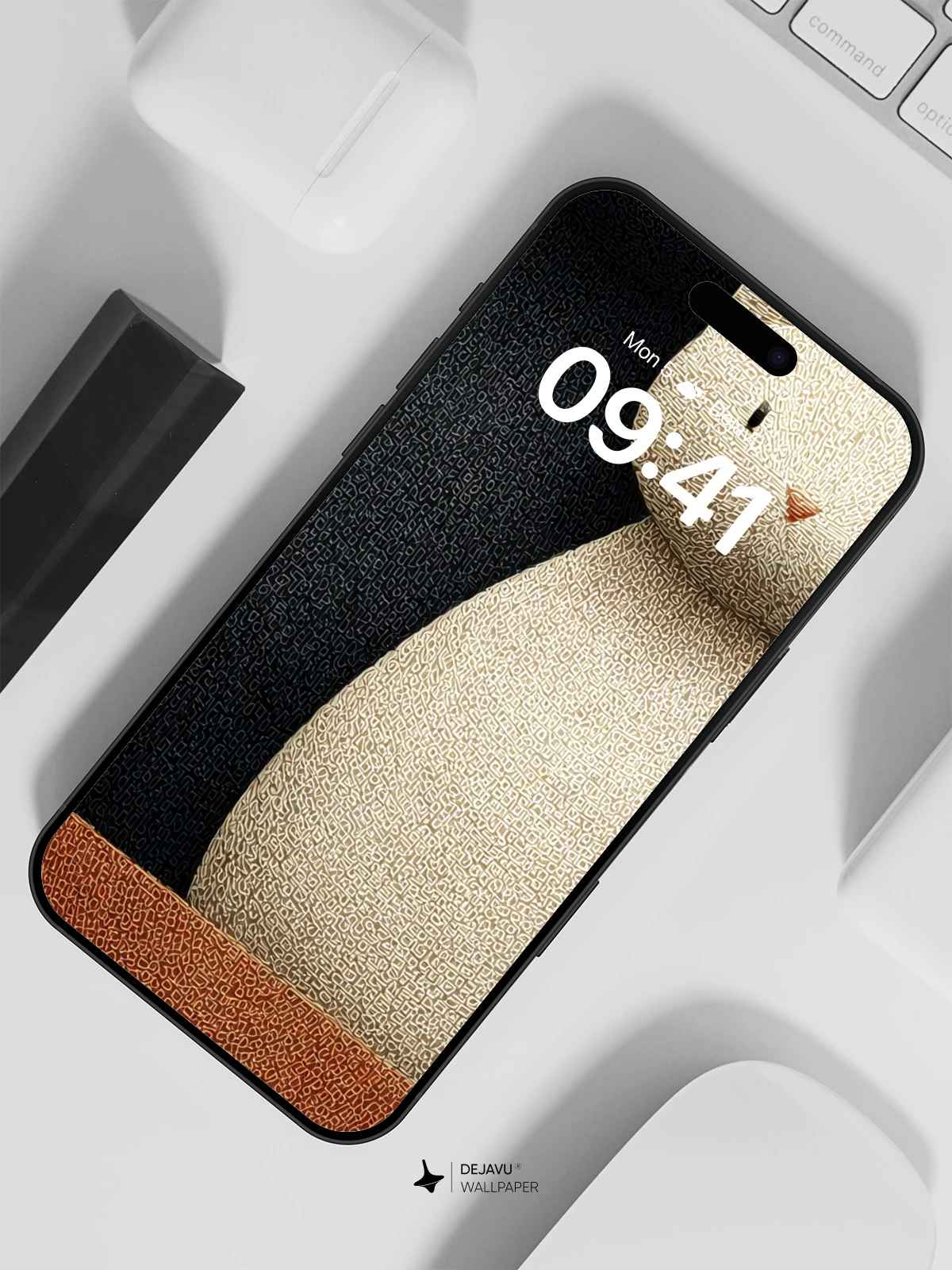 This whimsical yet elegant artwork features a black and white cat duo nestled in a bowl, rendered in a soft, fabric-like texture that brings a tactile quality to the digital canvas. Inspired by modern textile art and minimalist design, the composition exudes calmness and companionship, making it ideal for iPhone, Android, and tablet wallpapers. The balanced color palette and clean forms create a soothing visual experience, perfect for those who appreciate understated elegance and creative storytelling in their mobile backgrounds.