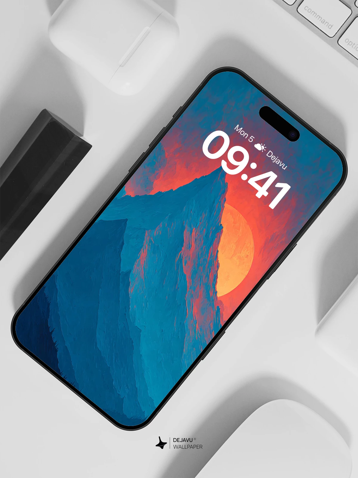 This wallpaper captures the serene beauty of a mountain range at sunset, where the sun’s last rays paint the sky in bold shades of red and orange. The sharp peaks and layered ridges create a sense of depth and grandeur, while the cool blue tones balance the warmth of the setting sun. Ideal for iPhone, Android, and tablets, this design brings the tranquility of nature to your screen with its crisp details and rich colors.