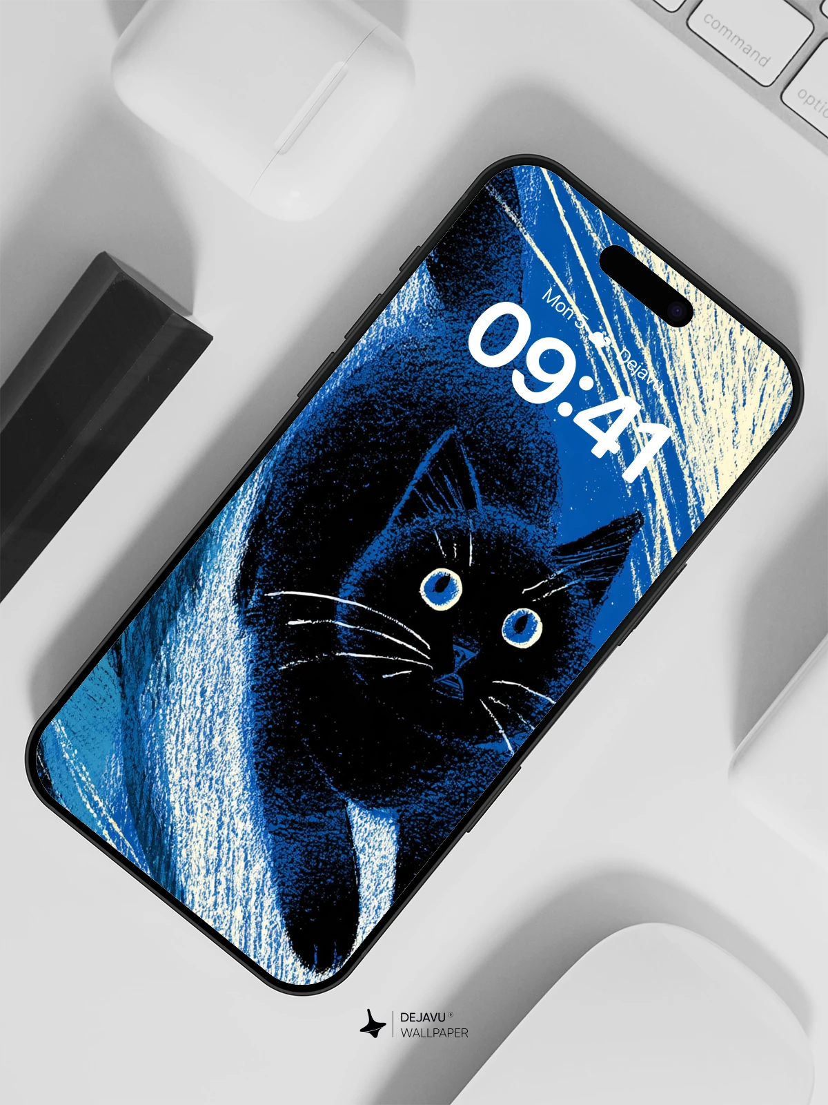 Inspired by the dynamic energy of Japanese woodblock prints and modern surrealism, this striking 8K wallpaper captures a black cat gliding through a cosmic wave of blue and white. With glowing eyes and expressive motion lines, it evokes mystery and grace, making it ideal for iPhone, Android, or tablet screens. The high-contrast design and flowing composition create a hypnotic effect—perfect for those who love artful, imaginative visuals on their mobile devices.