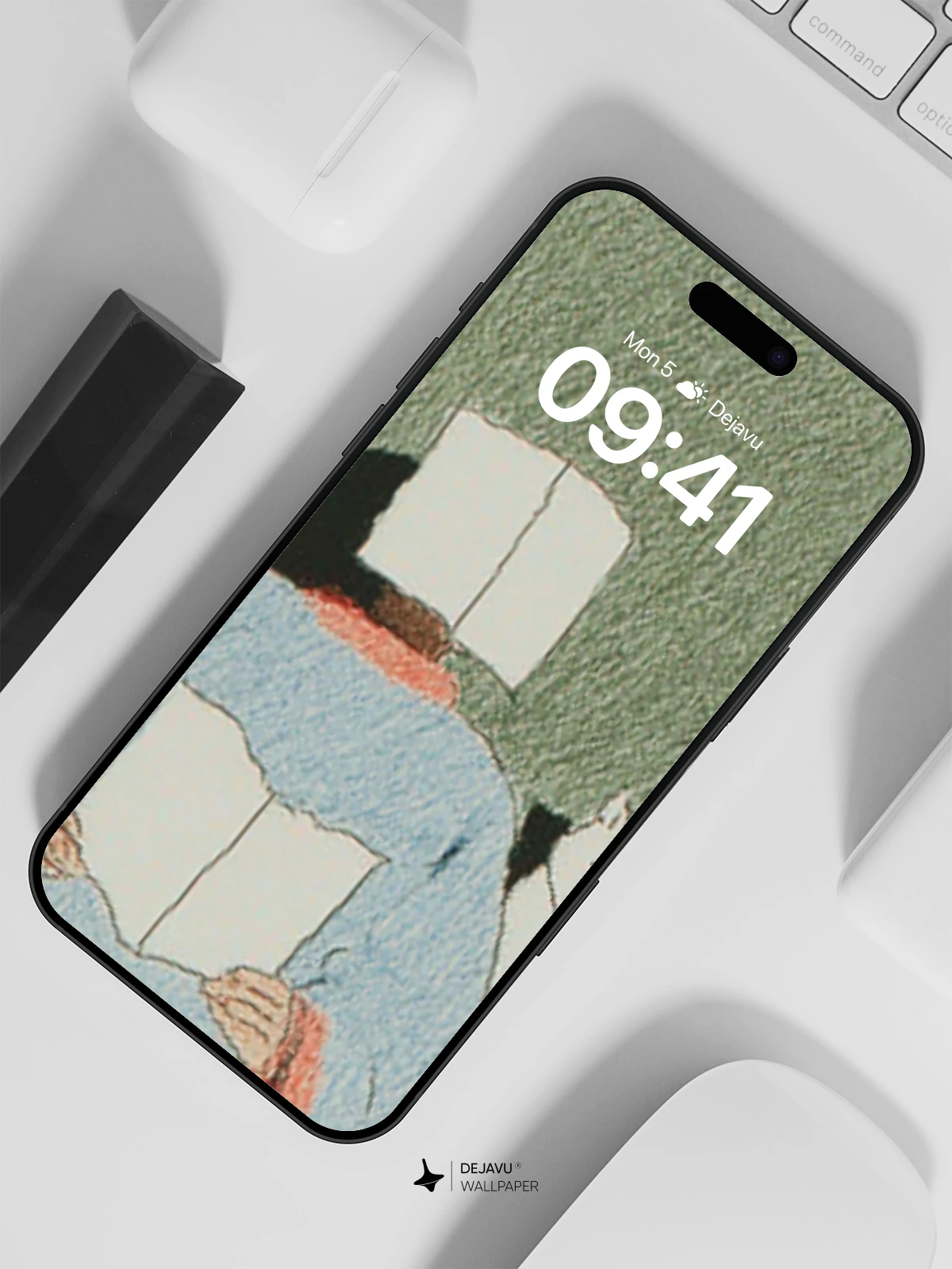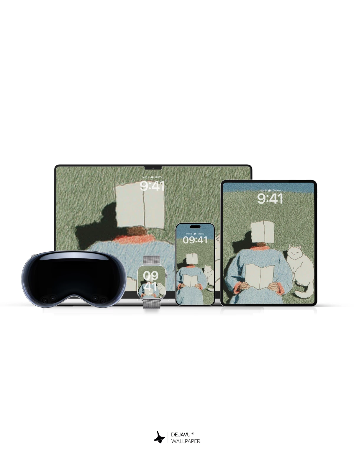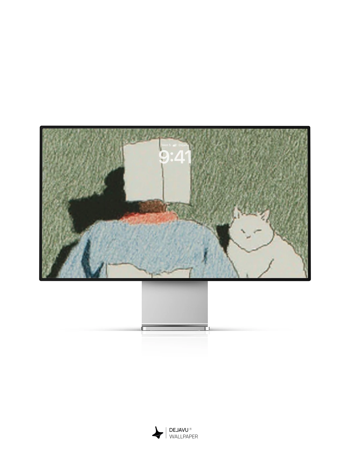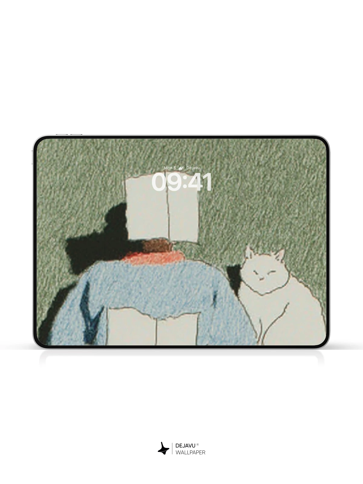 Inspired by the whimsical surrealism of modern illustrative art, this 8K wallpaper features a tranquil figure whose head is replaced by an open book, reading another book while sitting beside a calm white cat. The soft textures and minimalist palette evoke a sense of quiet contemplation and literary magic. Ideal for iPhone, Android, and tablet users who appreciate unique, thought-provoking visuals, this design transforms your device into a portal of imagination and calm.