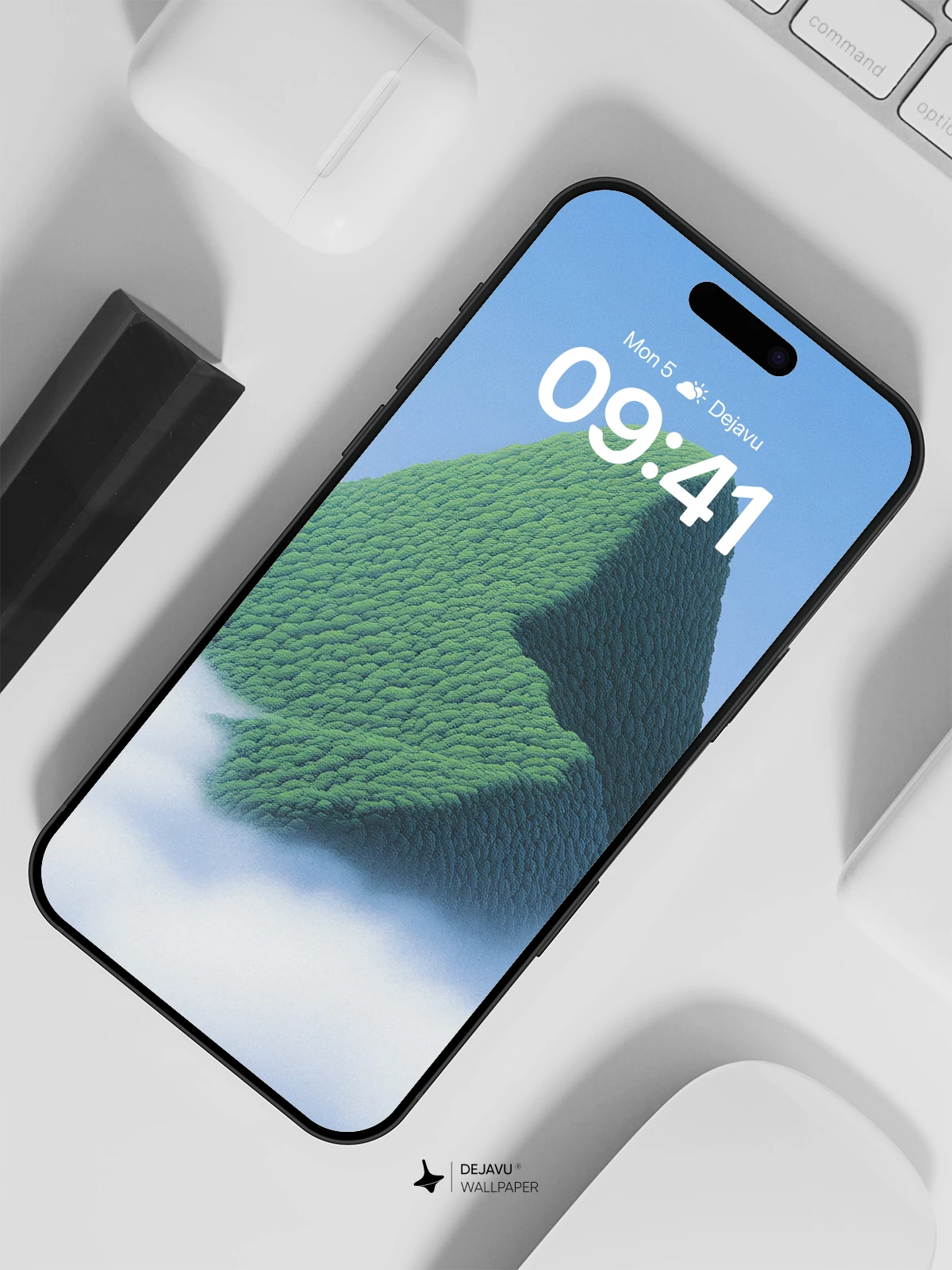 This breathtaking 8K wallpaper captures a solitary, forest-covered peak rising above a sea of clouds, evoking a sense of timeless tranquility and mystical solitude. The lush green slopes, rendered in a stylized yet realistic texture, create a surreal landscape that feels both otherworldly and deeply peaceful. Inspired by the poetic harmony found in nature, this design is ideal for iPhone, Android, and tablet screens, offering a calming digital escape. Perfect for those who seek artistry and serenity in their daily tech experience.