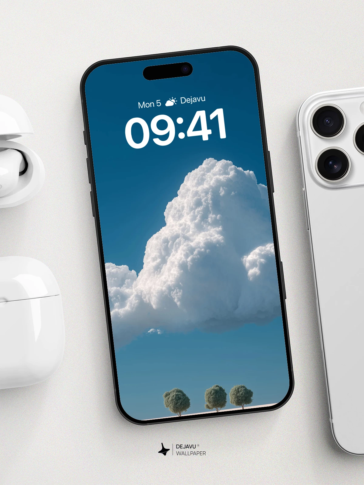 This surreal landscape captures the quiet drama of nature with a colossal cloud dominating a deep blue sky above three perfectly aligned trees on an endless white plane. The minimalist composition evokes solitude and wonder, making it an ideal 8K wallpaper for iPhone, Android, or tablet users who appreciate dreamlike visuals and tranquil aesthetics. Inspired by modern digital art’s love for balance and scale, this image transforms any screen into a portal to calm, infinite skies.