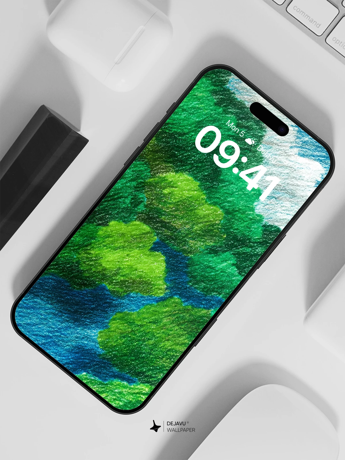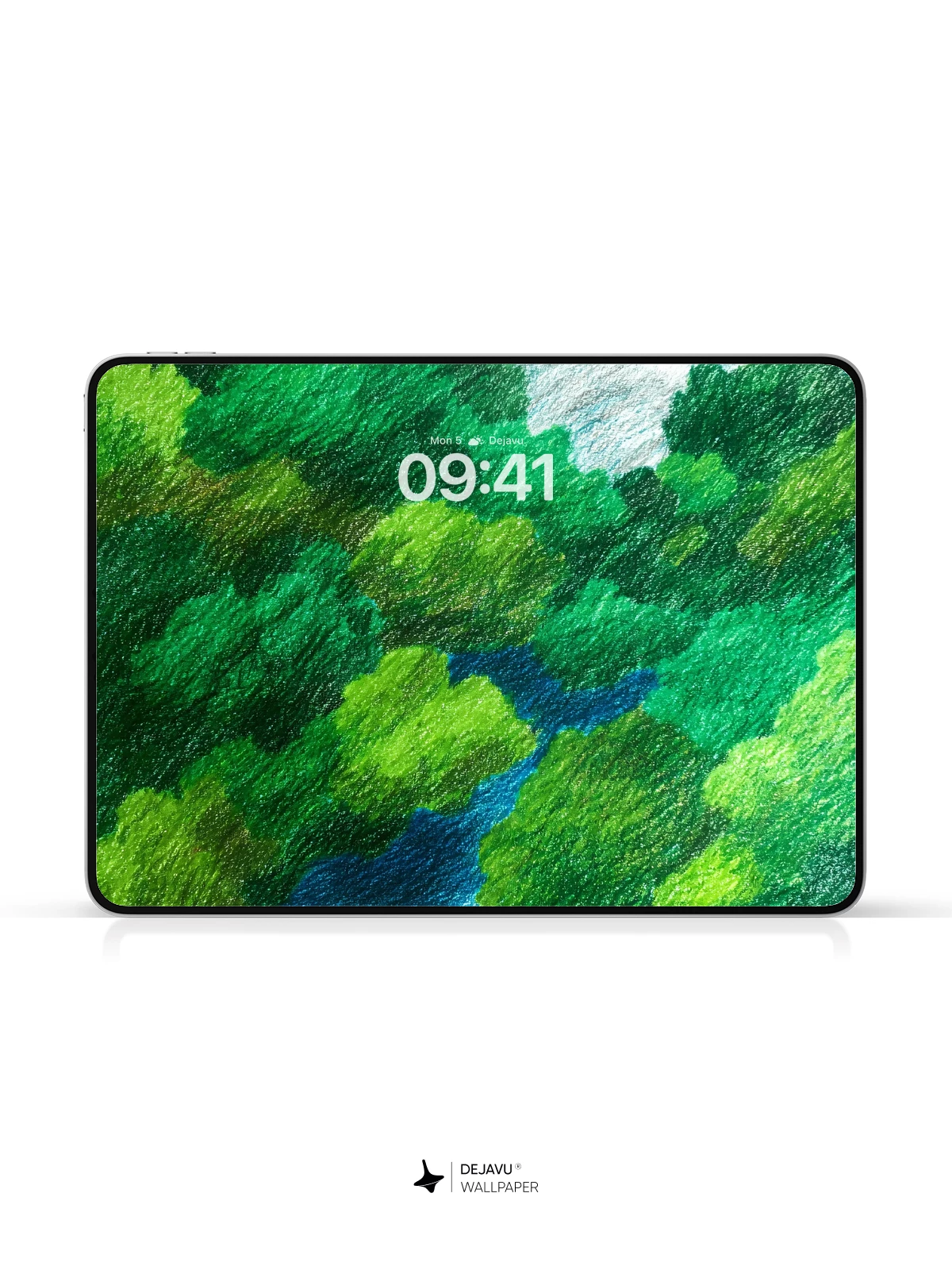 This captivating 8K wallpaper immerses you in a surreal forest landscape, where a serene blue river meanders through dense, emerald canopies under a soft sky. The textured, painterly style evokes the spirit of impressionist landscapes, reminiscent of Monet’s natural palettes but reimagined with modern vibrancy. Ideal for iPhone, Android, and tablet screens, it brings tranquility and artistic depth to your device’s background, transforming everyday tech into a portal to nature’s quiet wonder.