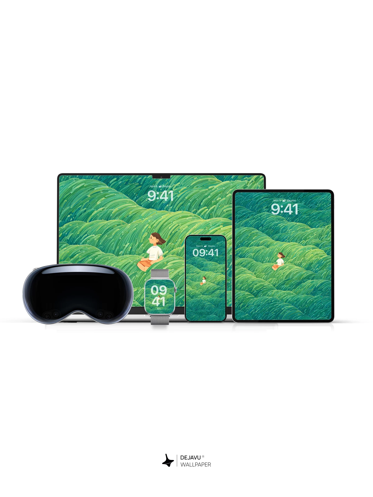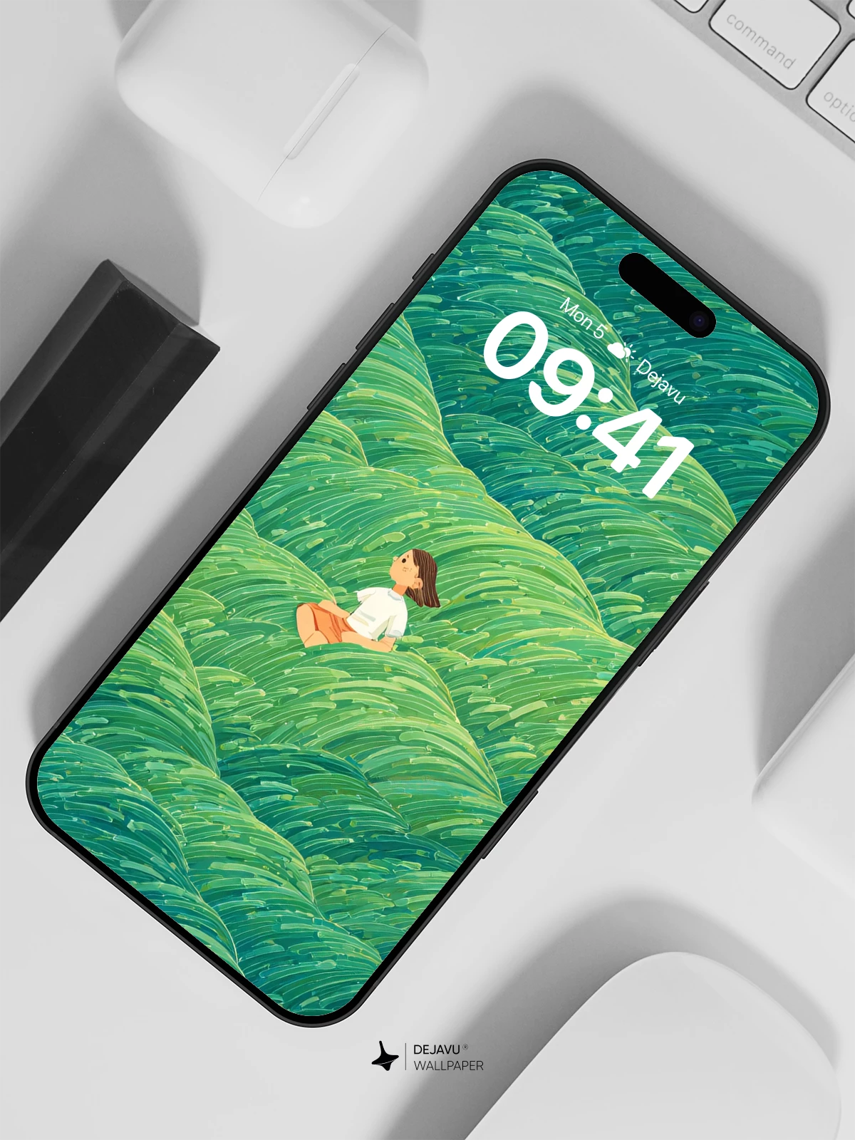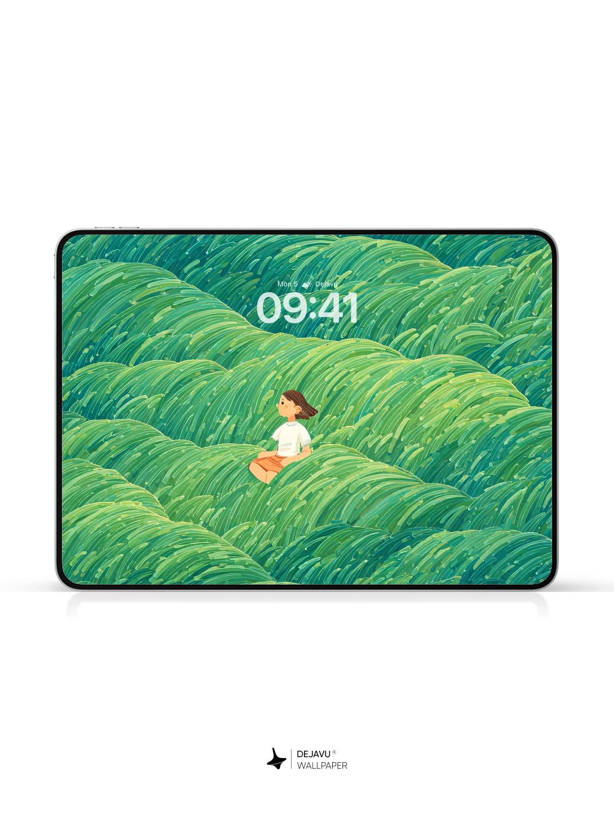 Inspired by the flowing rhythms of traditional Japanese wave art, this surreal 8K wallpaper features a solitary figure nestled within endless undulating green waves. The vivid textures and layered hues evoke a sense of peaceful isolation and natural wonder, making it ideal for iPhone, Android, or tablet screens. Its hypnotic pattern and tranquil atmosphere transform any device into a portal to a serene, imagined landscape.
