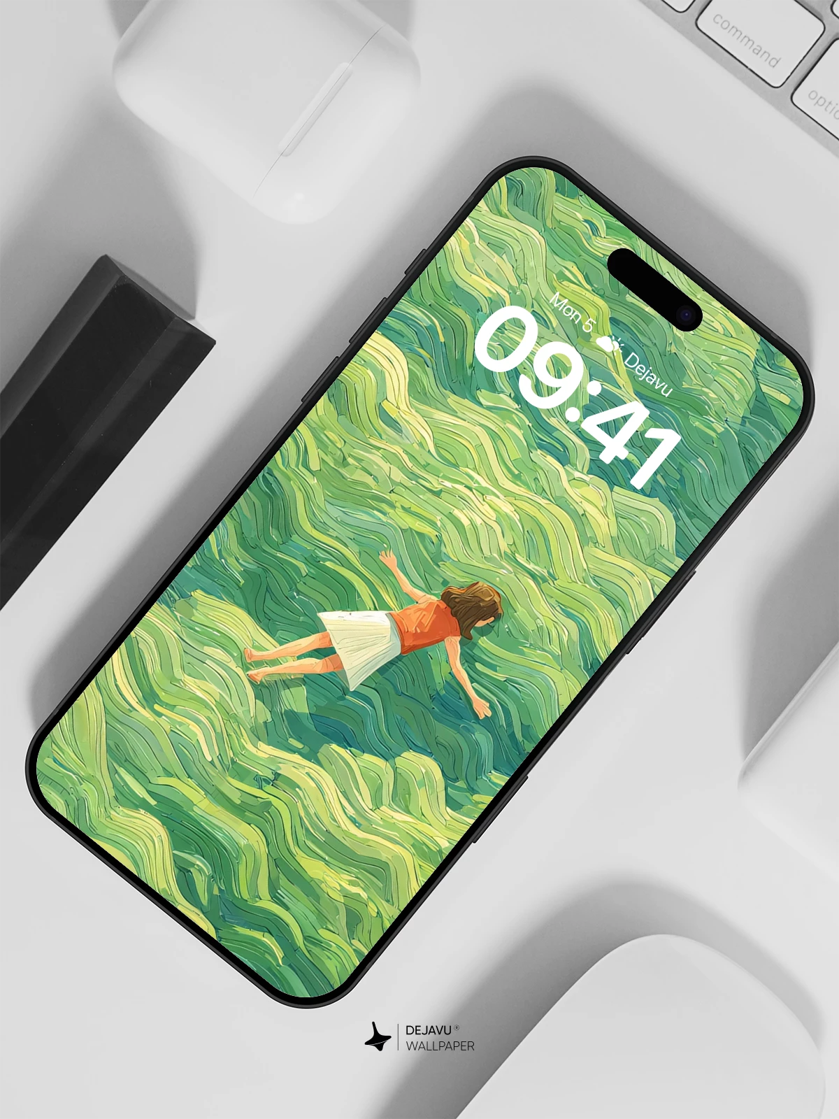Inspired by the expressive brushwork of Van Gogh, this surreal 8K wallpaper captures a lone girl drifting over undulating green waves like a sea of grass. The swirling patterns evoke movement and emotion, creating a tranquil yet dynamic visual experience. Ideal for iPhone, Android, and tablet screens, this artistic design brings a touch of poetic wonder to your device’s home screen.