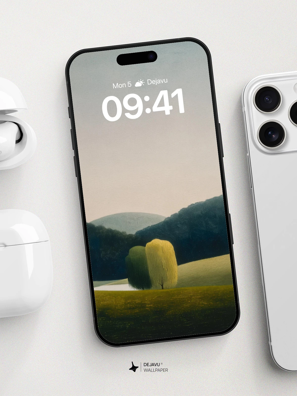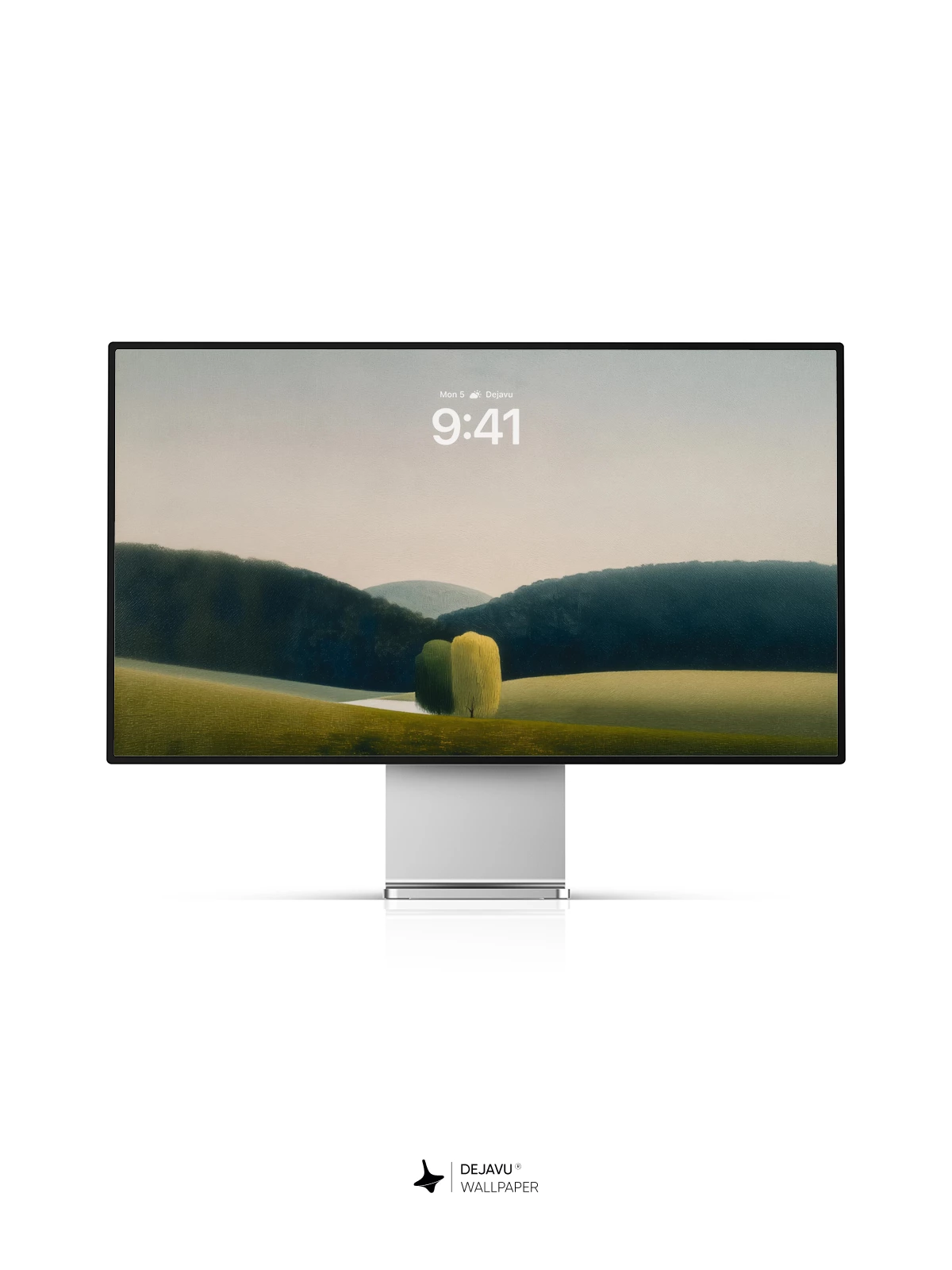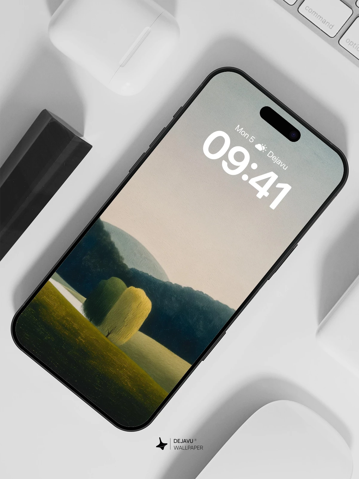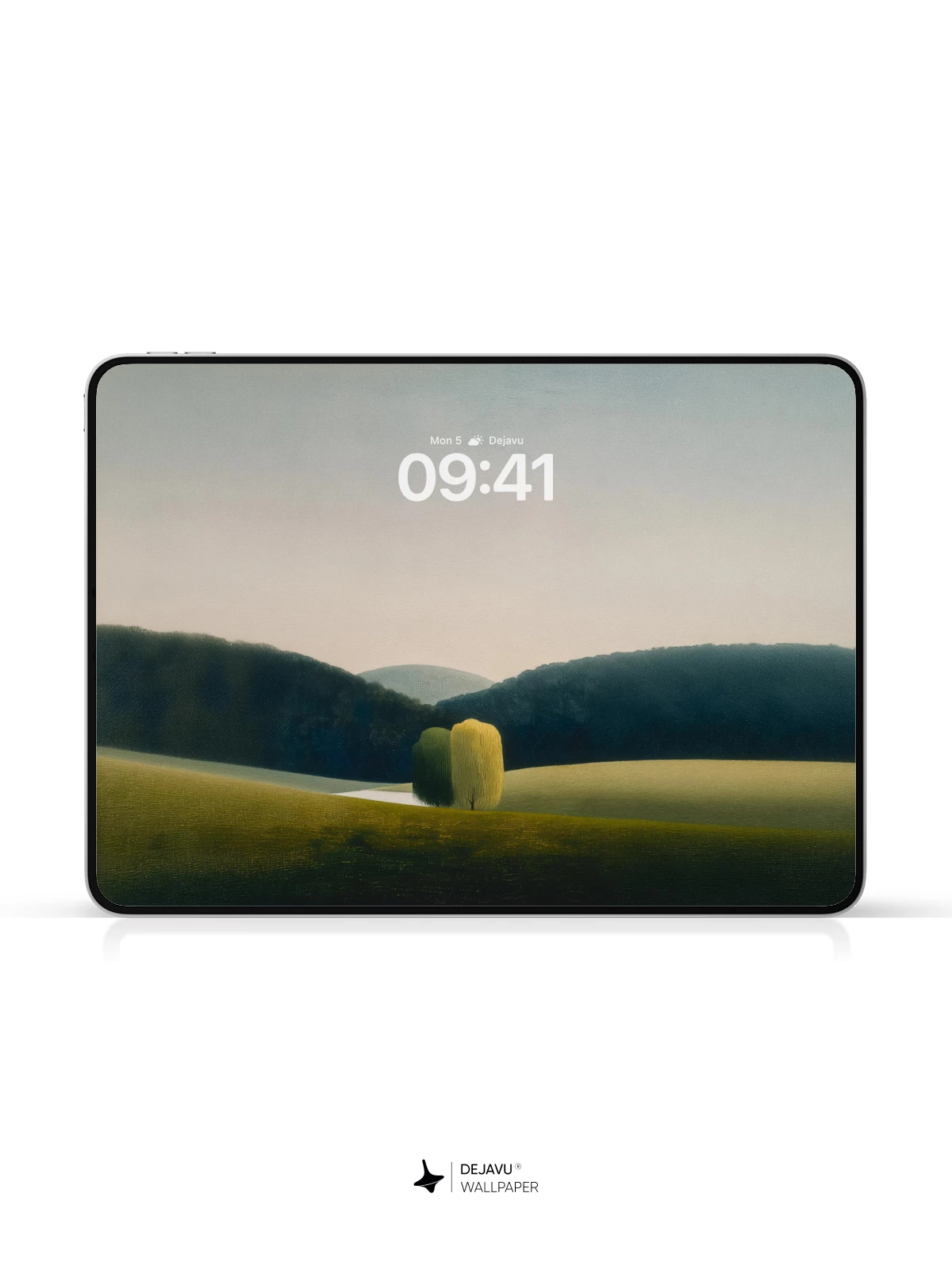 This tranquil 8K wallpaper captures a surreal hillside landscape where rolling green fields meet distant shadowed mountains under a muted sky. A single, rounded tree stands in quiet solitude, evoking a sense of peaceful isolation and timeless beauty. Inspired by modern minimalism and subtle impressionist tones, the image feels both calming and contemplative—ideal for iPhone, Android, or tablet screens seeking elegance and depth. Its soft gradients and balanced composition make it a perfect choice for those who appreciate nature-infused art with a touch of poetic stillness.