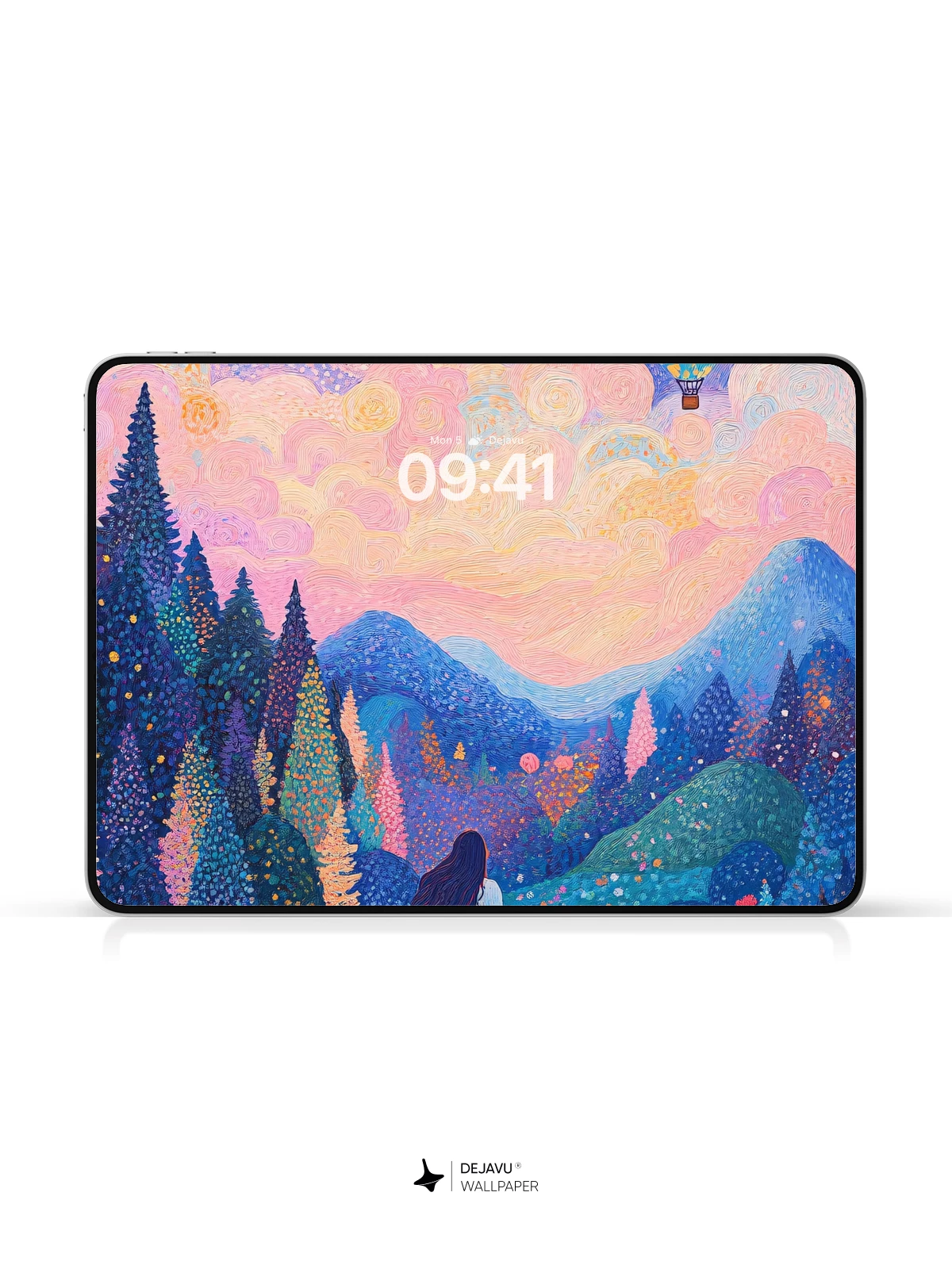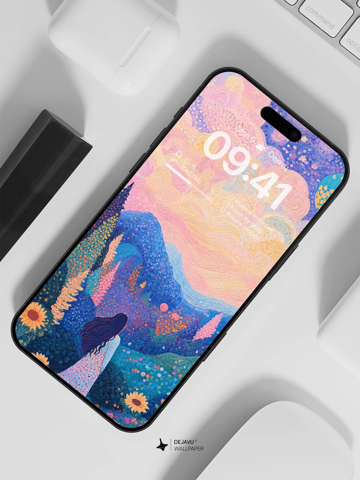Immerse yourself in the enchanting world of a surreal moonlit garden, captured in stunning 8K resolution. This wallpaper, ideal for iPhone and Android devices, features a lone figure wandering through a vibrant landscape filled with sunflowers, whimsical hot air balloons, and softly swirling clouds. The scene evokes a sense of timeless wonder, as if stepping into a magical realm where reality blends with imagination. The rich colors and intricate details make it a captivating choice for enhancing the visual appeal of any mobile device or tablet, bringing a touch of fantasy and tranquility to your everyday experience.