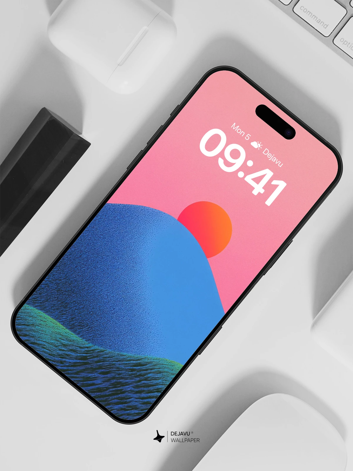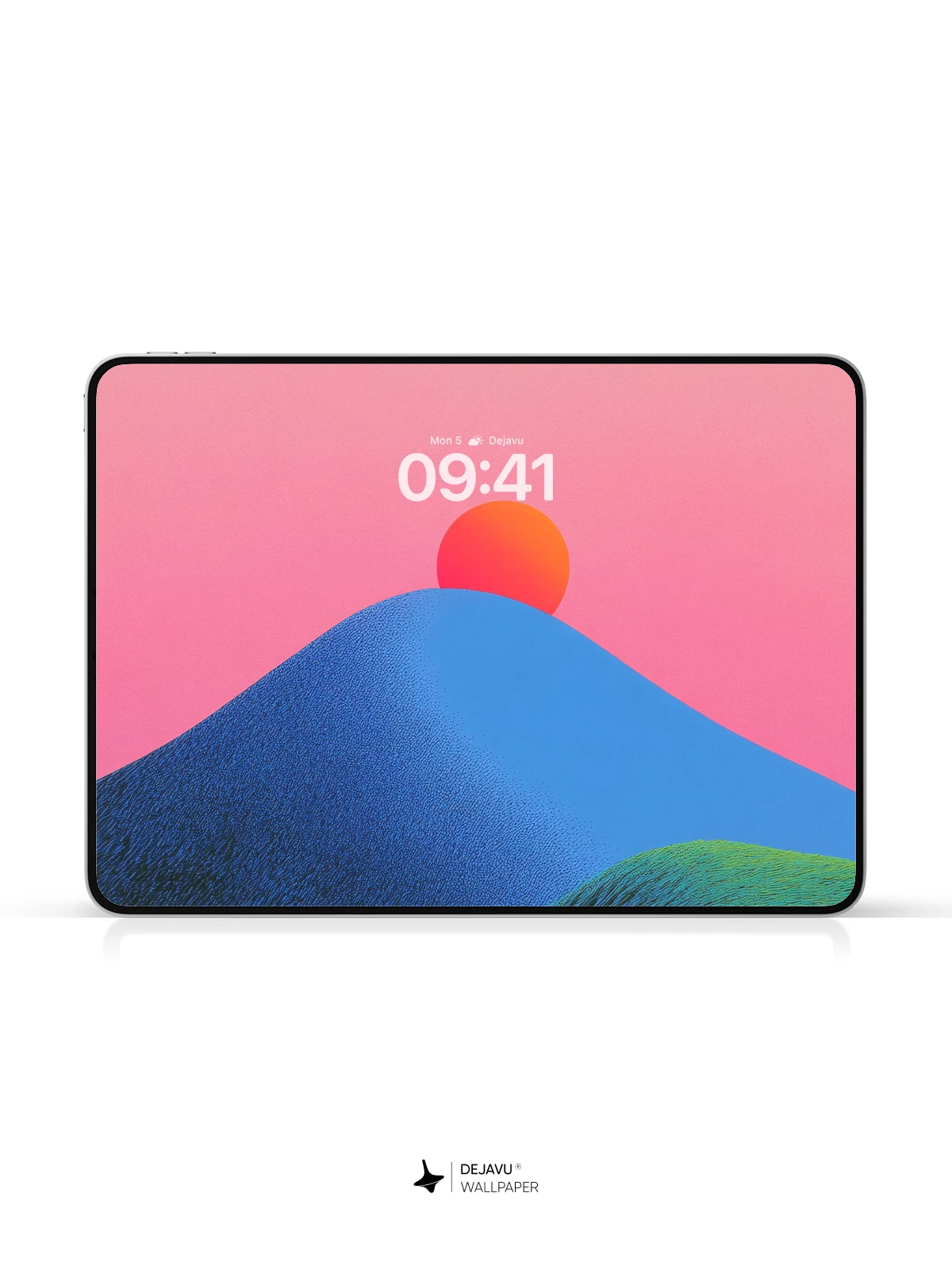 This stunning 8K wallpaper captures a surreal mountain landscape at sunset, where a glowing orange sun hovers above a deep blue peak, casting warmth across rippling green valleys. The textured, wave-like terrain evokes a sense of movement and depth, blending minimalism with poetic emotion. Inspired by contemporary digital art, it’s ideal for iPhone, Android, and tablets seeking a calming yet striking visual experience. Elevate your device with this tranquil, artistic masterpiece.