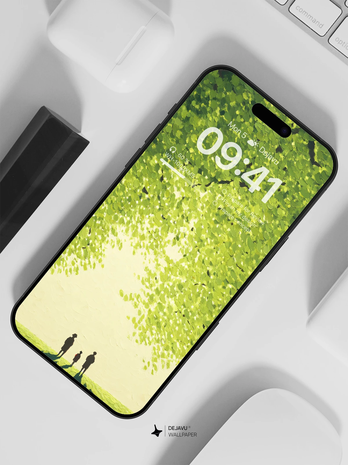 Immerse yourself in the tranquil essence of ‘Surreal Nature Embrace Wallpaper 8K,’ an exquisite digital artwork ideal for your phone. This design captures the silhouettes of figures standing under a vast, vibrant canopy of leaves, symbolizing unity with nature. The soft, diffused light filtering through the foliage creates a peaceful, almost mystical atmosphere, evoking feelings of solitude and reflection. Perfectly optimized for both iPhone and Android devices, this high-resolution wallpaper brings a touch of natural elegance to your screen, enhancing any mobile or tablet setup. Whether you seek inspiration from the great outdoors or simply appreciate fine artistry, this wallpaper promises a daily dose of calm and beauty.