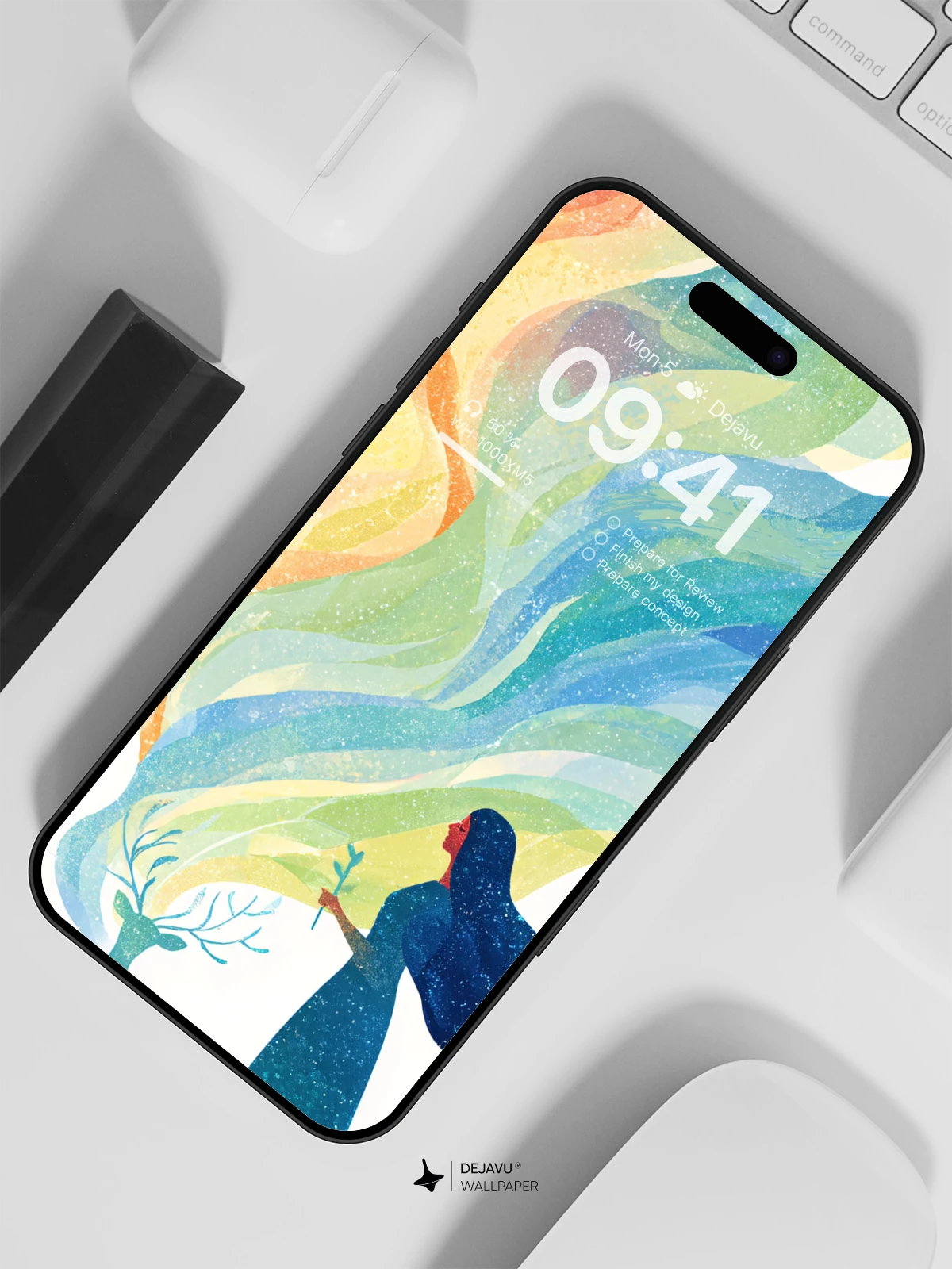 Immerse yourself in the enchanting world of ‘Surreal Nature Harmony Wallpaper 8K,’ where a serene woman and a graceful deer stand amidst a backdrop of vivid, flowing hues. This dreamlike scene evokes a sense of timeless connection with nature, as if the very air is alive with magic. The artwork’s fluid lines and radiant palette make it an ideal choice for enhancing the visual appeal of your iPhone or Android device, bringing a touch of fantasy and elegance to your everyday experience. Whether viewed on a phone, tablet, or any screen, this wallpaper promises to inspire and delight, transforming your digital space into a realm of wonder and tranquility.