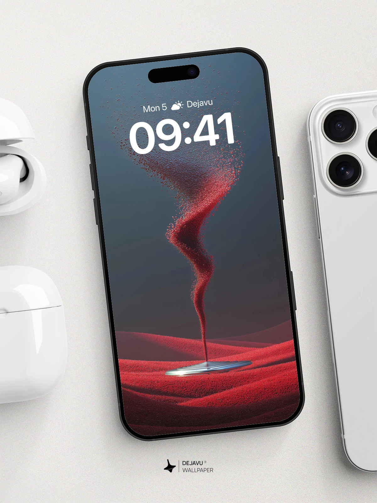 This surreal digital artwork captures a swirling vortex of crimson particles rising from a luminous disc atop undulating red terrain, evoking mystery and cosmic energy. Inspired by dreamlike landscapes and fluid dynamics, the scene blends abstract motion with otherworldly elegance, making it an ideal high-resolution wallpaper for iPhone, Android, and tablets. The rich textures and dynamic composition create a captivating visual experience, perfect for those who appreciate artistry in their mobile aesthetics.