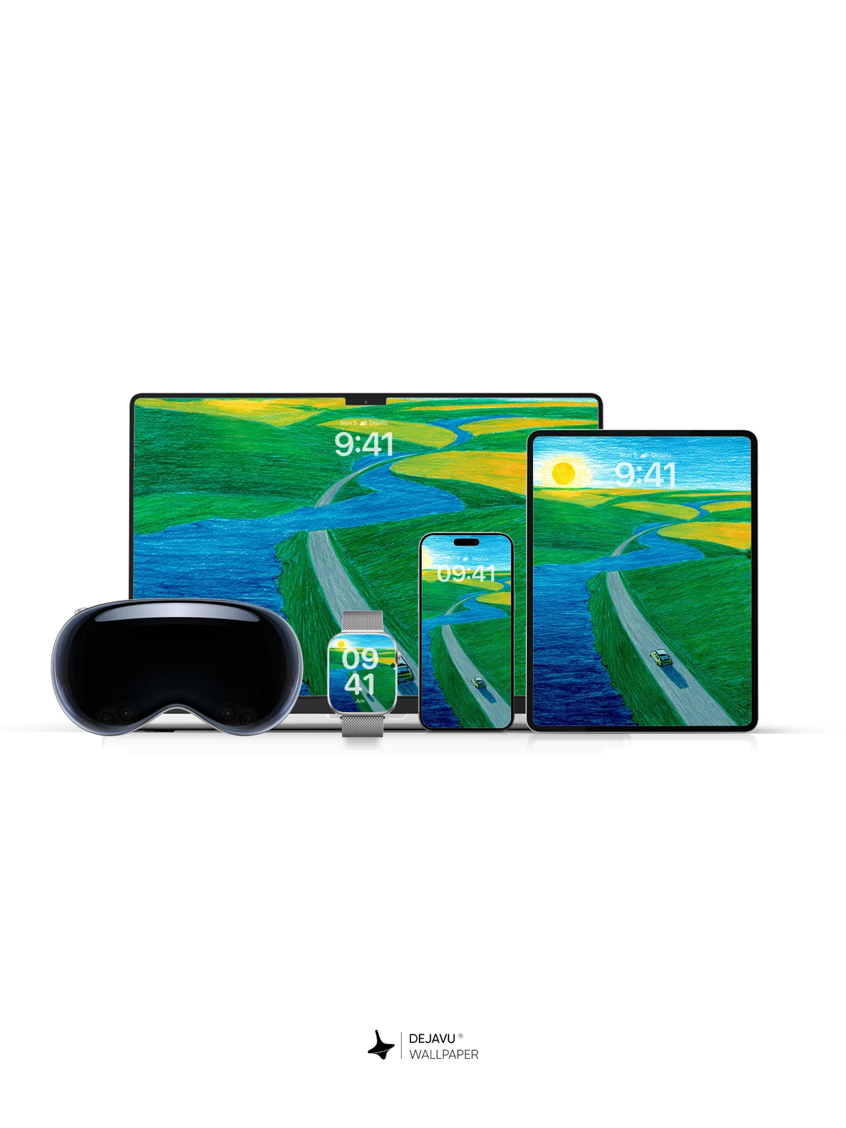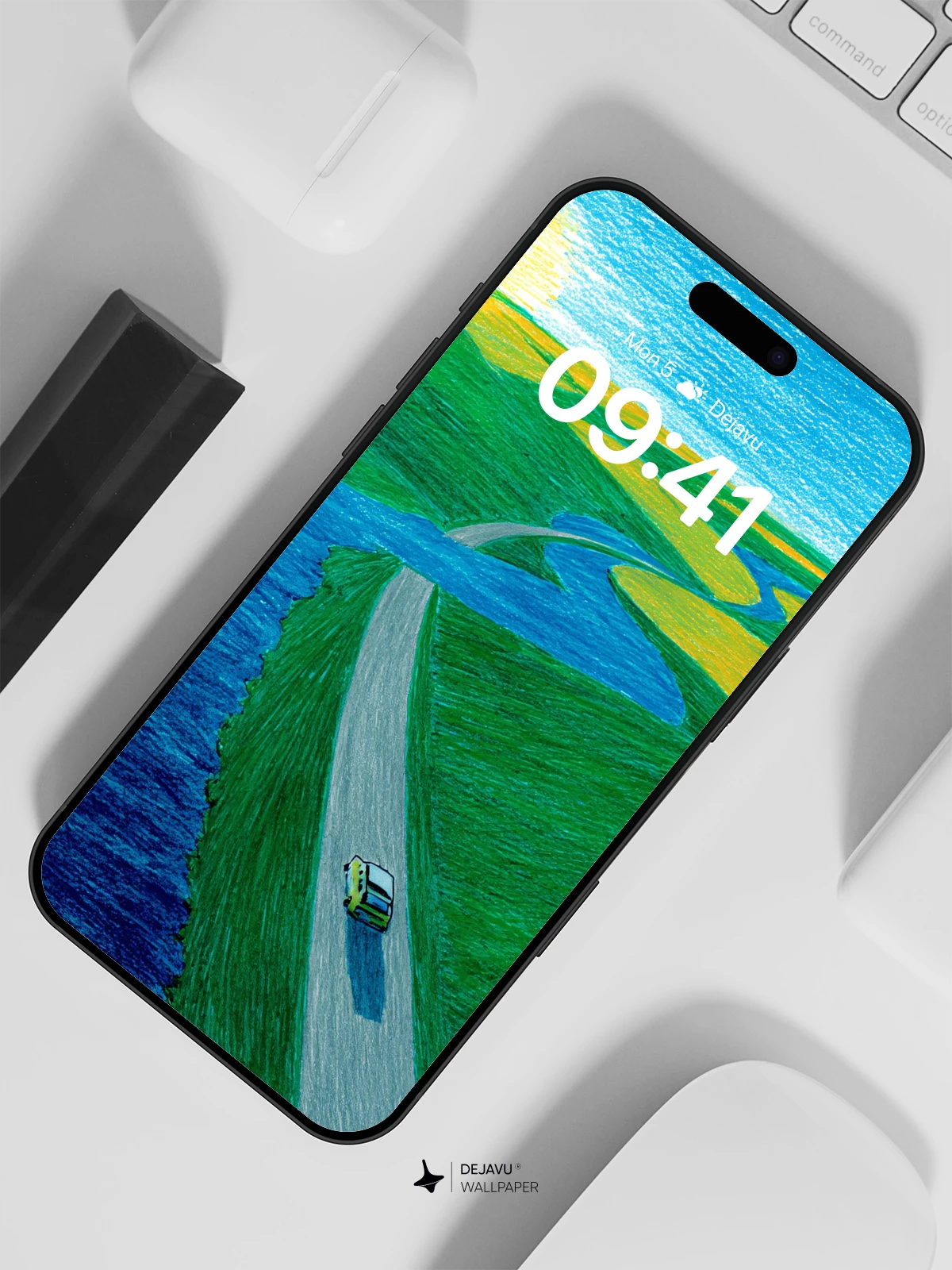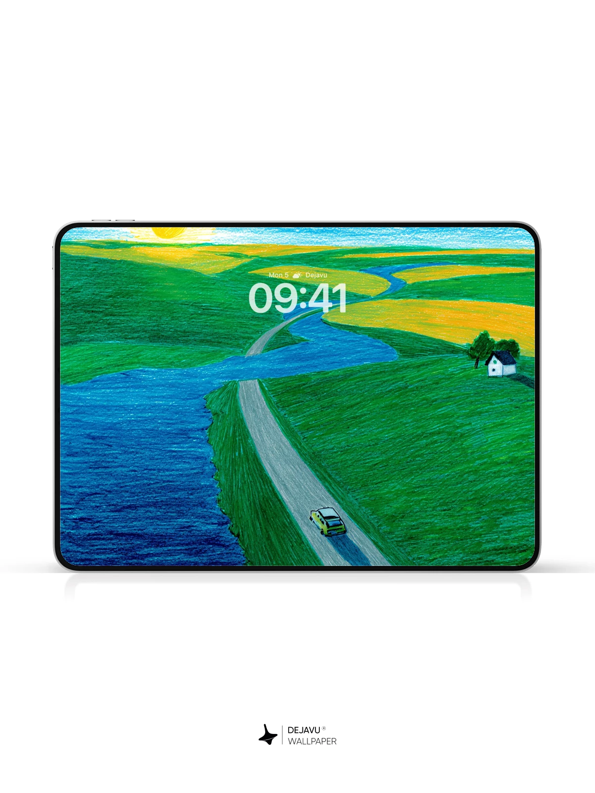 This surreal artwork captures a serene journey along a curving road beside a tranquil river, under a radiant sun. With bold colors and flowing forms reminiscent of Van Gogh’s dynamic style, the painting evokes peace and wonder. Ideal as an 8K wallpaper for iPhone, Android, or tablets, it transforms your device into a portal to pastoral beauty. The harmonious blend of greens, yellows, and blues creates a calming yet vibrant atmosphere—perfect for daily inspiration.