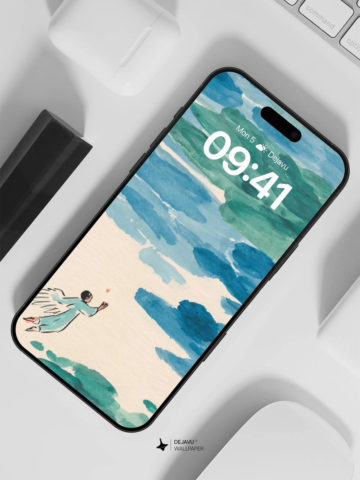 This ethereal watercolor artwork captures a solitary figure soaring through a sky painted in fluid blues and greens, reaching toward a glowing sun. Inspired by the dreamy, expressive style of modern surrealist illustrators, the composition evokes a sense of liberation and wonder. The soft brushstrokes and dynamic movement make it an ideal 8K wallpaper for iPhone, Android, or tablets—bringing tranquility and imagination to your screen.