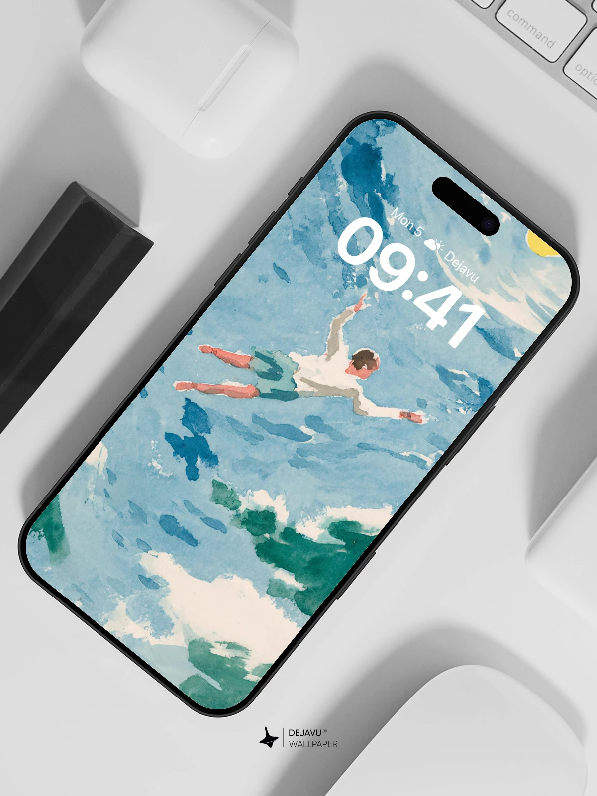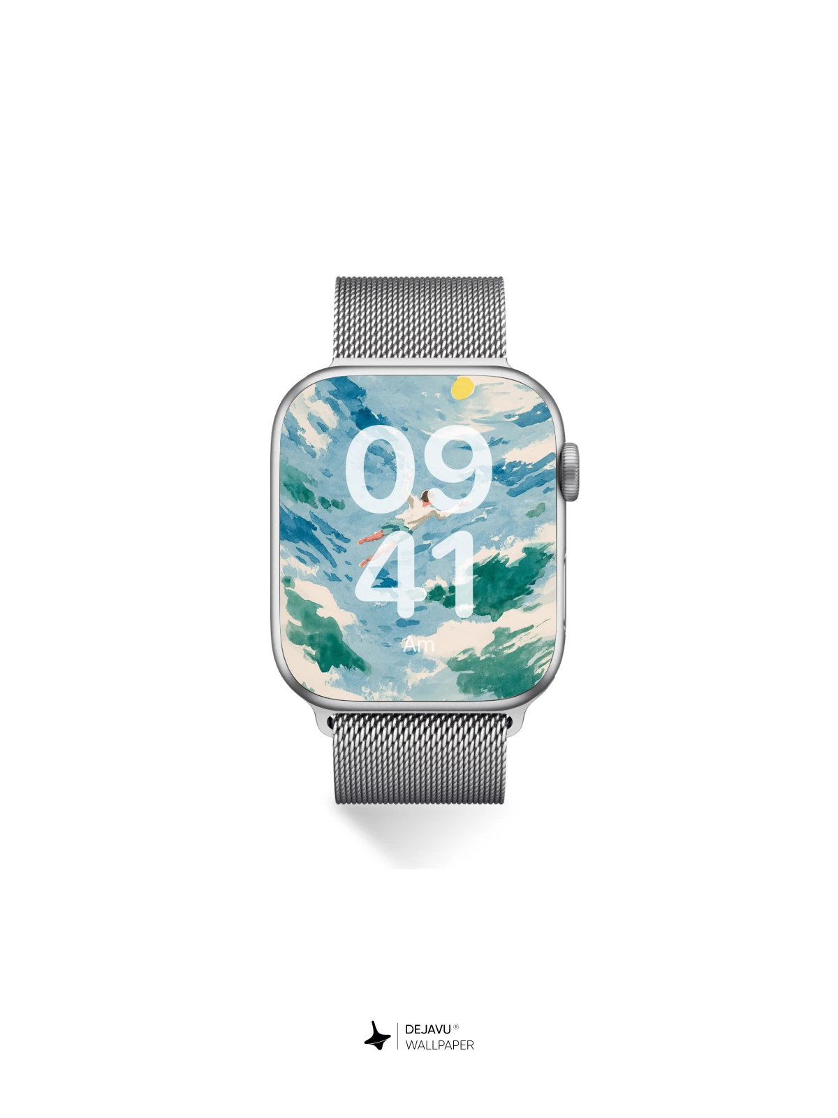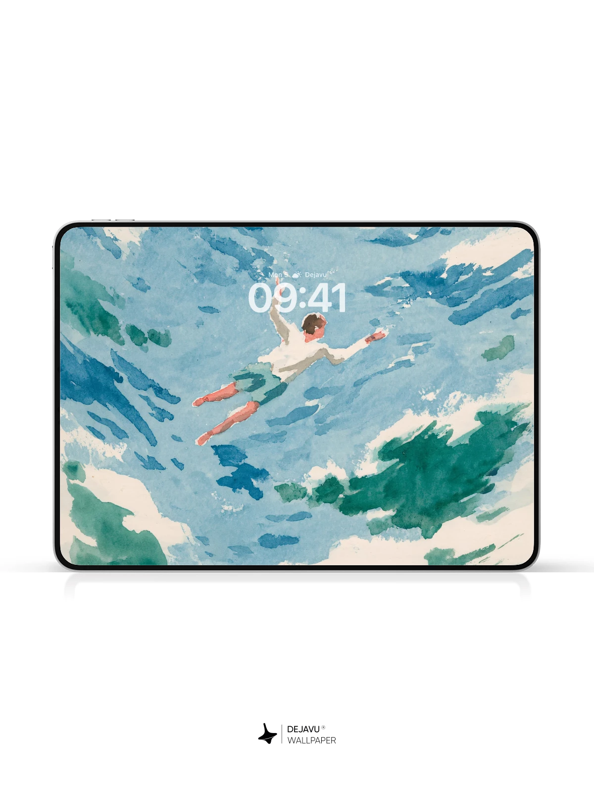 This captivating watercolor artwork reimagines the boundary between sky and sea, with a solitary figure drifting through swirling blues and greens beneath a radiant yellow sun. Inspired by the fluidity and emotion of impressionist brushwork, it evokes a sense of weightless freedom and inner peace. Ideal as an 8K wallpaper for iPhone, Android, or tablet, this surreal design transforms your device into a portal to a tranquil, dreamlike world.