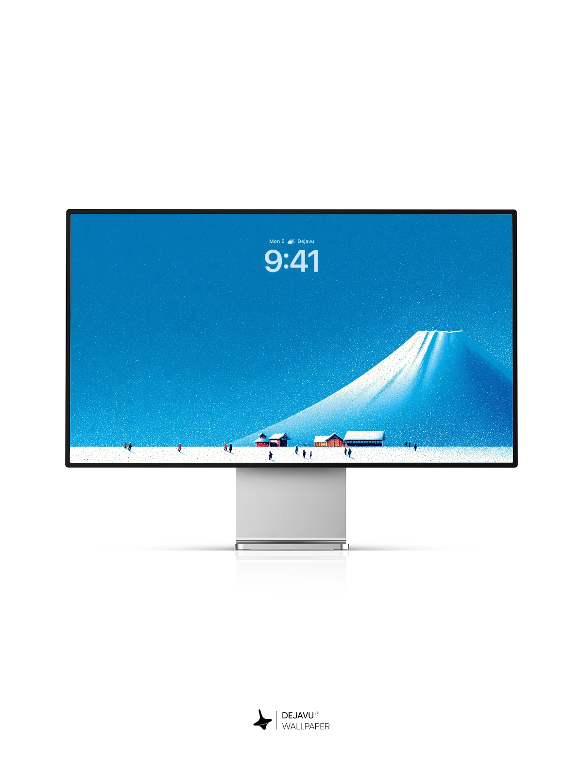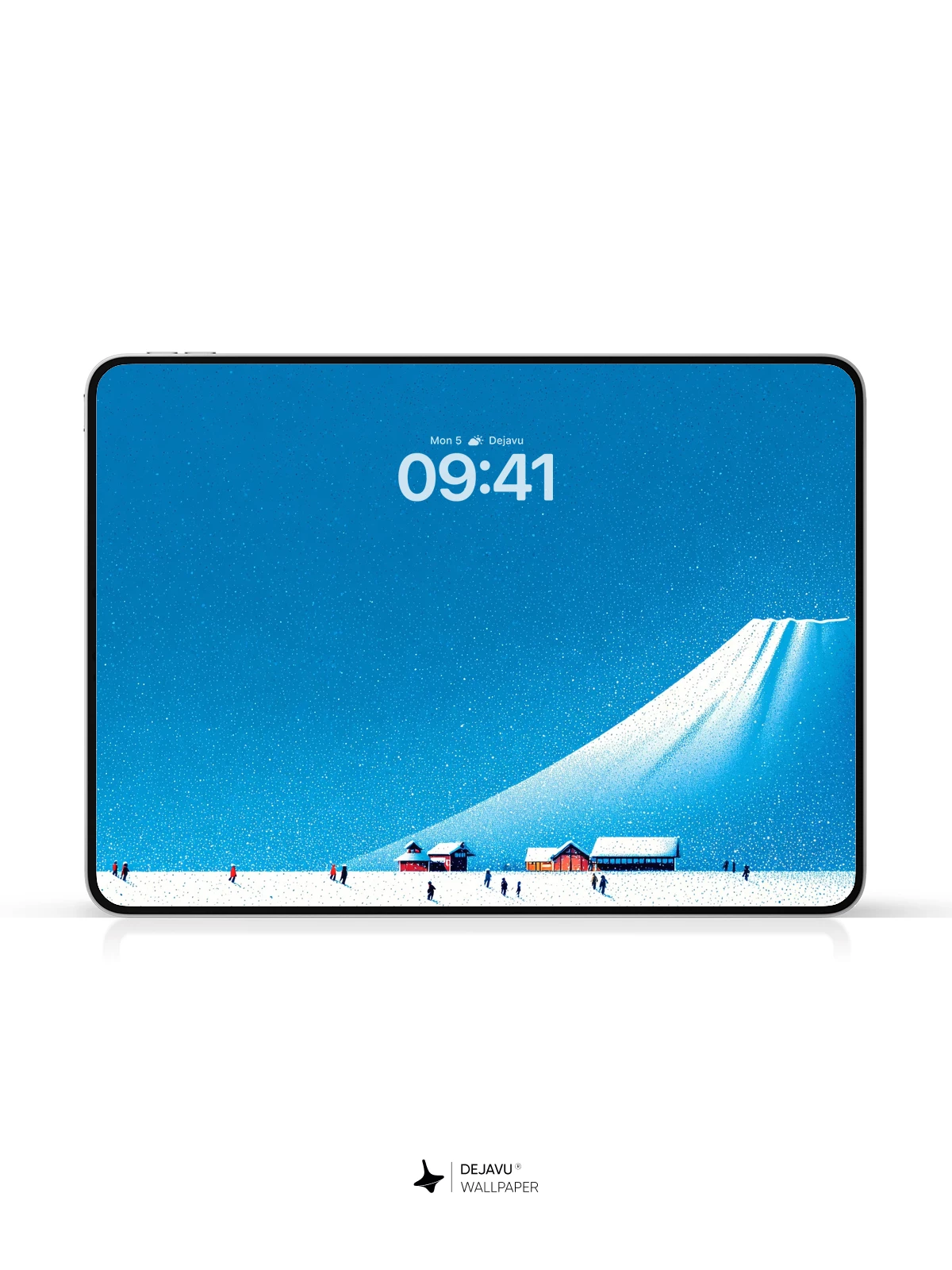 This surreal snowscape evokes a sense of serene isolation and timeless beauty, where a radiant, pyramid-like mountain dominates the horizon under a vast azure sky. Inspired by the minimalist elegance of modern digital art, the scene blends crisp geometric forms with soft atmospheric depth, creating a dreamlike winter landscape. Ideal as an 8K wallpaper for iPhone, Android, or tablets, it brings calm and clarity to your device with its clean lines, subtle textures, and poetic stillness.