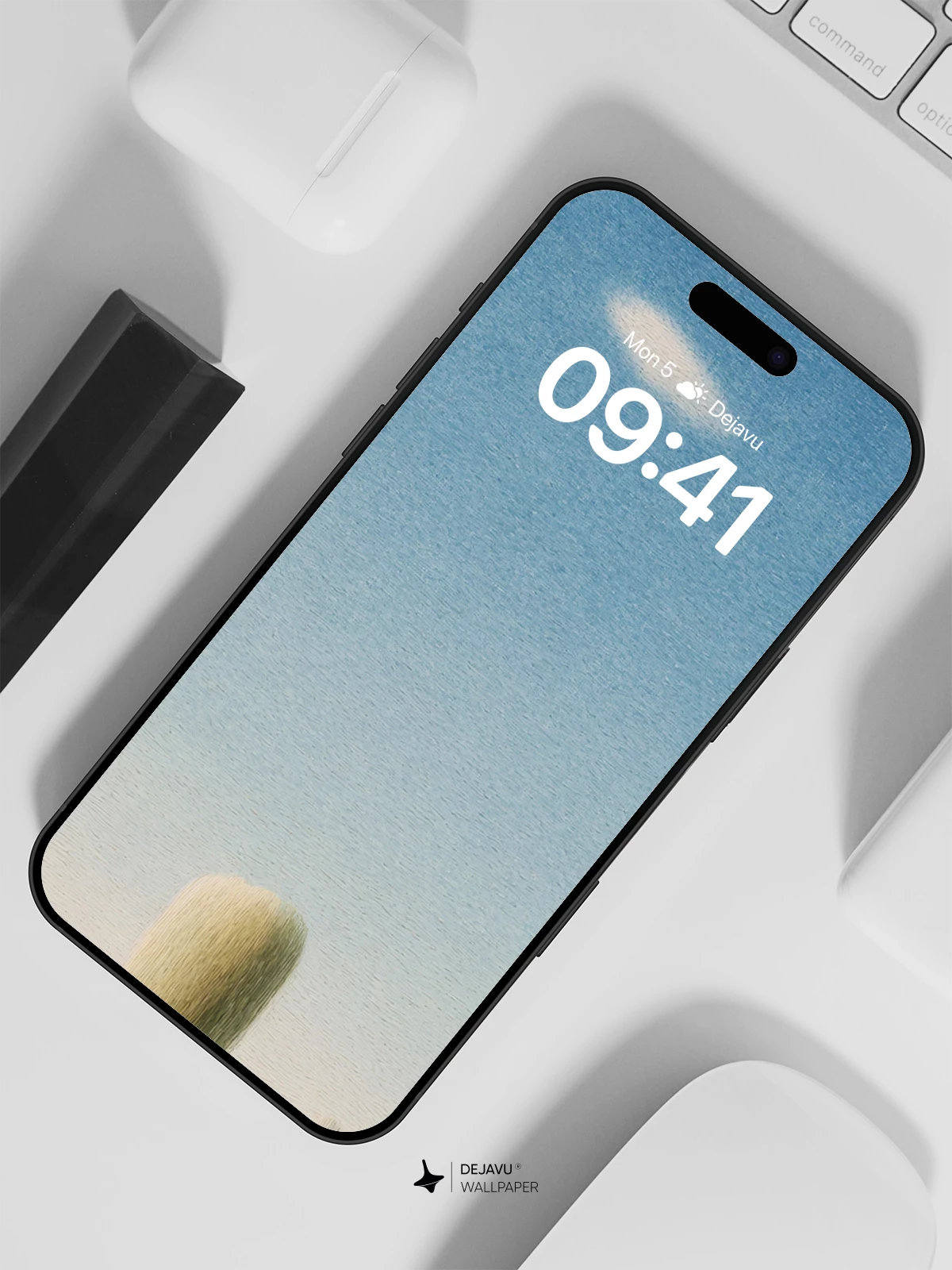This tranquil landscape evokes the quiet stillness of nature, where a lone willow stands on a gentle hill beneath an expansive blue sky dotted by a single cloud. The soft, textured brushwork and minimalist composition create a meditative atmosphere, ideal for calming digital spaces. Inspired by the poetic realism of modern landscape art, this 8K wallpaper brings timeless serenity to your iPhone, Android, or tablet screen.