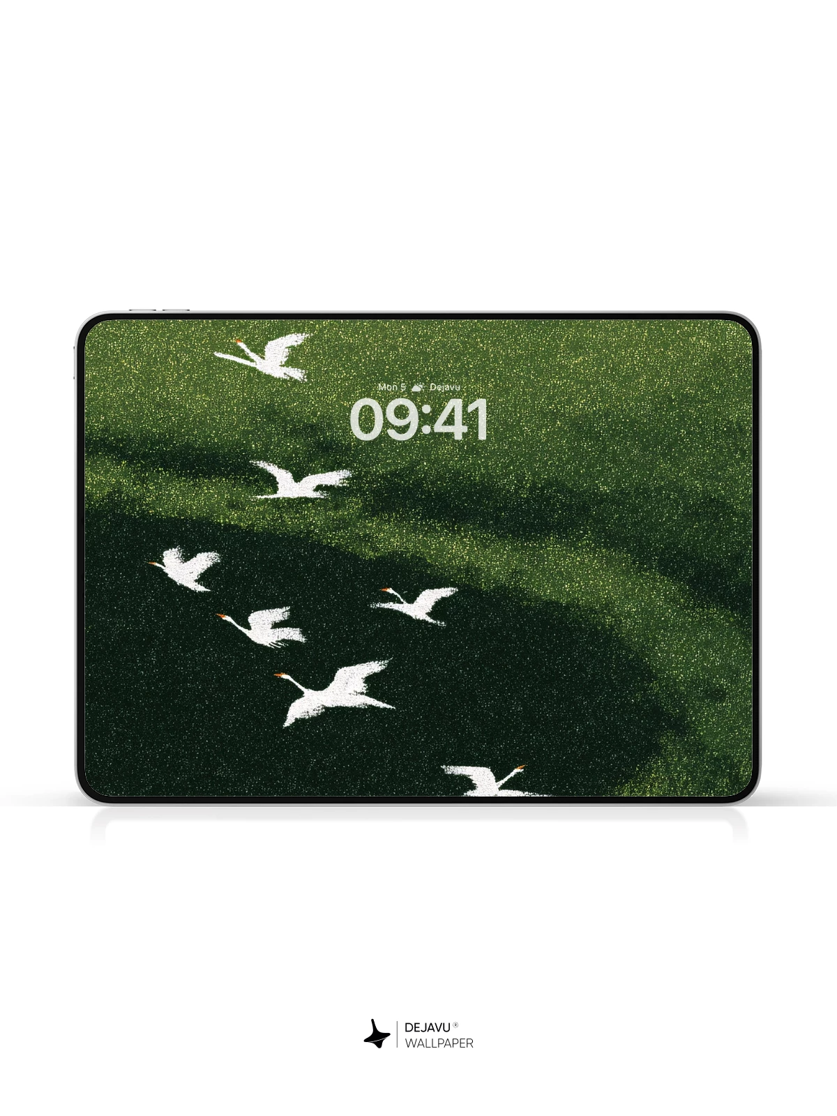 Inspired by the quiet poetry of nature, this 8K wallpaper captures a flock of swans gliding across a rolling hillside, their white forms contrasting against vibrant greens and shadowed depths. The composition evokes a sense of peaceful motion and natural harmony, ideal for calming your digital space. With its rich textures and atmospheric lighting, it’s a stunning choice for iPhone, Android, or tablet users seeking a serene and artistic backdrop.