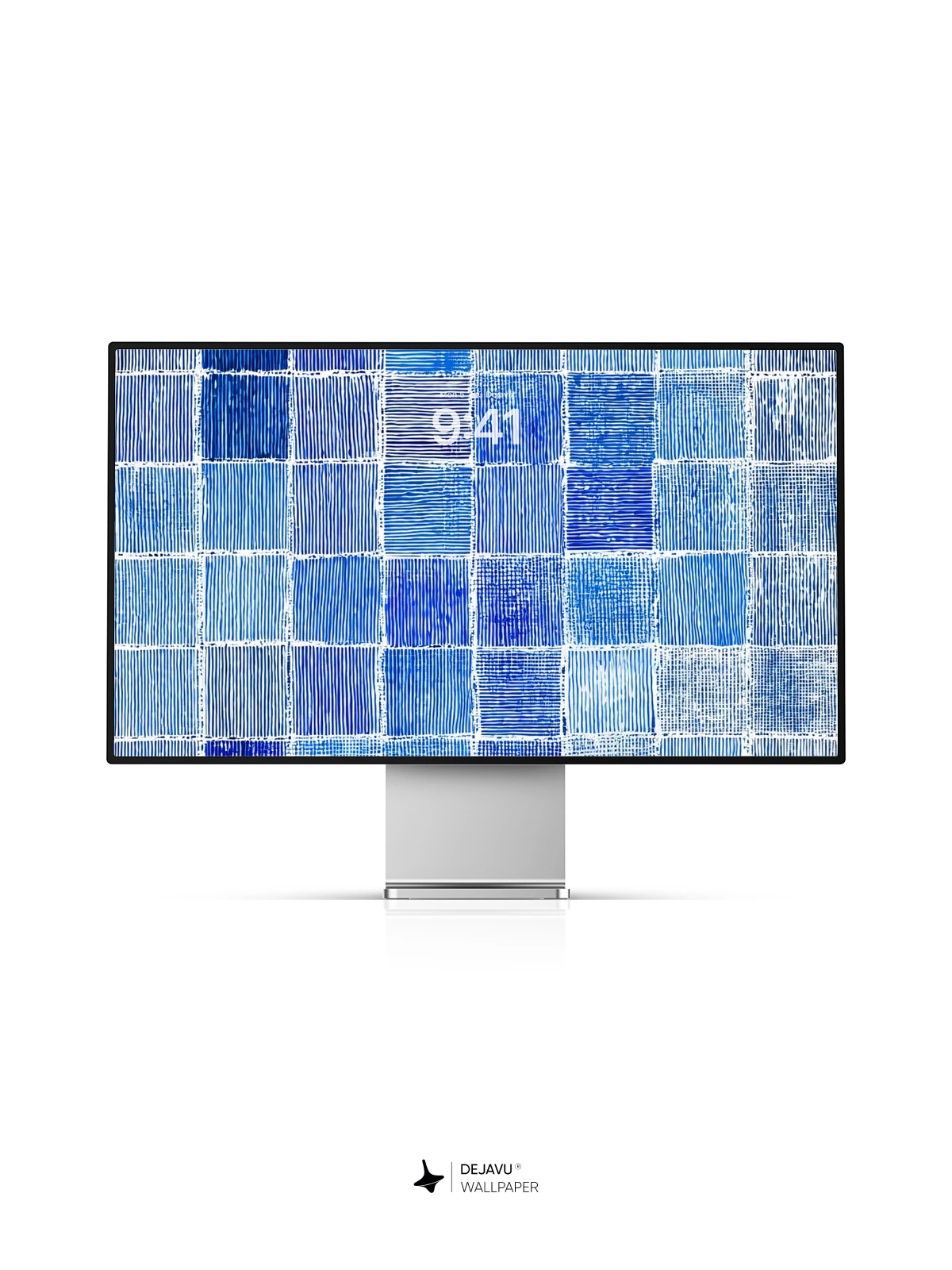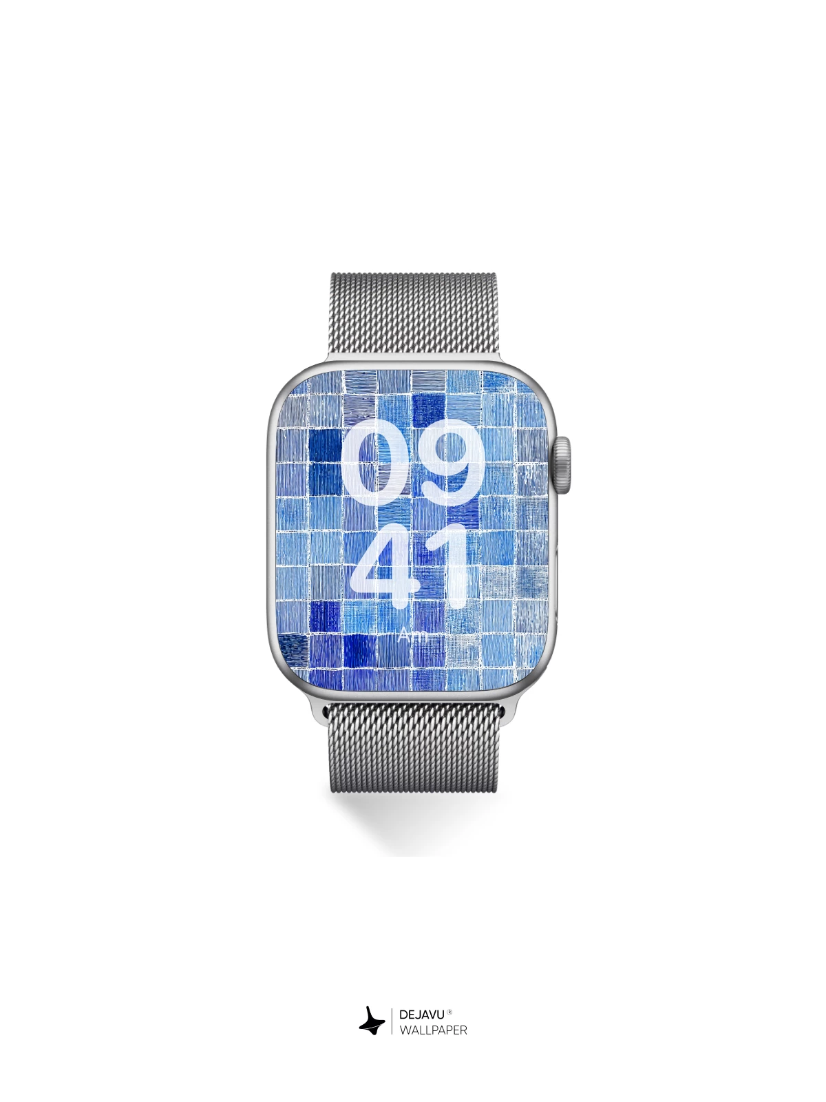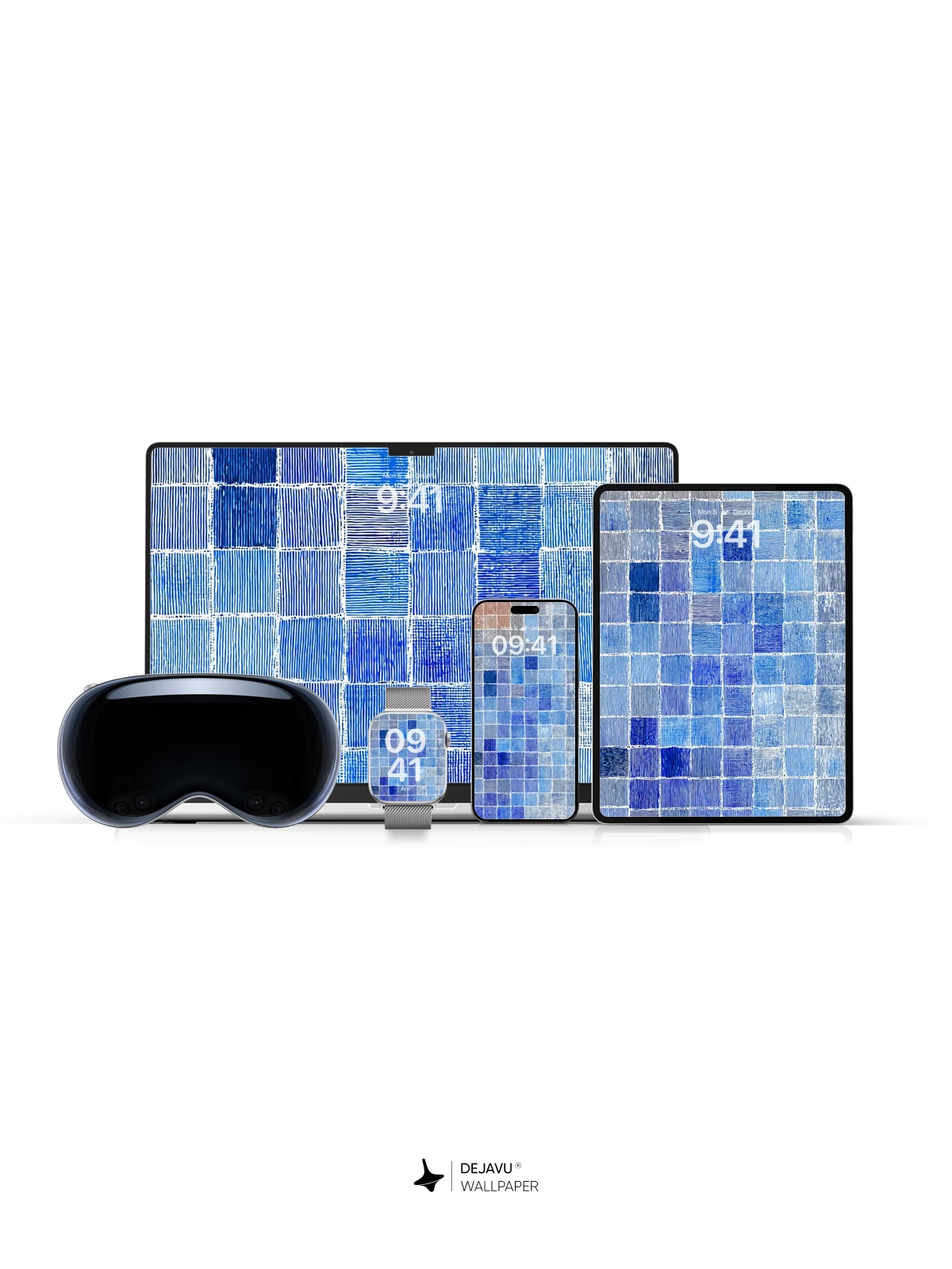 This wallpaper features a textured blue mosaic design, with each tile displaying unique shades of blue and subtle striations. The composition evokes a sense of tranquility, making it ideal for those seeking a soothing backdrop on their mobile devices. Compatible with iPhone, Android, and tablets, this high-resolution 8K image ensures crisp detail on any screen.