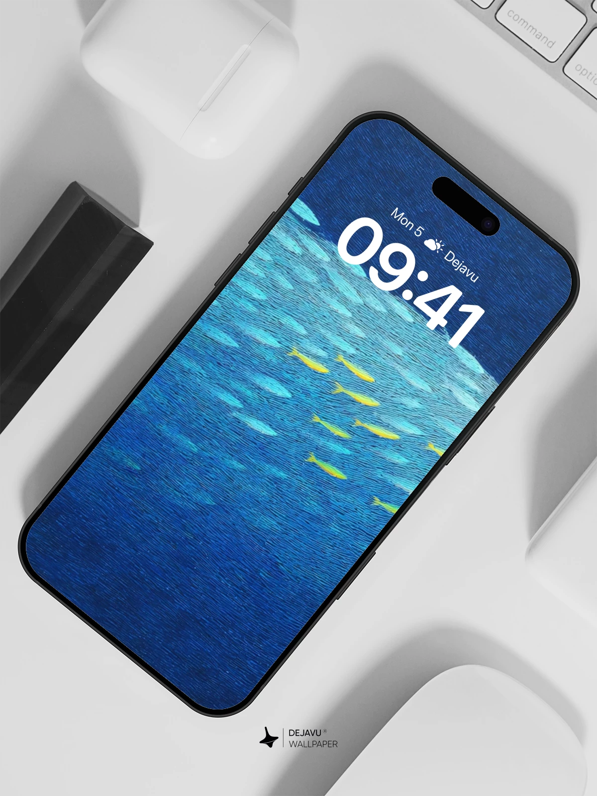 This breathtaking 8K wallpaper captures the serene beauty of the deep blue ocean, where thousands of silver fish form a dynamic, flowing spiral—like a living wave beneath the sea. At the heart of the formation, a cluster of bright yellow fish adds a striking contrast, evoking wonder and harmony. Ideal for iPhone, Android, and tablets, this high-resolution image immerses you in nature’s quiet grandeur, perfect for those who appreciate tranquil yet captivating visuals. Let the rhythm of the deep sea transform your mobile background into a moment of aquatic serenity.