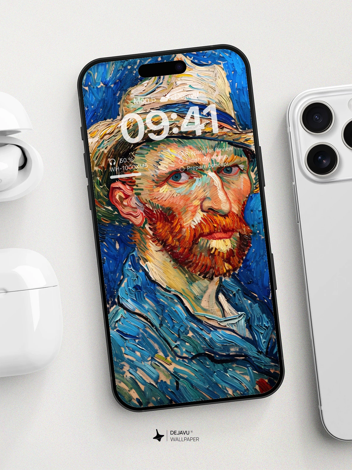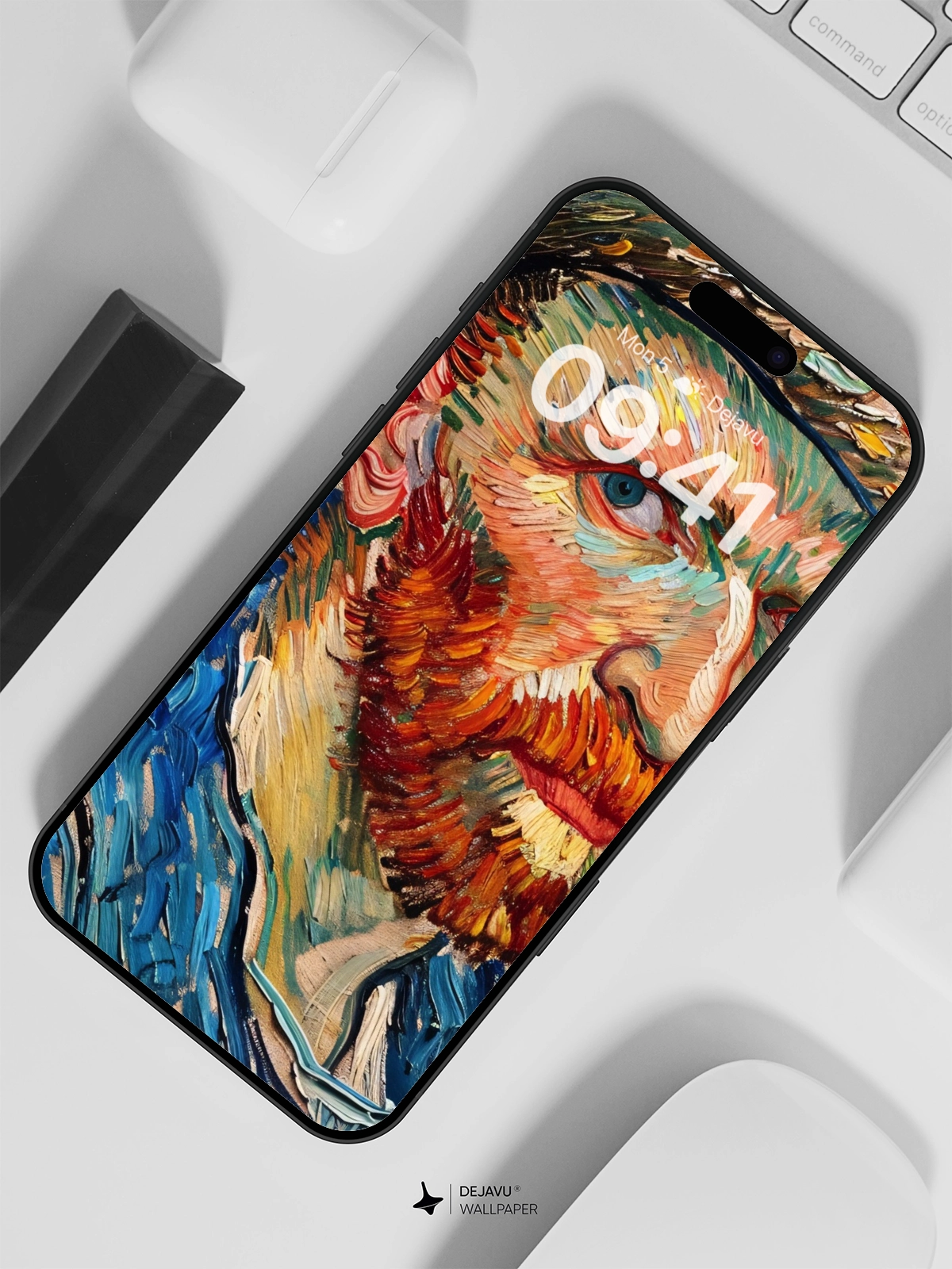 Explore the intricate details of Van Gogh’s self-portrait in this 8K wallpaper. The vibrant colors and expressive brushstrokes capture the essence of his genius, making it a perfect addition to your iPhone or Android device.