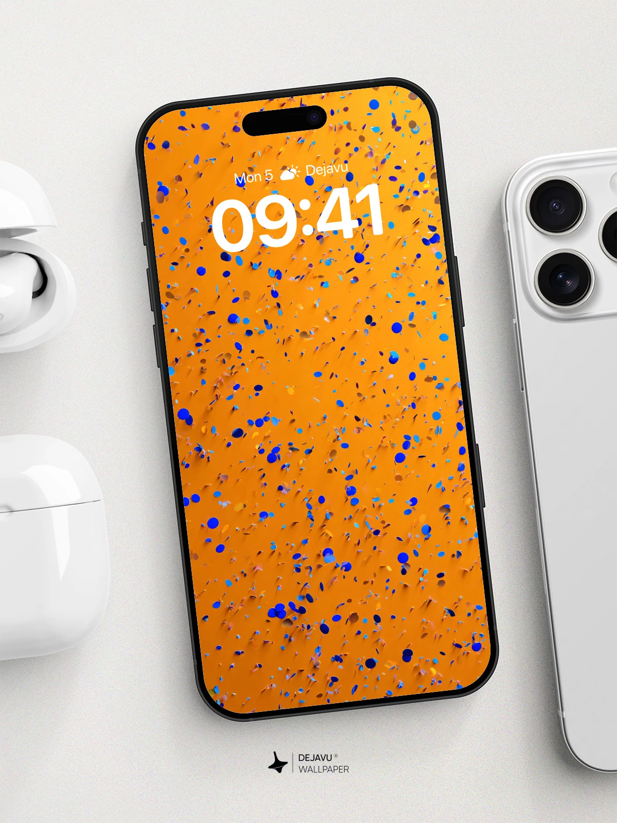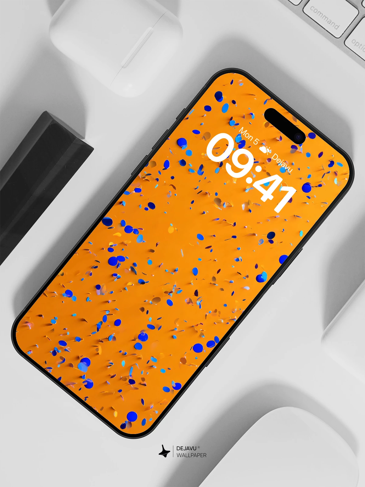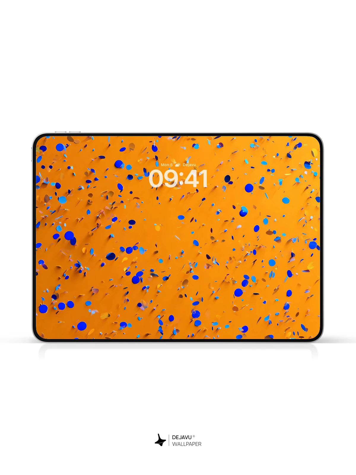 This striking 8K wallpaper features a joyful explosion of blue confetti scattered across a vivid orange background, creating a lively and celebratory atmosphere. The energetic contrast between the cool blues and warm orange evokes feelings of excitement and creativity, making it a vibrant choice for any mobile device. Designed with crisp detail and rich color depth, it’s ideal for iPhone, Android, and tablets, bringing a pop of personality to your digital space.