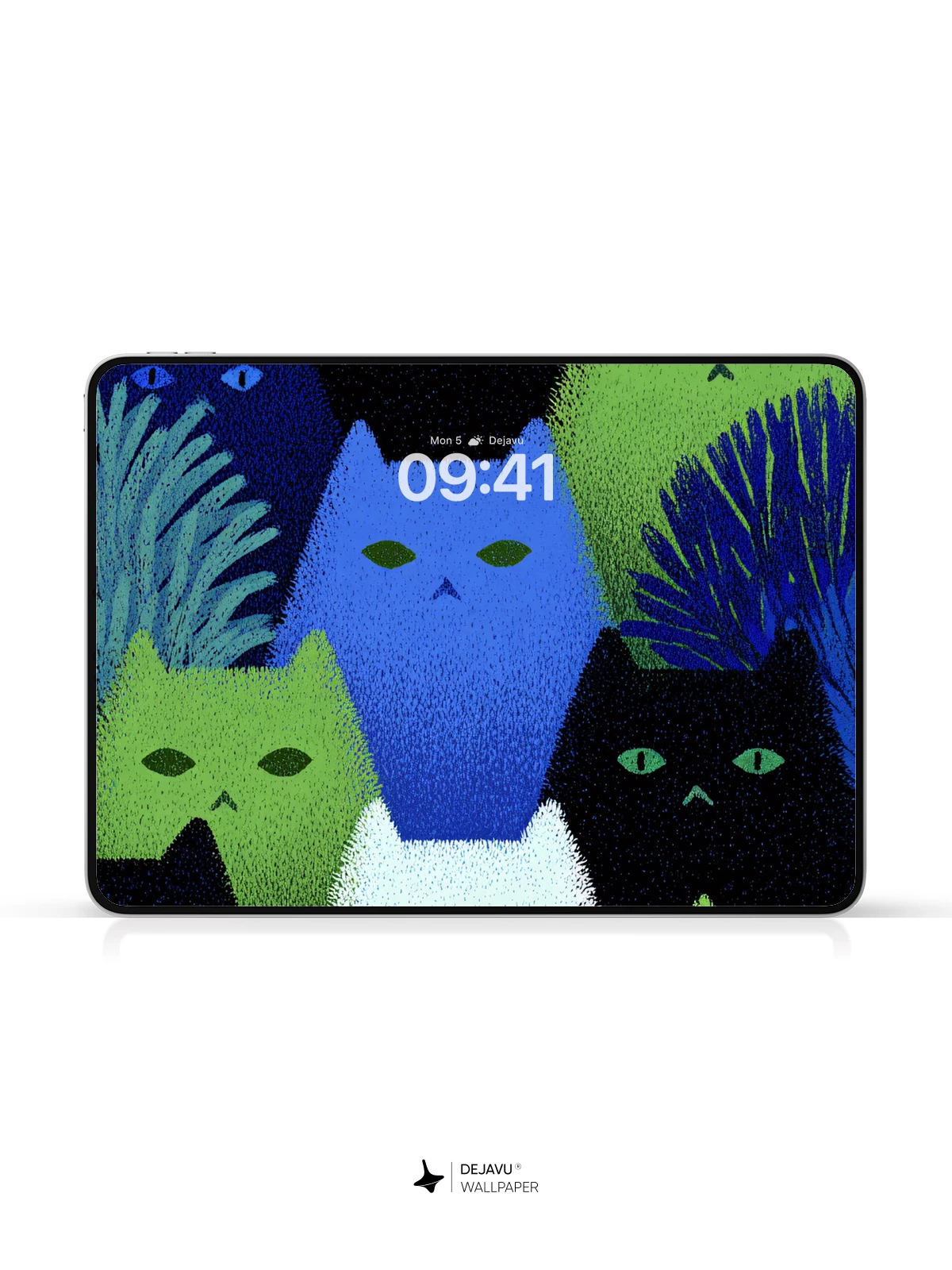 Experience the whimsical charm of a vibrant feline gathering in this stunning 8K wallpaper. Inspired by modern illustrative art, the image features an array of cats in bold hues of blue, green, and black, set against a dark, dreamlike backdrop. Each cat, with its unique expression and glowing eyes, invites you into a world of fantasy and intrigue. Perfectly optimized for both iPhone and Android devices, this wallpaper transforms any screen into a captivating piece of art. Whether you’re seeking a playful touch or a mystical vibe, this design delivers a blend of creativity and elegance that enhances any mobile or tablet setup.