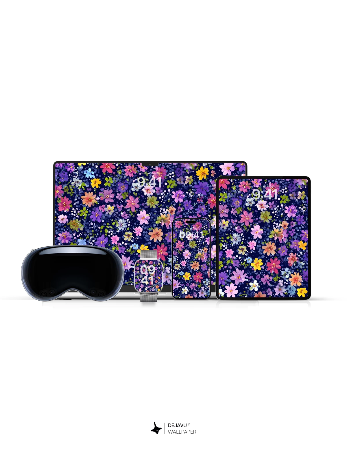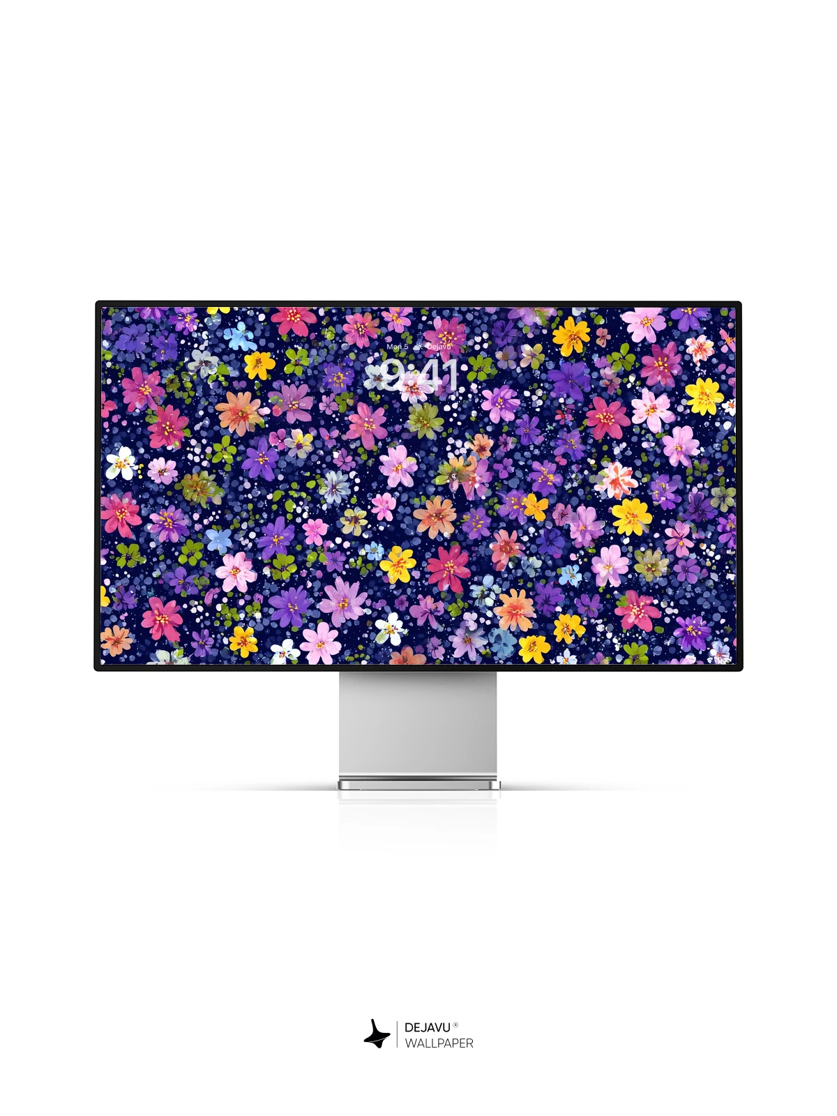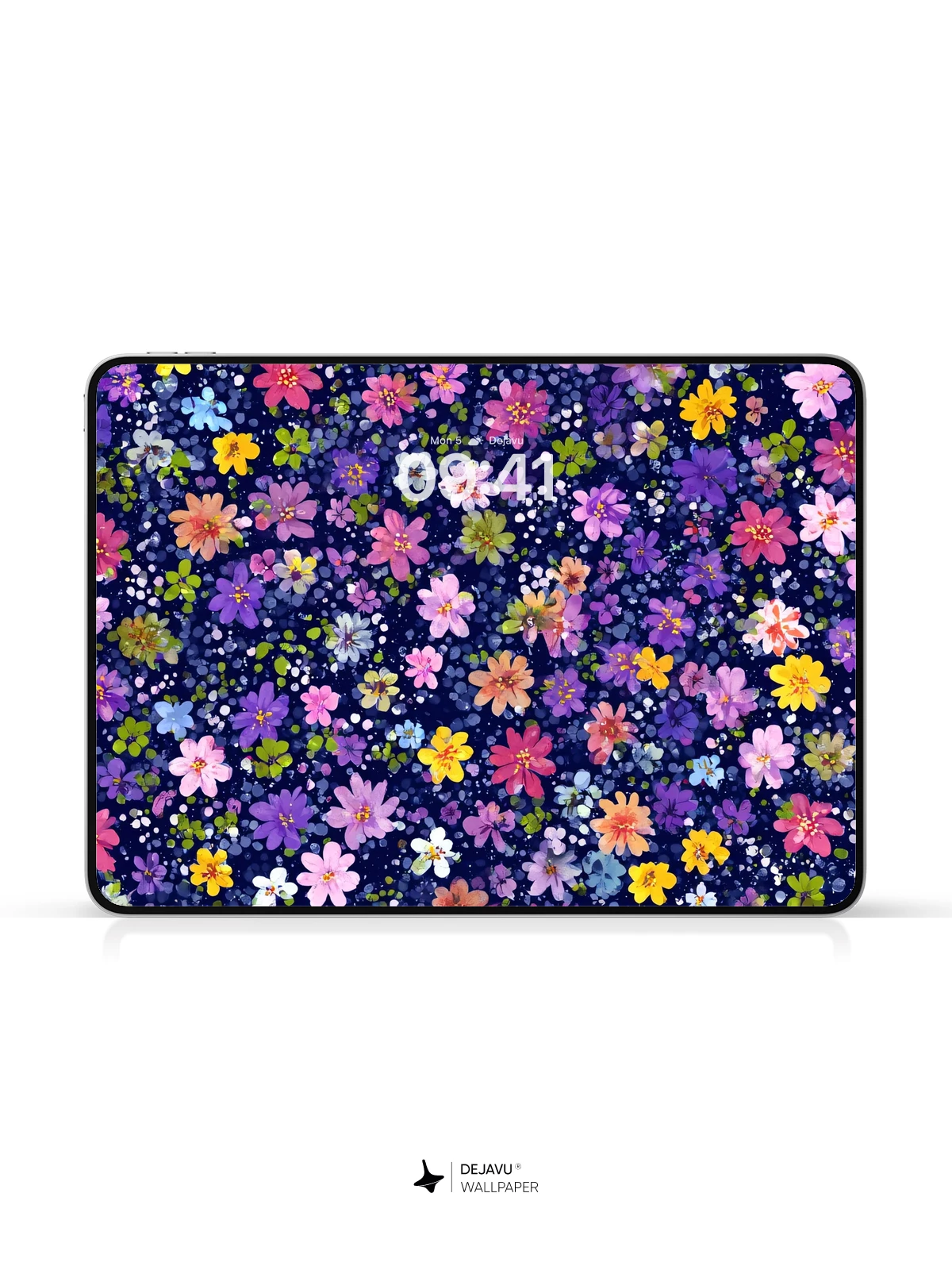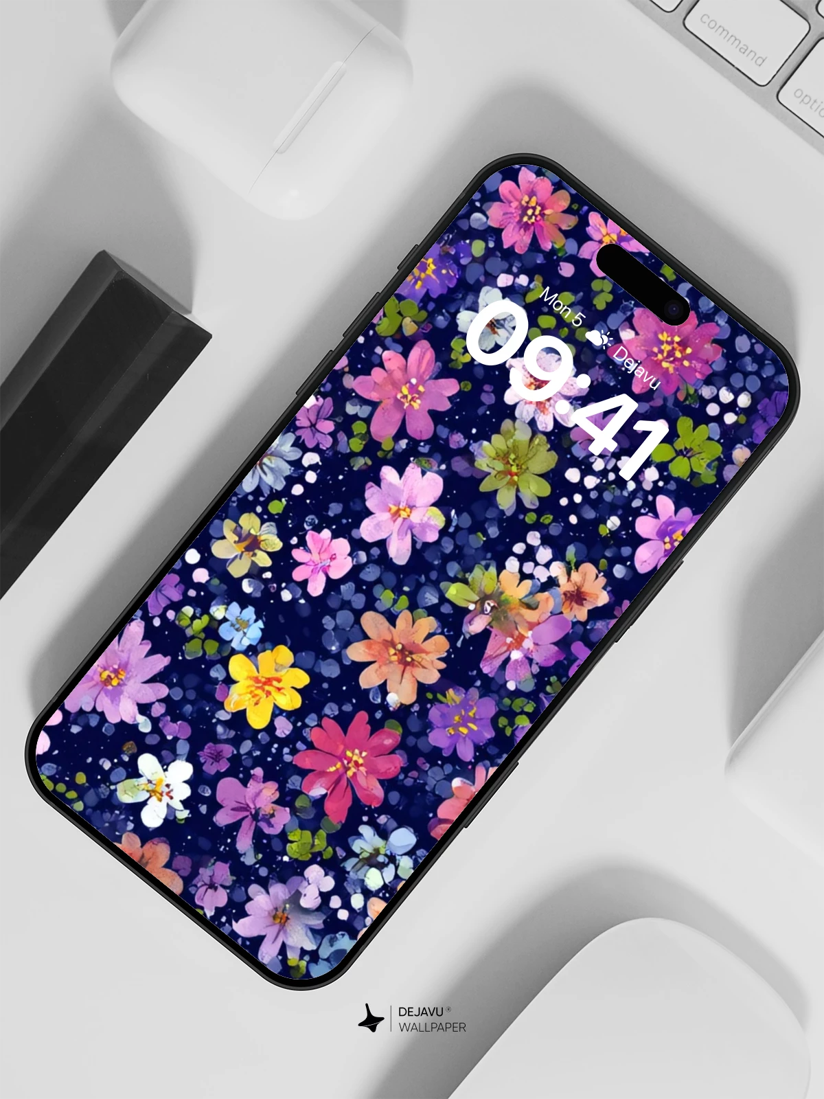 This enchanting 8K wallpaper features a lush tapestry of vivid flowers in pinks, purples, yellows, and whites, scattered across a rich navy backdrop like a dreamy meadow at twilight. Each bloom is delicately illustrated, creating a whimsical yet sophisticated pattern that brings the beauty of spring to your device. Whether you’re using an iPhone or Android phone, this high-resolution design enhances any mobile interface with its cheerful energy and timeless floral elegance. Perfect for those who love nature-inspired aesthetics with a touch of artistic flair.