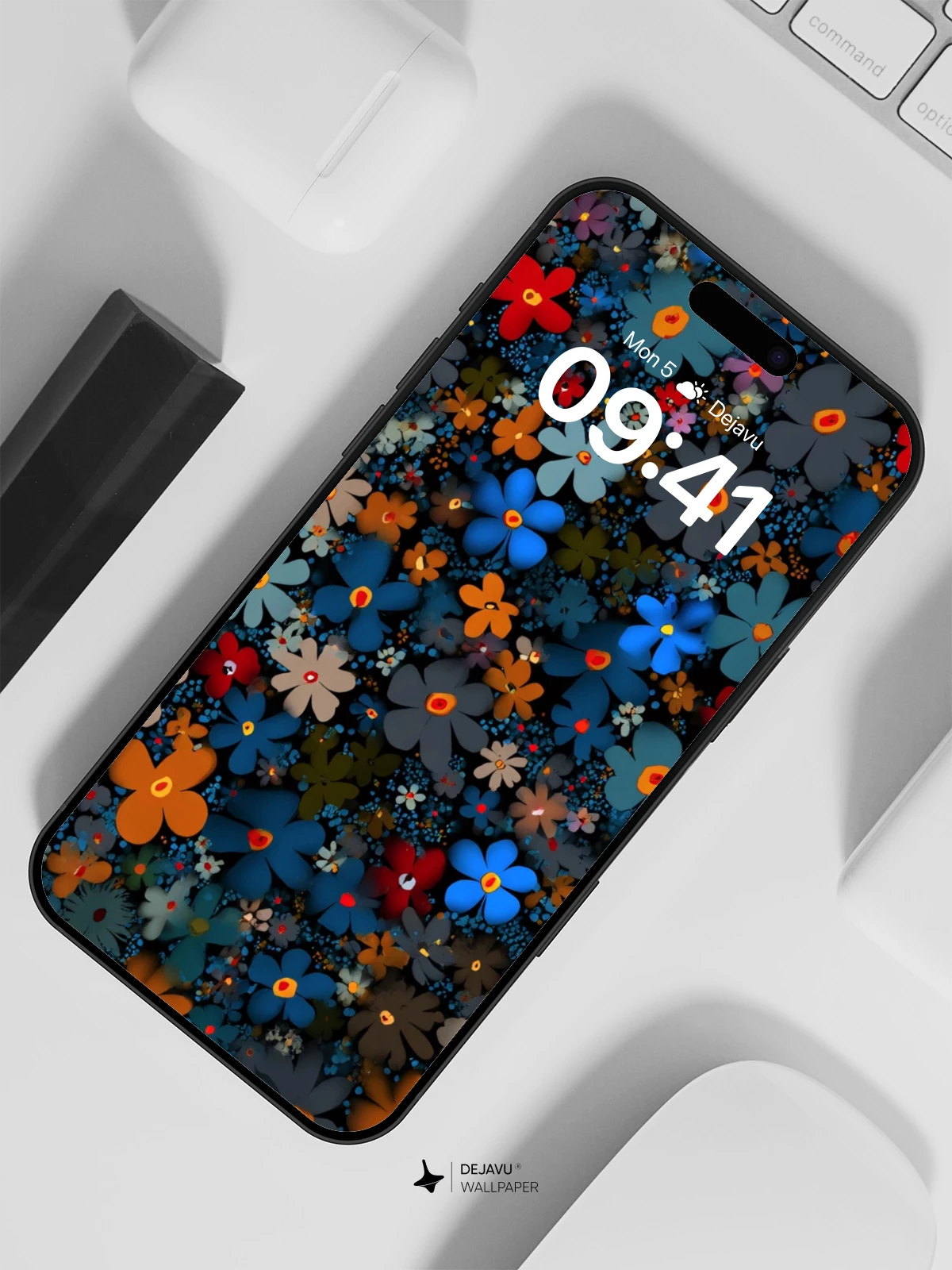 This stunning 8K wallpaper features a vibrant tapestry of multicolored flowers in a dense, dreamlike mosaic pattern—each bloom bursting with life against a deep, moody backdrop. Inspired by folk art motifs and nature’s chaotic beauty, it evokes a sense of joyful abundance and whimsical harmony. Perfectly suited for iPhone, Android, and tablets, this high-resolution design transforms any device into a canvas of living color.