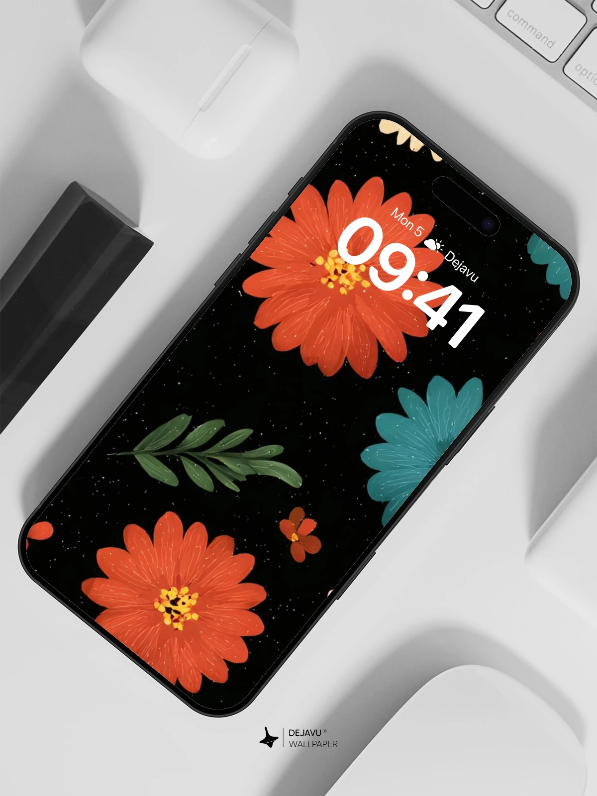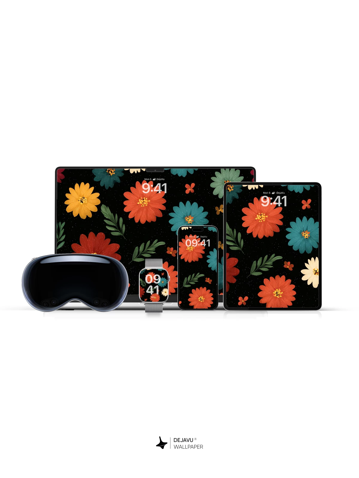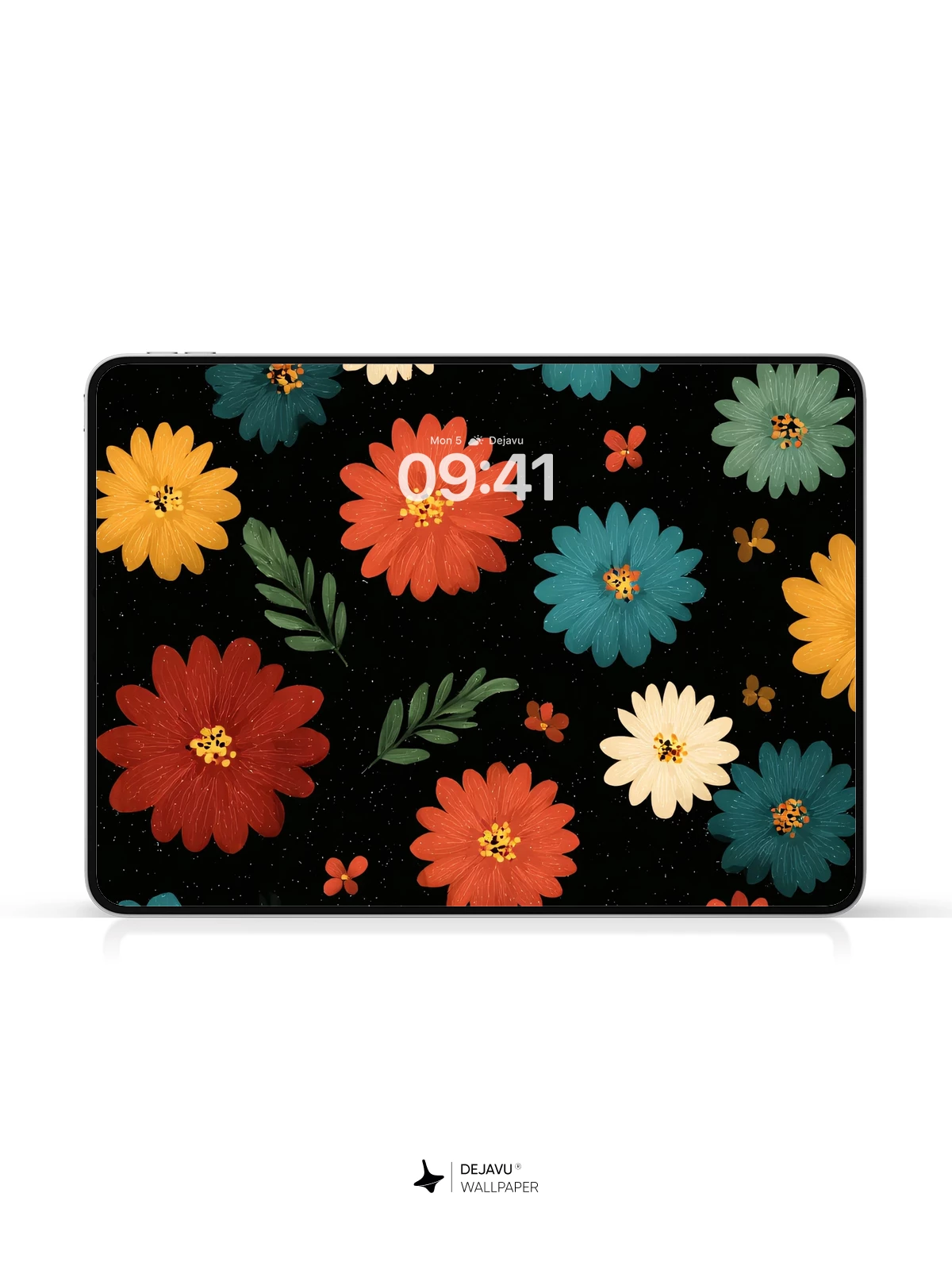 This stunning 8K wallpaper showcases a vibrant floral pattern with richly colored daisies in red, orange, yellow, blue, and white, set against a deep black backdrop. Each bloom is illustrated with a hand-painted charm, evoking a modern folk-art aesthetic that brings warmth and energy to any device. The contrast of bright petals and subtle greenery creates a dynamic yet balanced composition, perfect for enhancing your iPhone, Android, or tablet. Whether you’re drawn to nature-inspired designs or bold visual statements, this wallpaper delivers a cheerful, artistic vibe that stands out in high resolution.